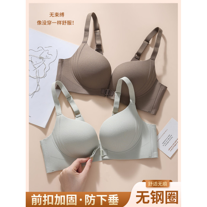 夏小胸聚攏無痕無鋼圈前釦文胸罩2025新款爆款收副乳防下垂內衣女
