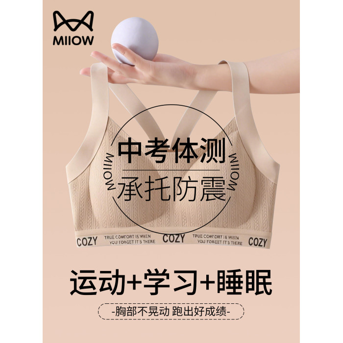 貓人初高中學生體考運動內衣14-16嵗女孩跑步防震青春發育期文胸