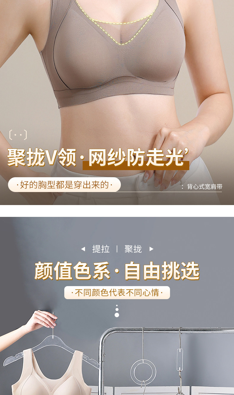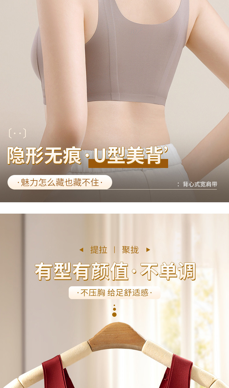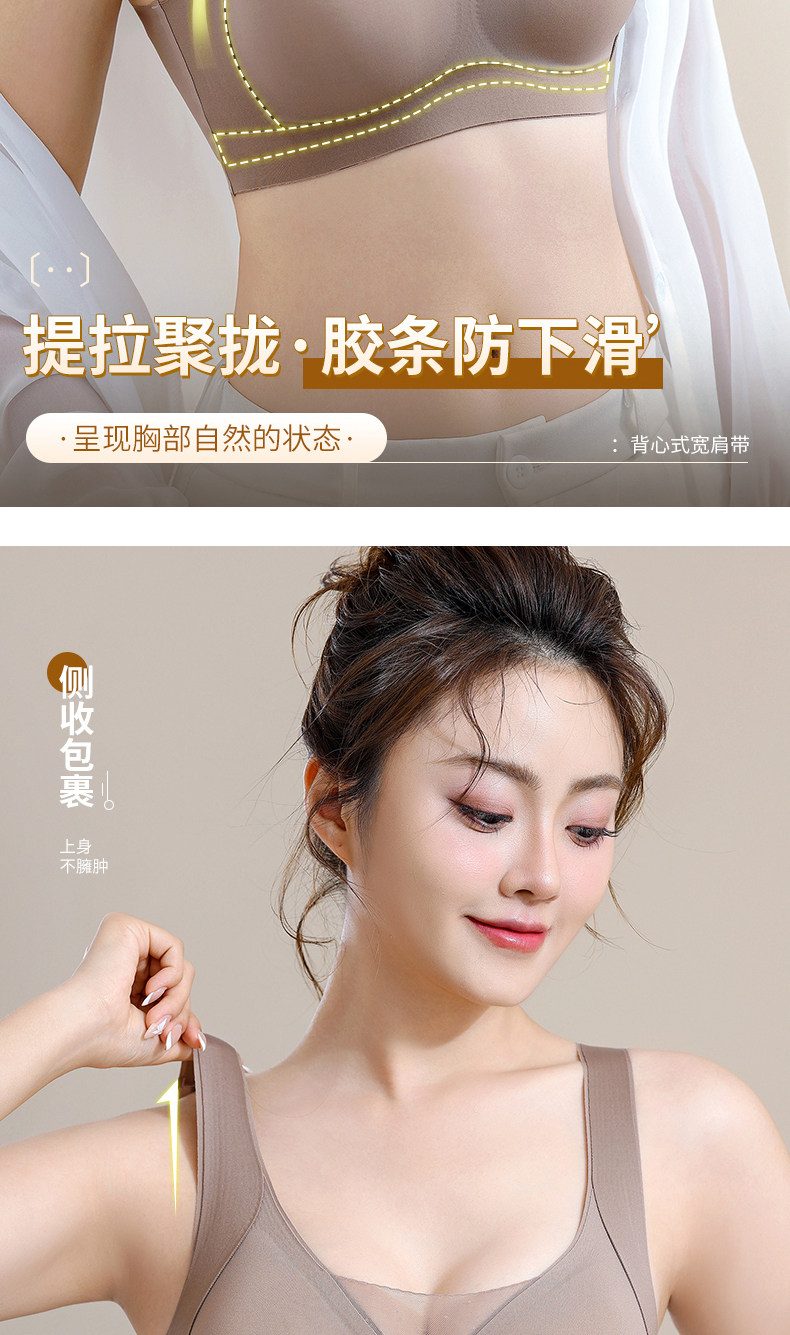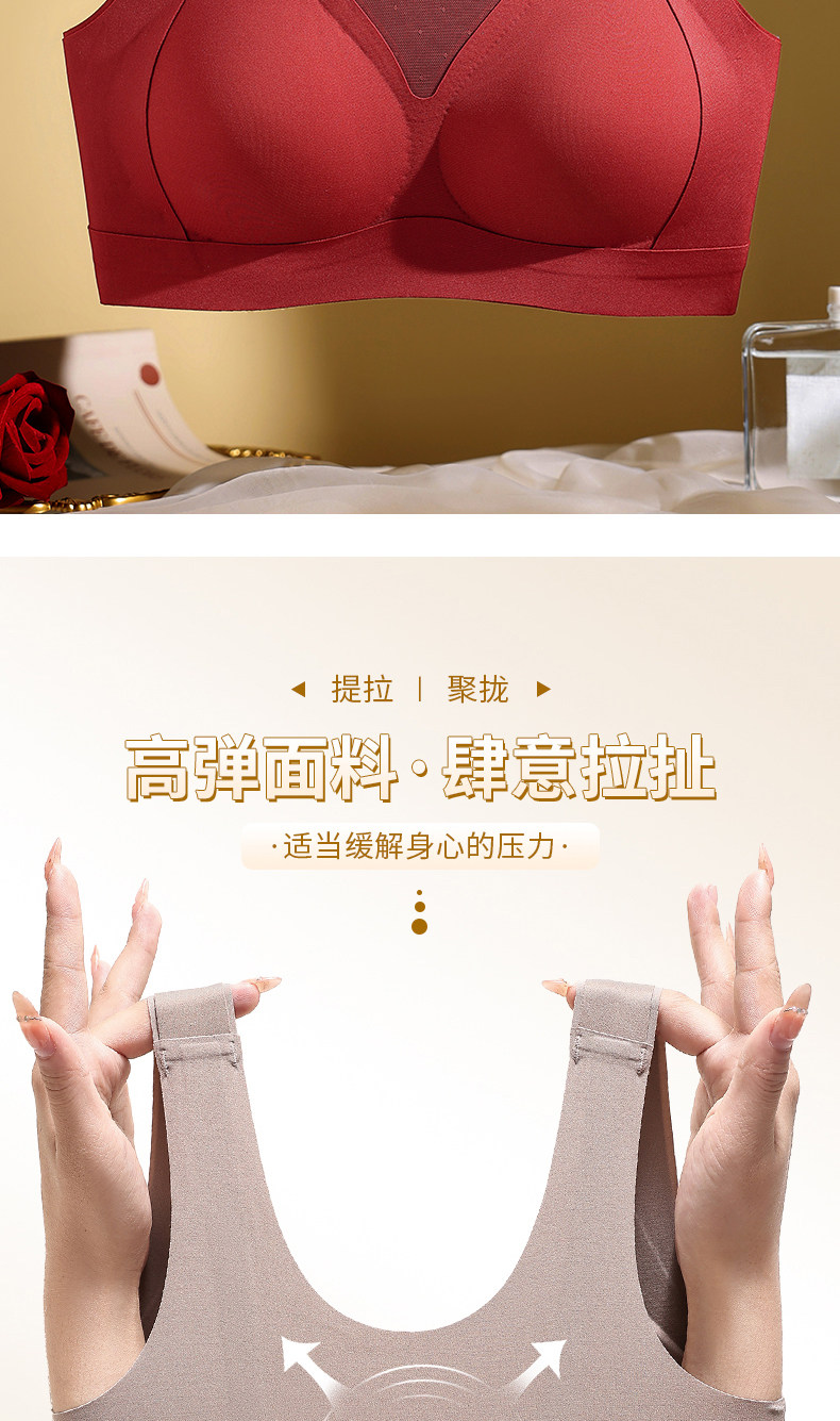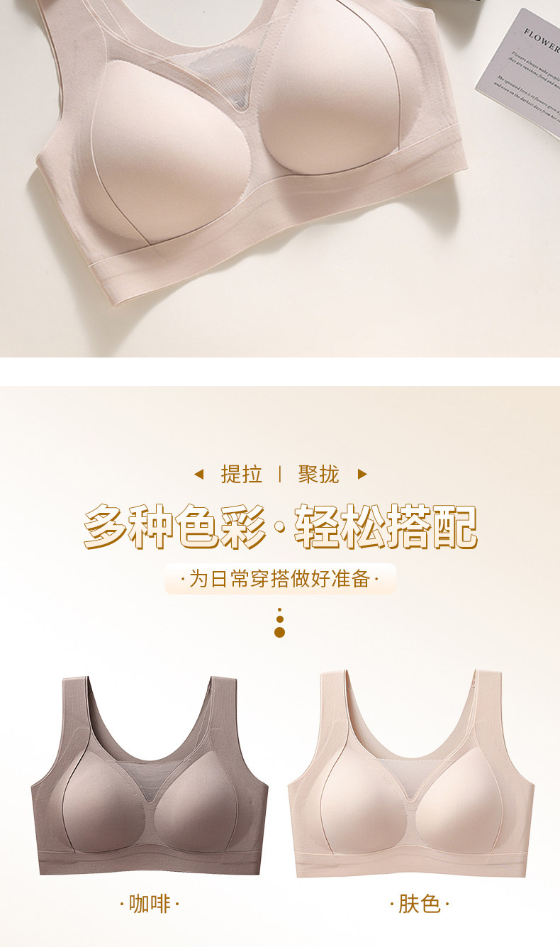 女士美背無痕內衣女無鋼圈背心式運動文胸罩收副乳聚攏防下垂奶罩