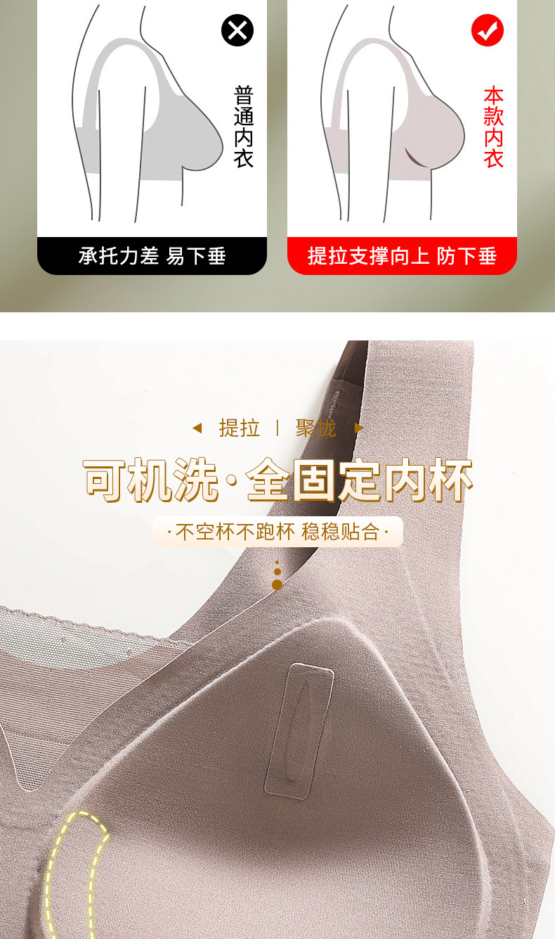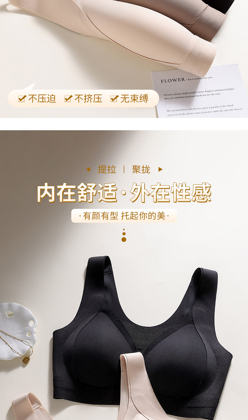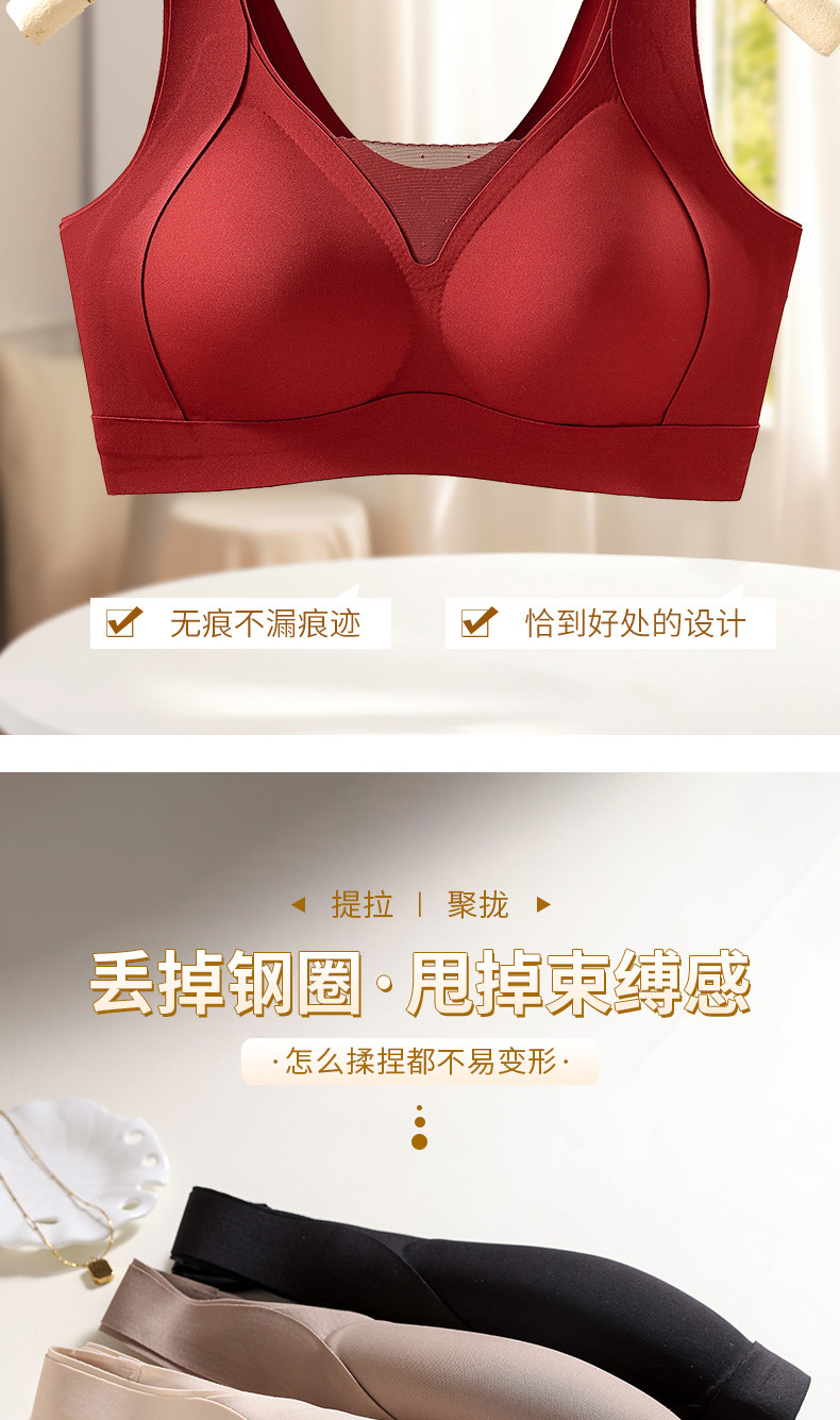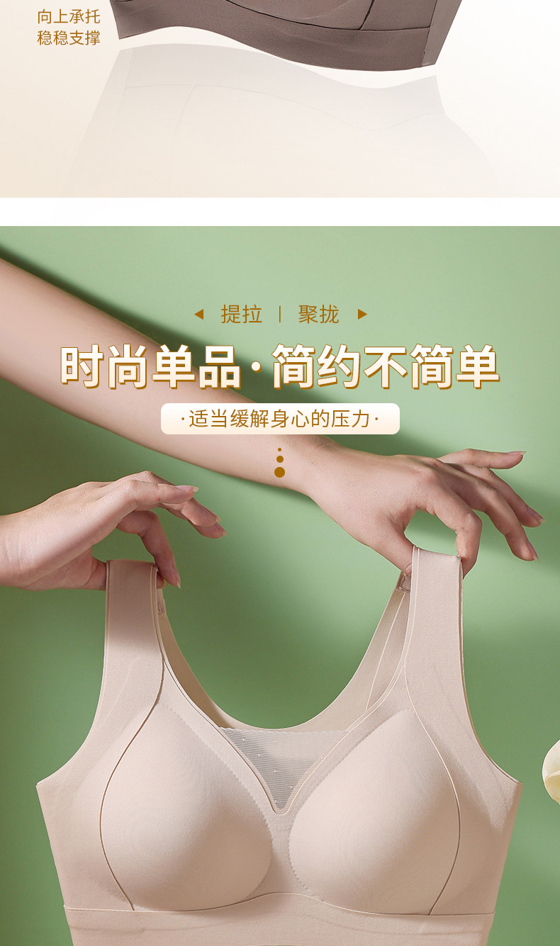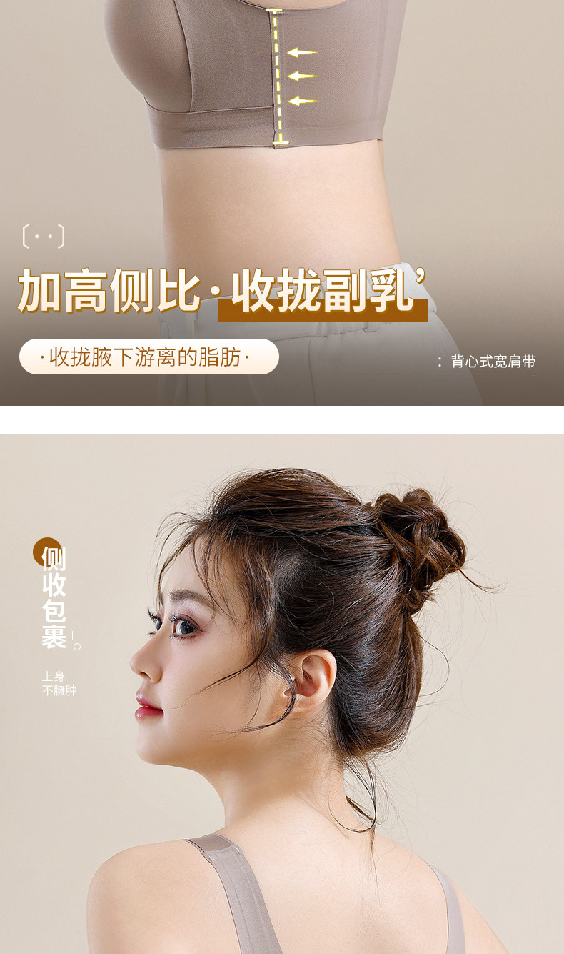 女士美背無痕內衣女無鋼圈背心式運動文胸罩收副乳聚攏防下垂奶罩
