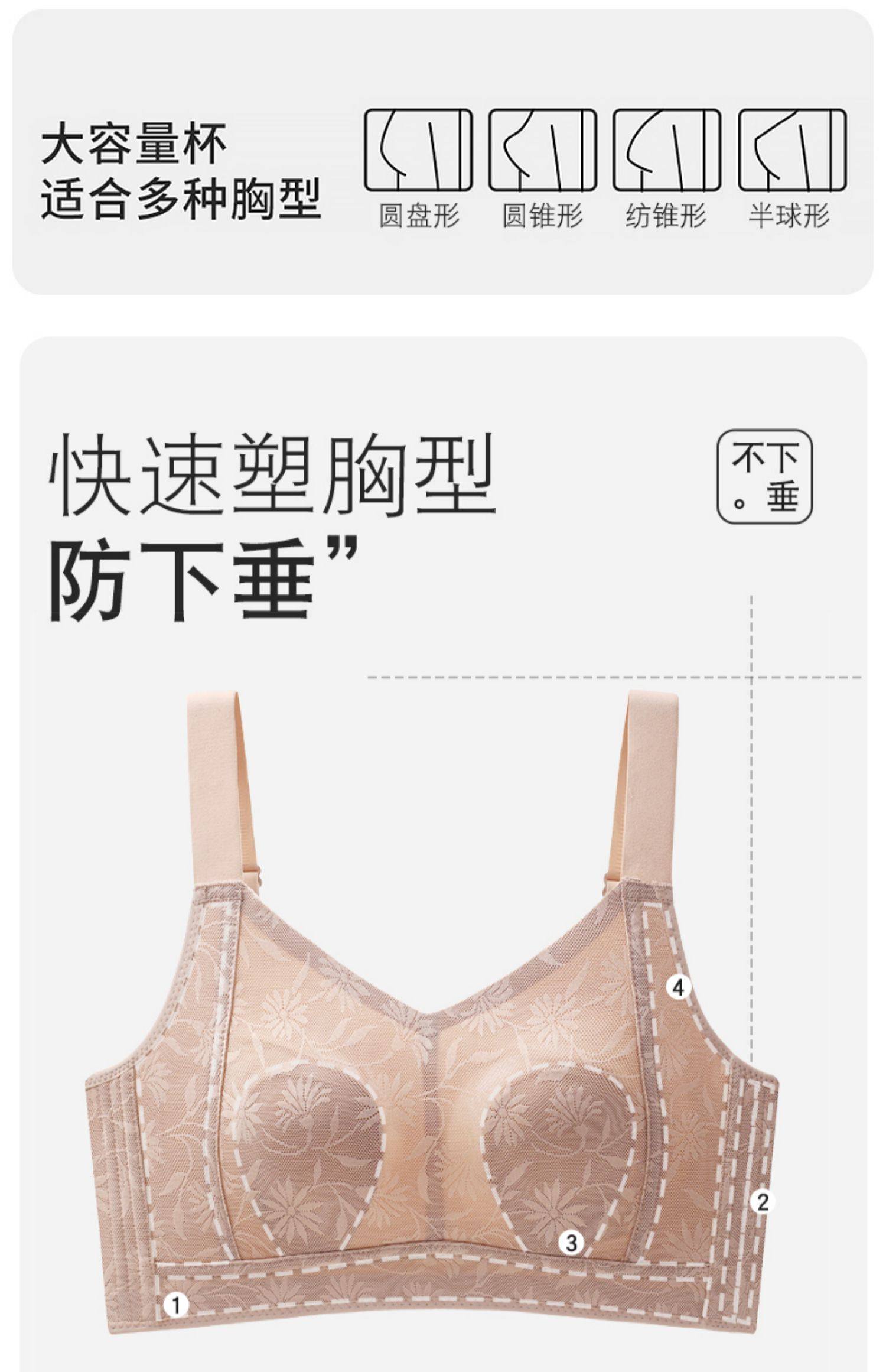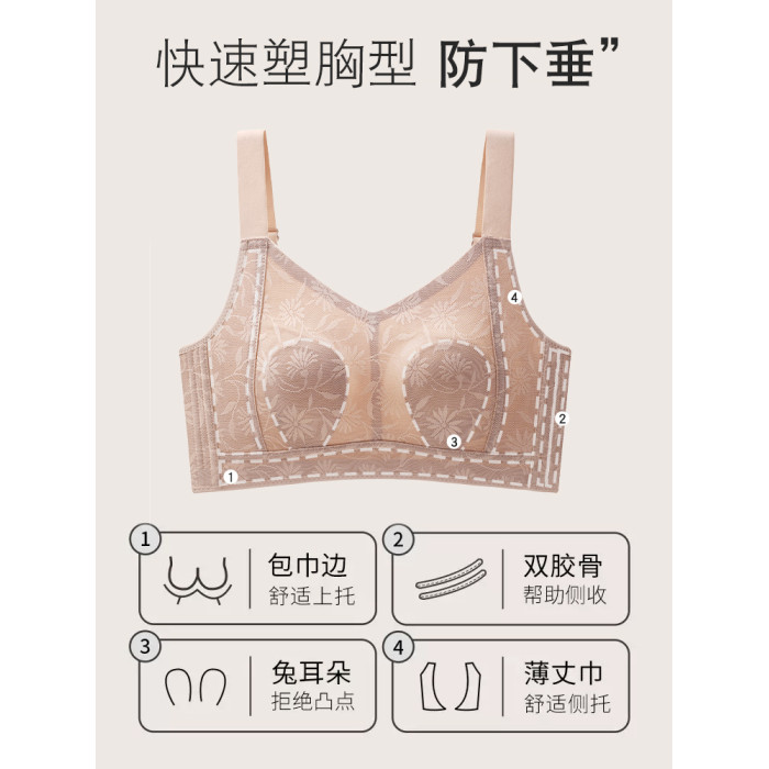 無痕內衣女士薄款大胸顯小防下垂收副乳聚攏文胸罩運動防震無鋼圈