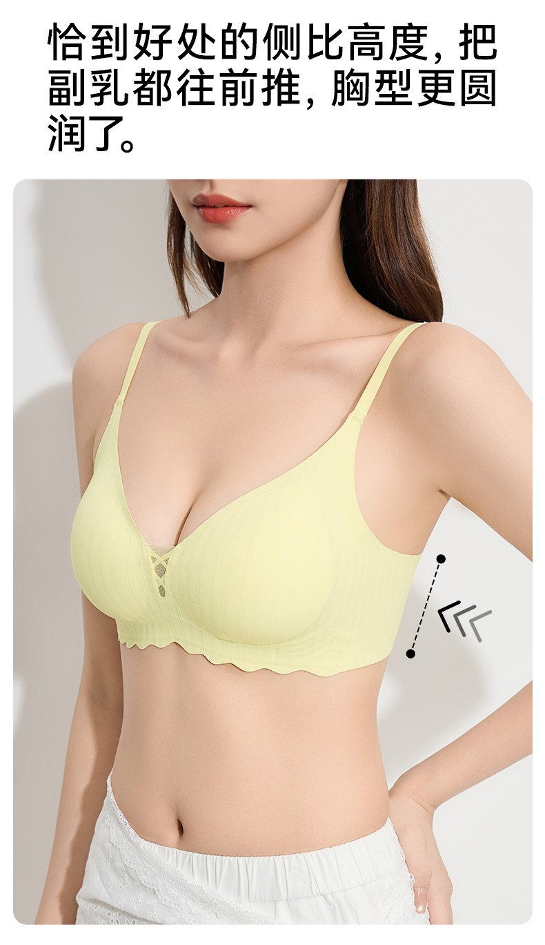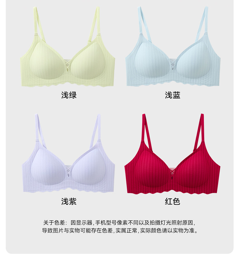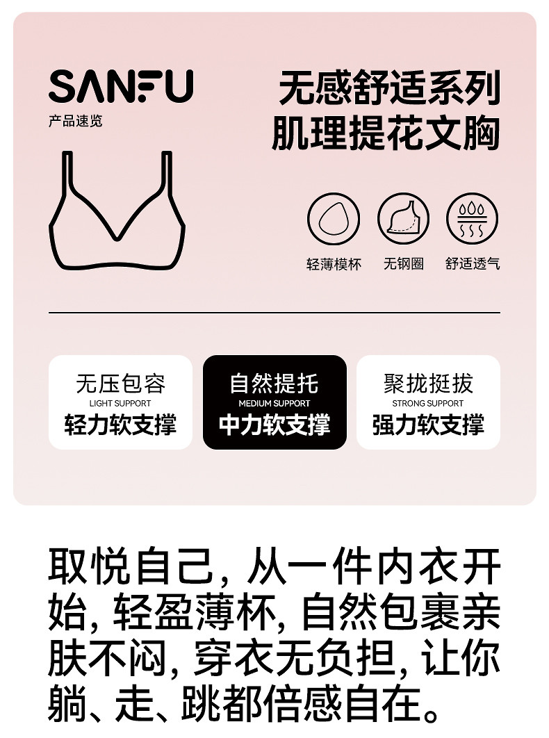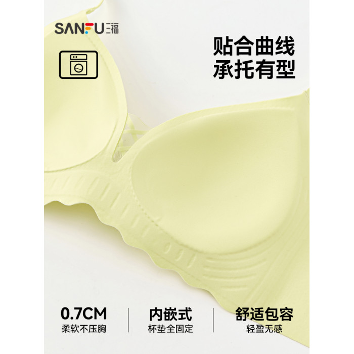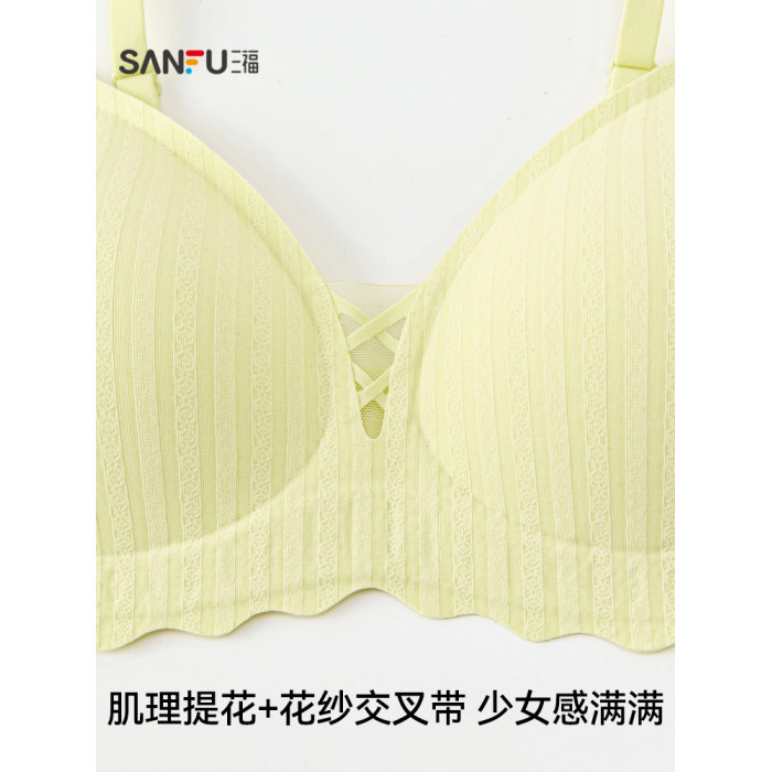 三福薄B杯無鋼圈聚攏文胸 簡約少女無感肌理提花內衣女503553