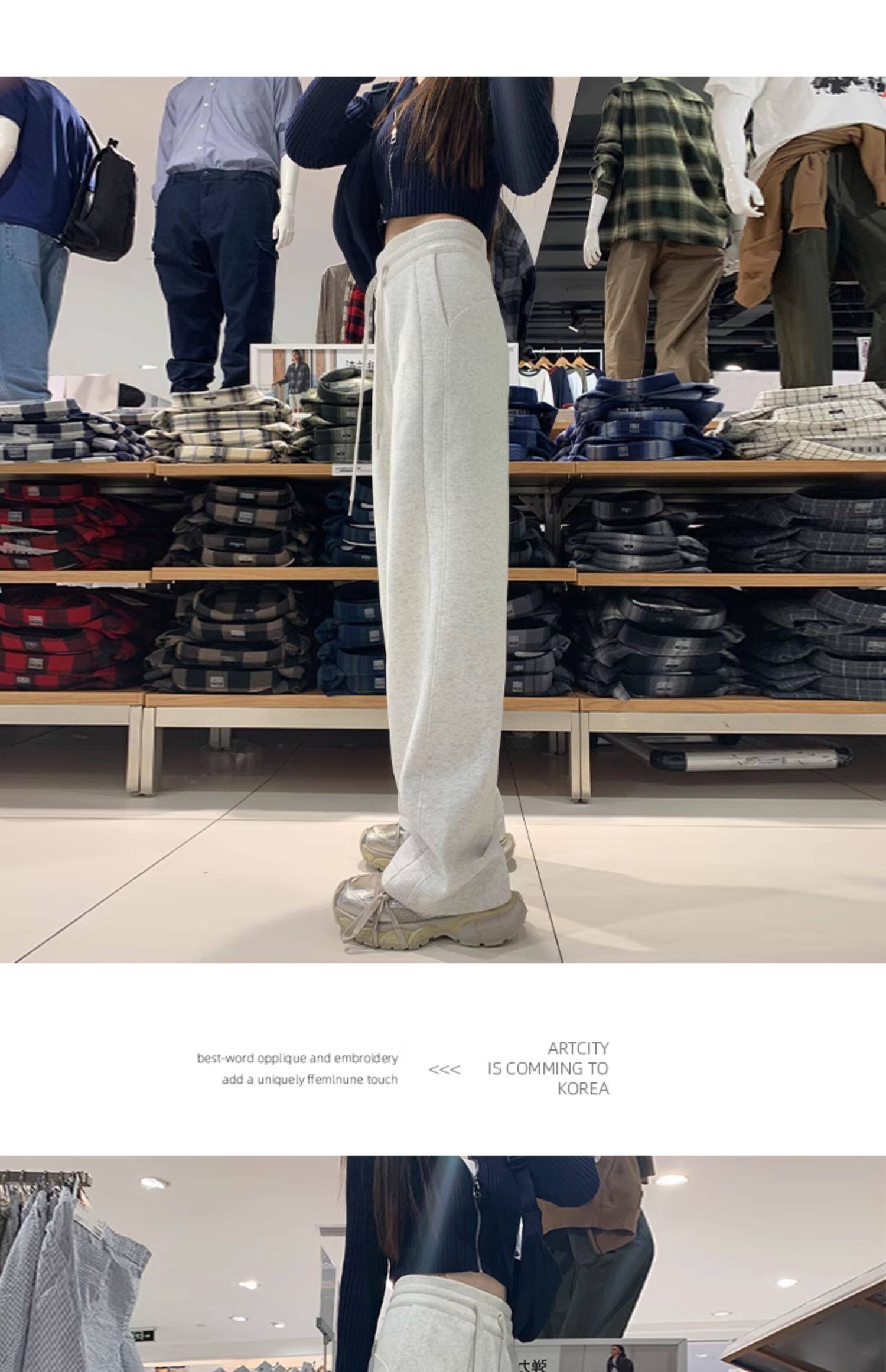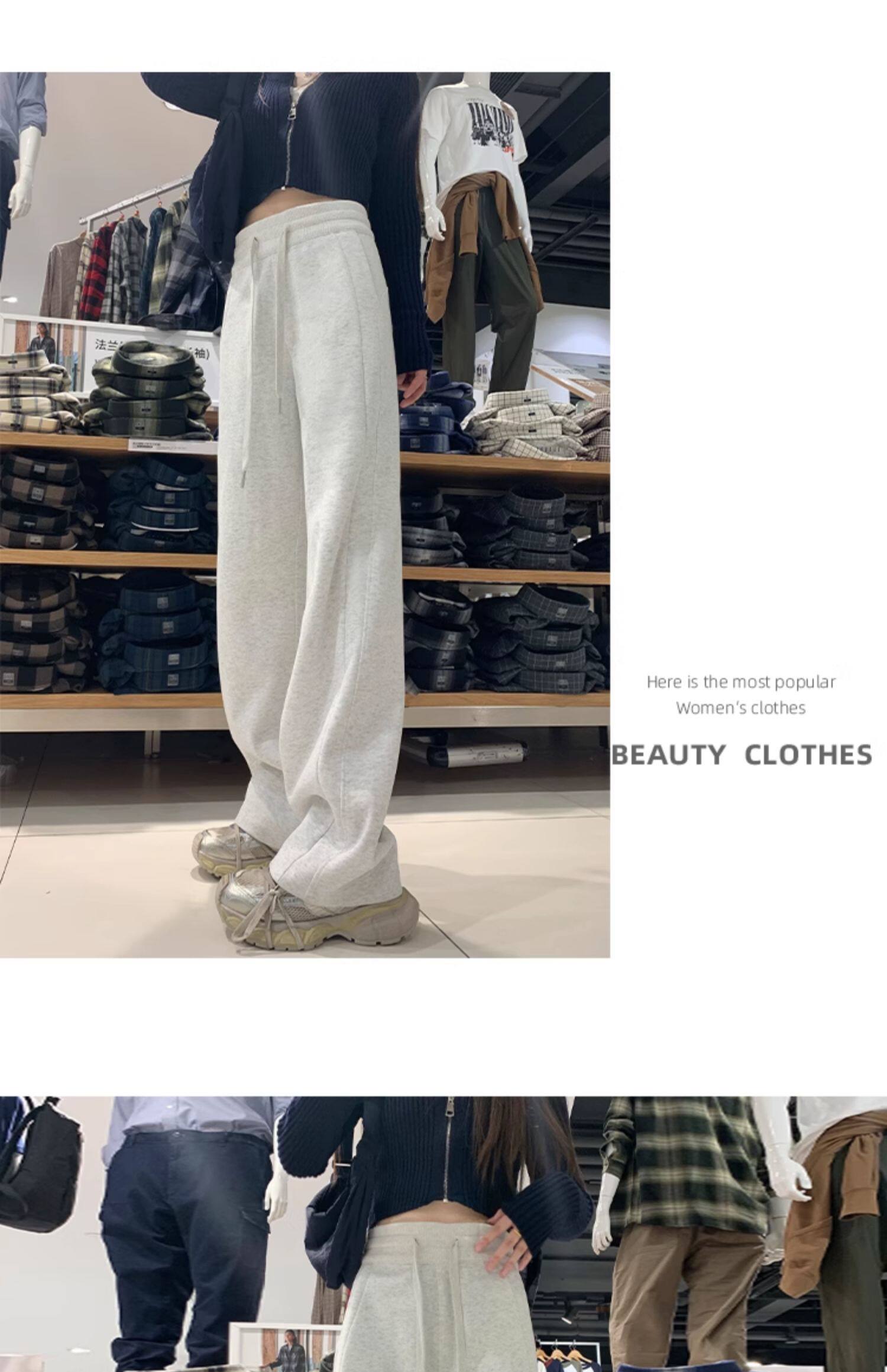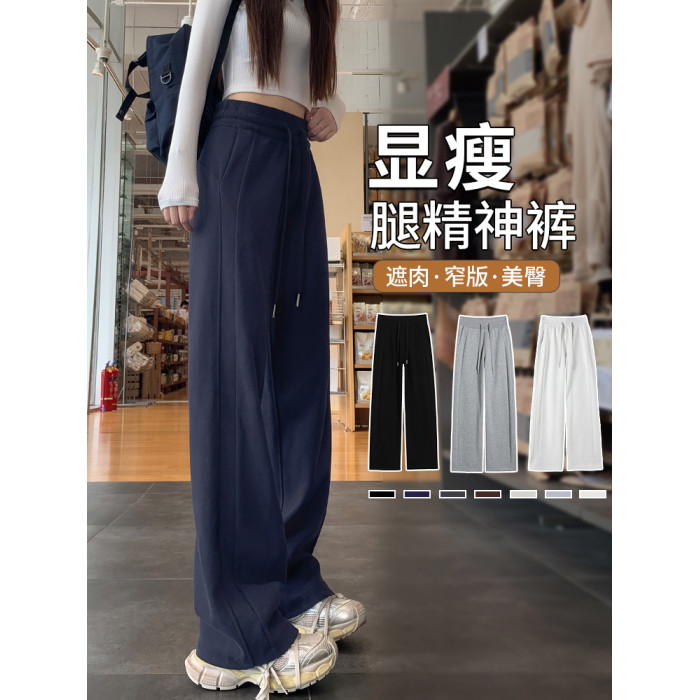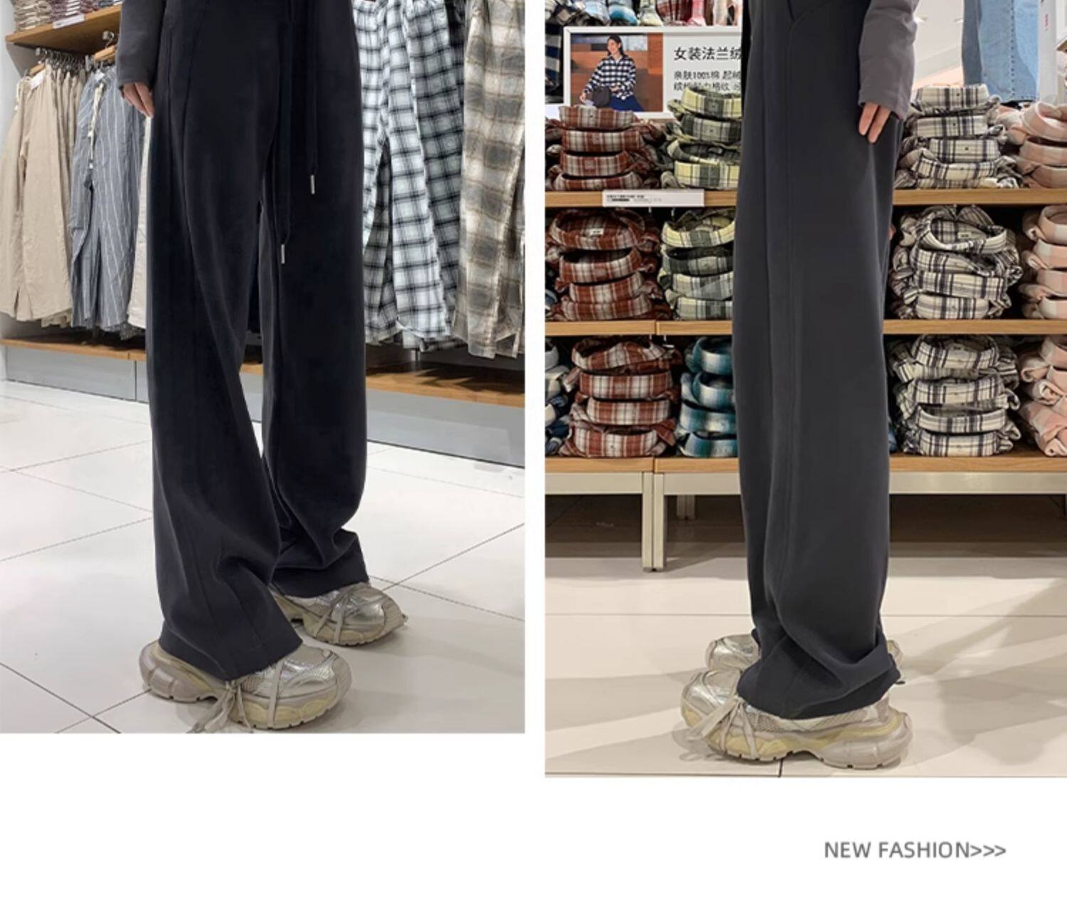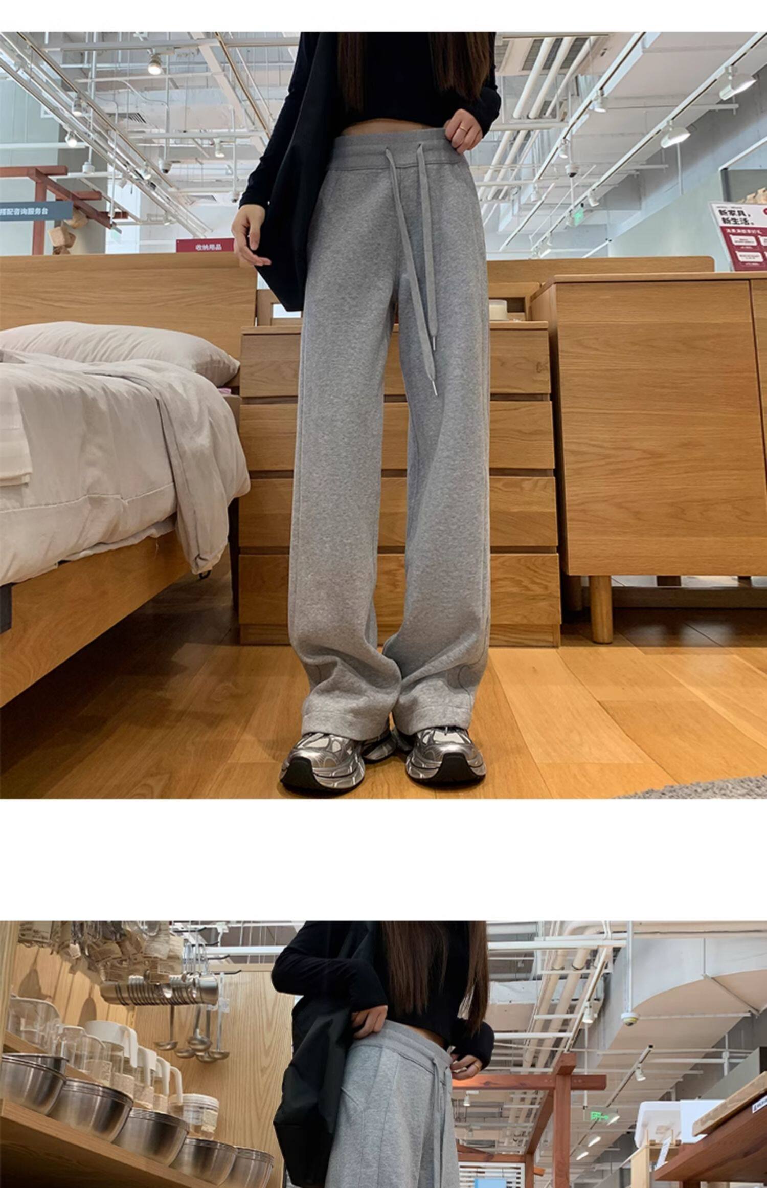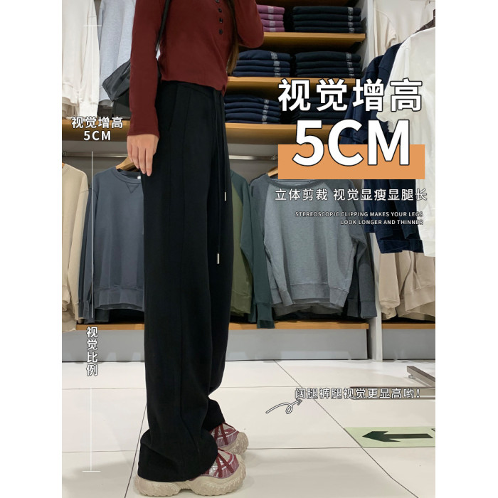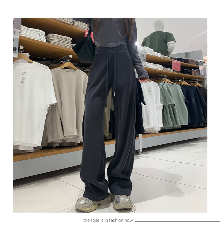 運動褲女秋冬季加絨寬鬆直筒窄版濶腿褲小個子休閒顯瘦加厚衛褲子