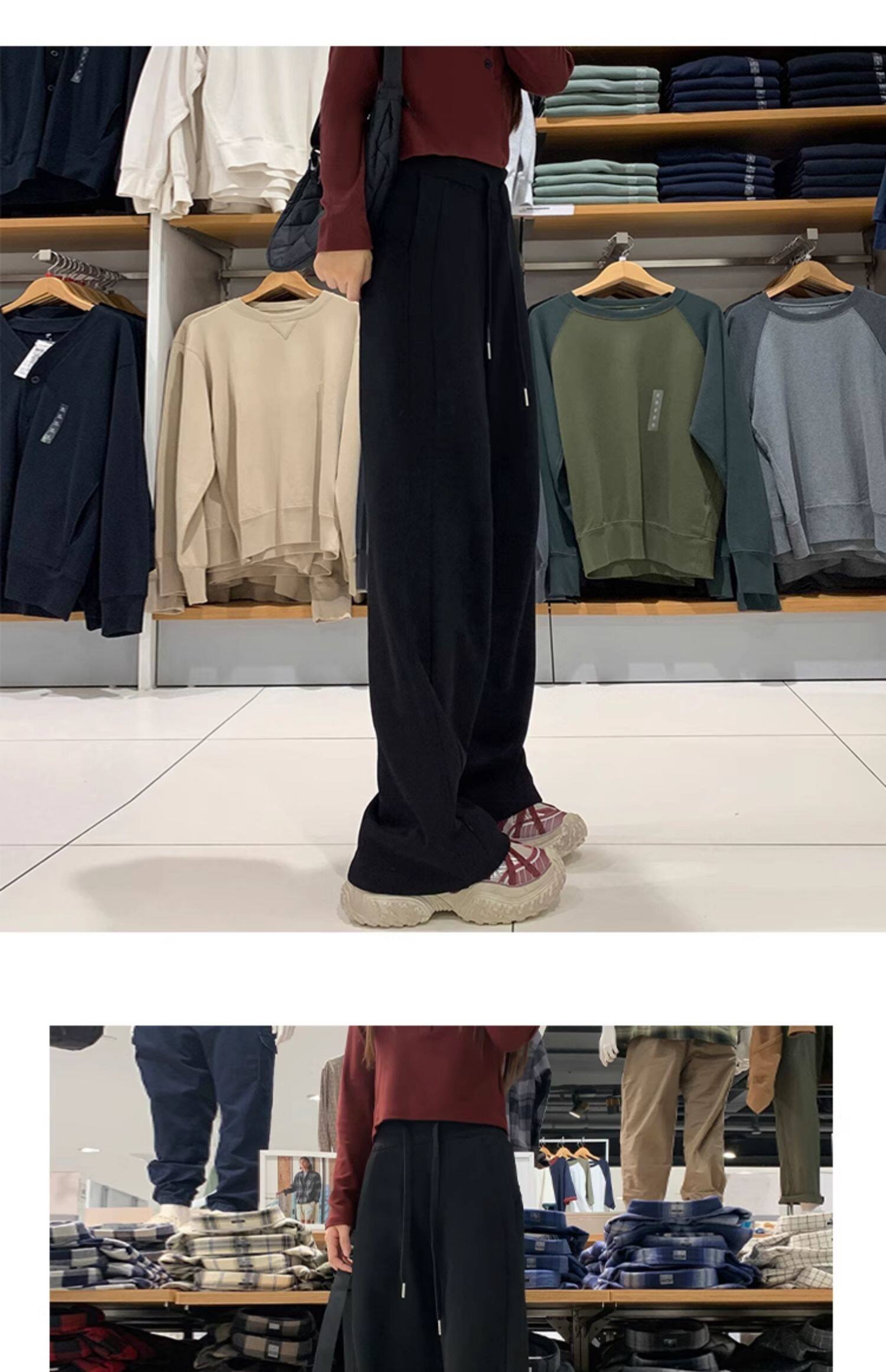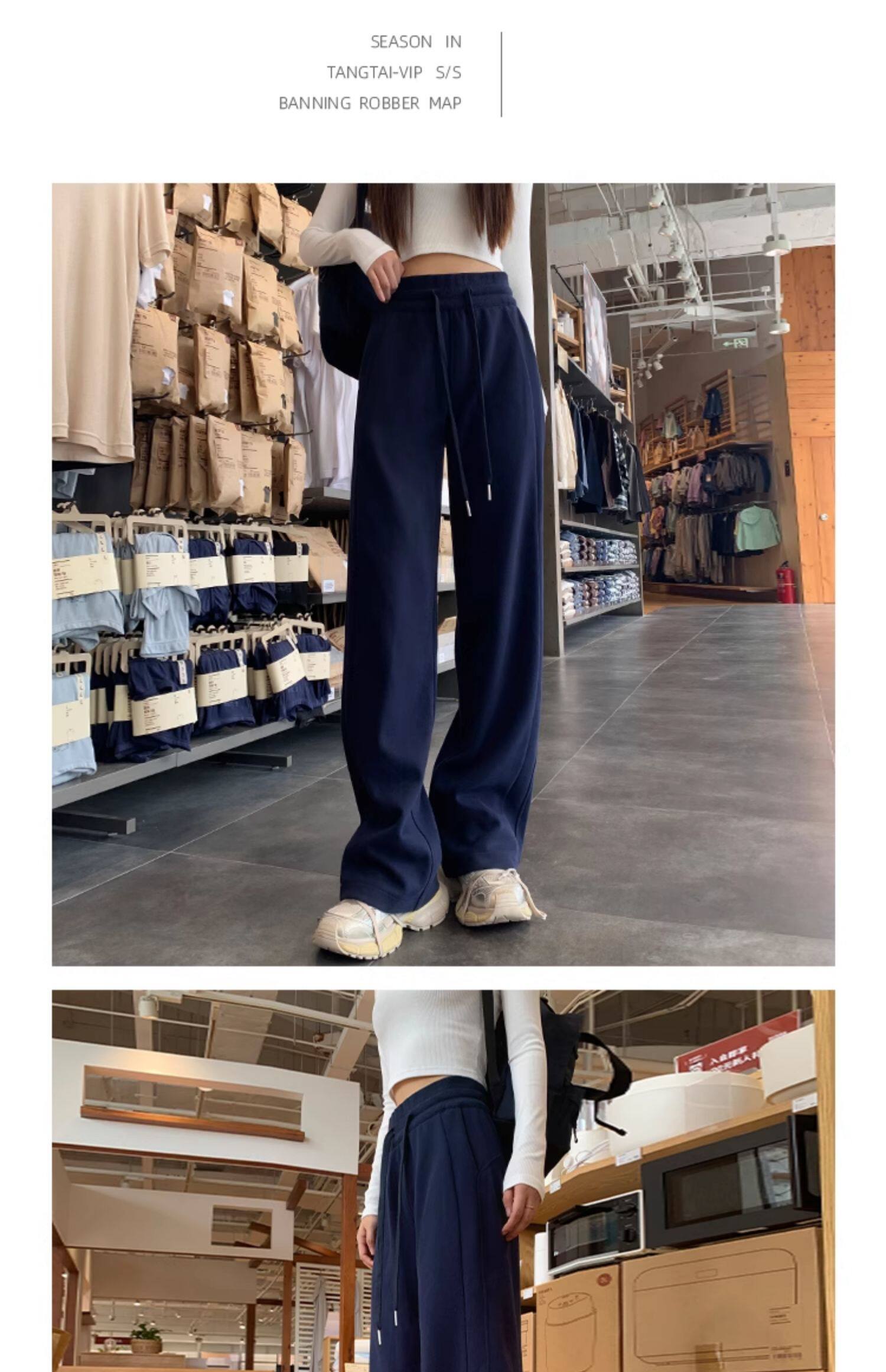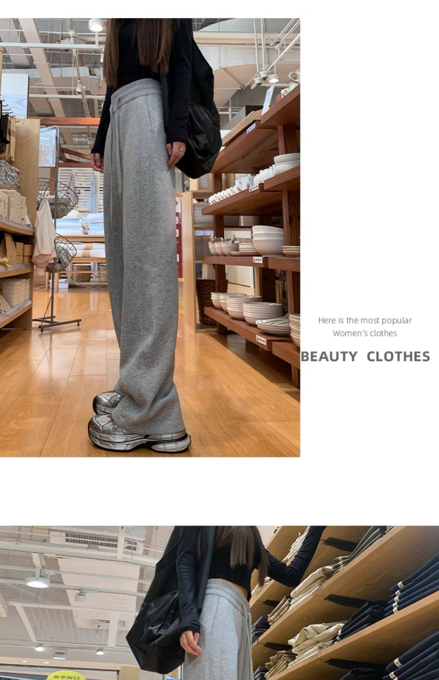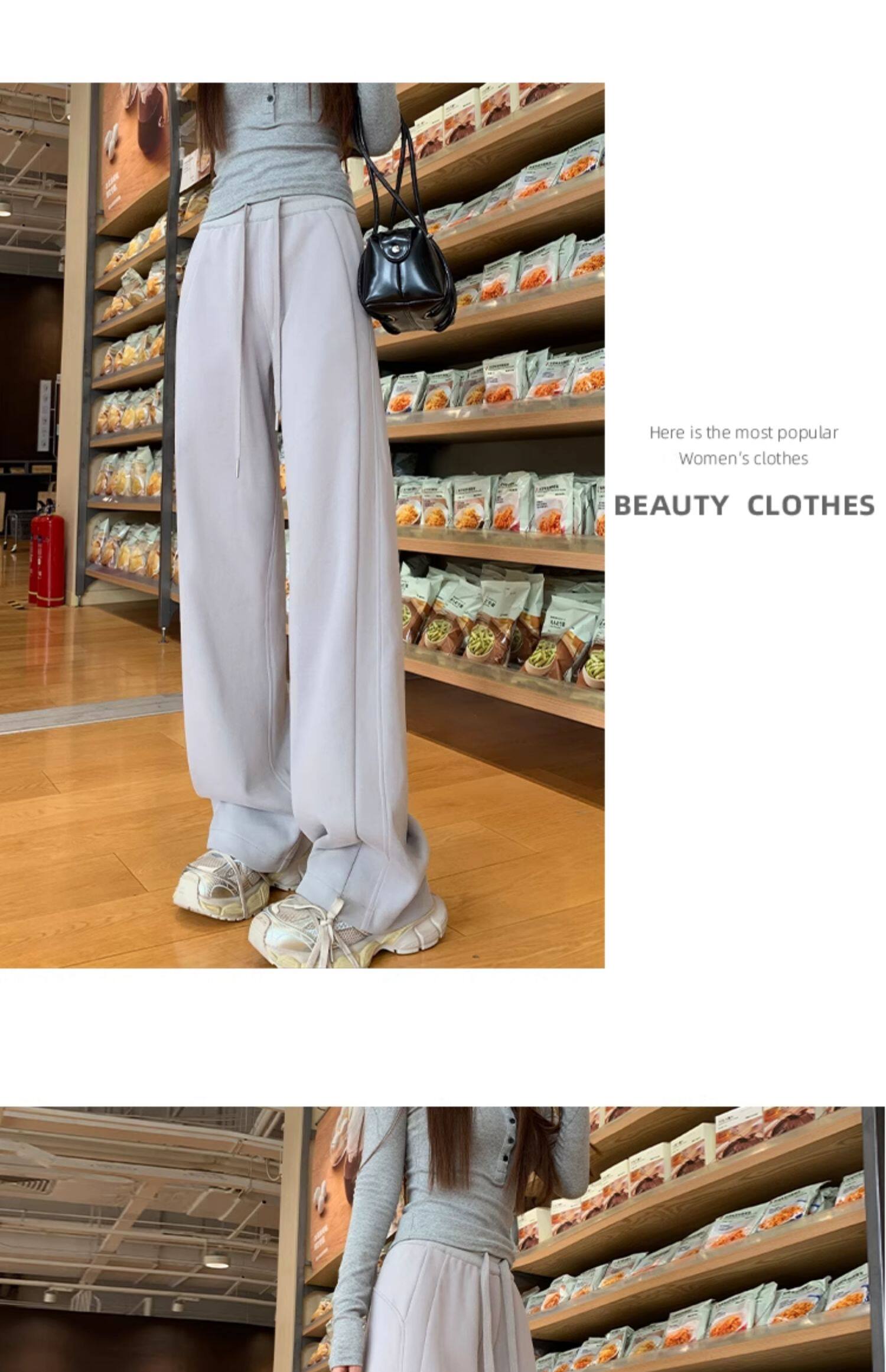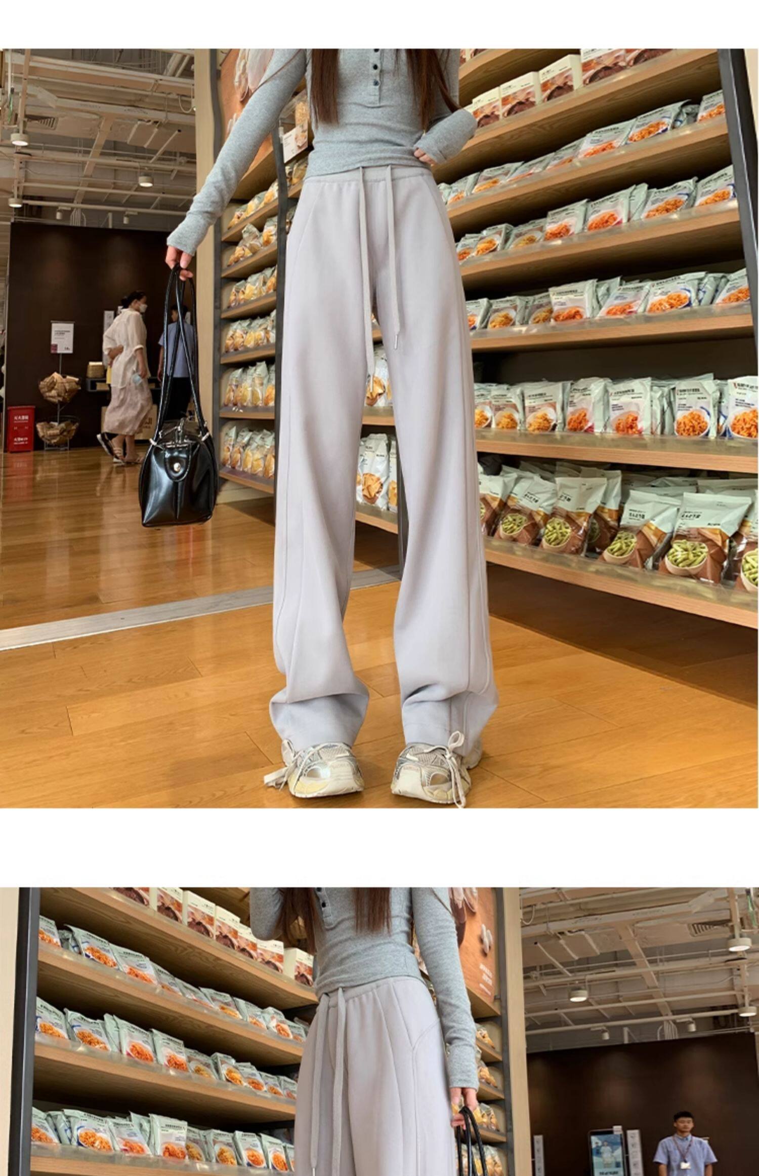 運動褲女秋冬季加絨寬鬆直筒窄版濶腿褲小個子休閒顯瘦加厚衛褲子