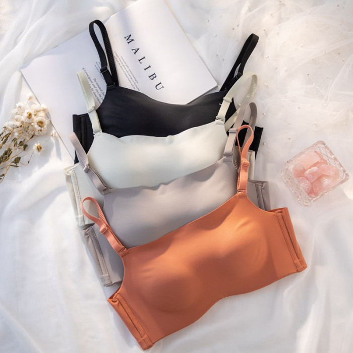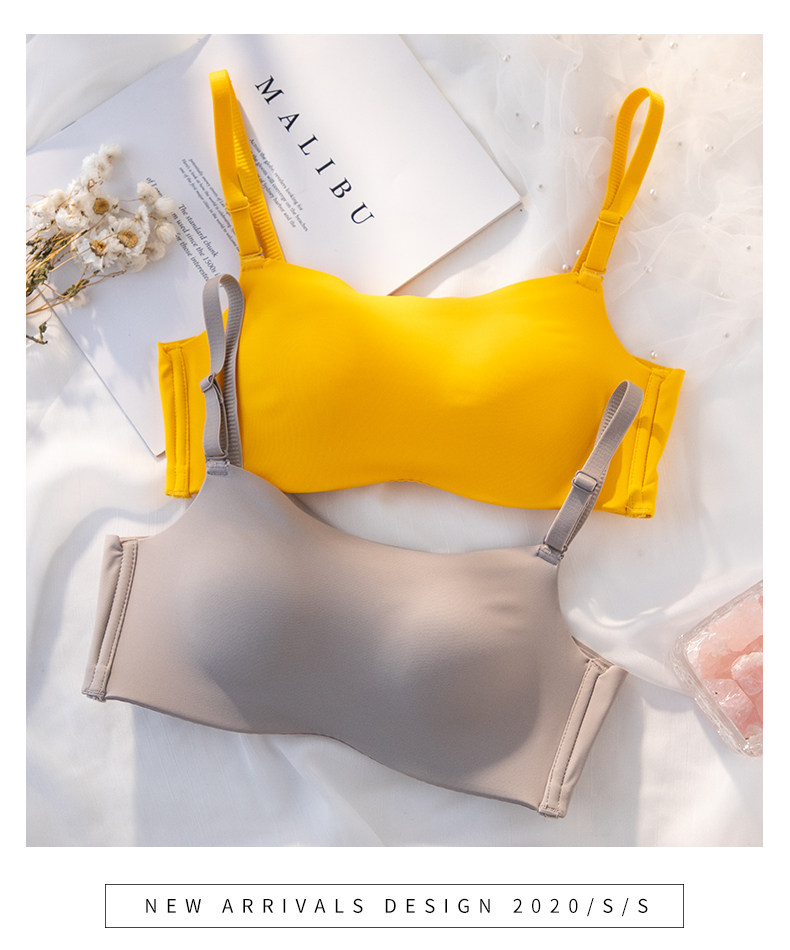 無痕夏季防走光抹胸式內衣女無鋼圈小胸聚攏薄款白色裹胸式文胸罩