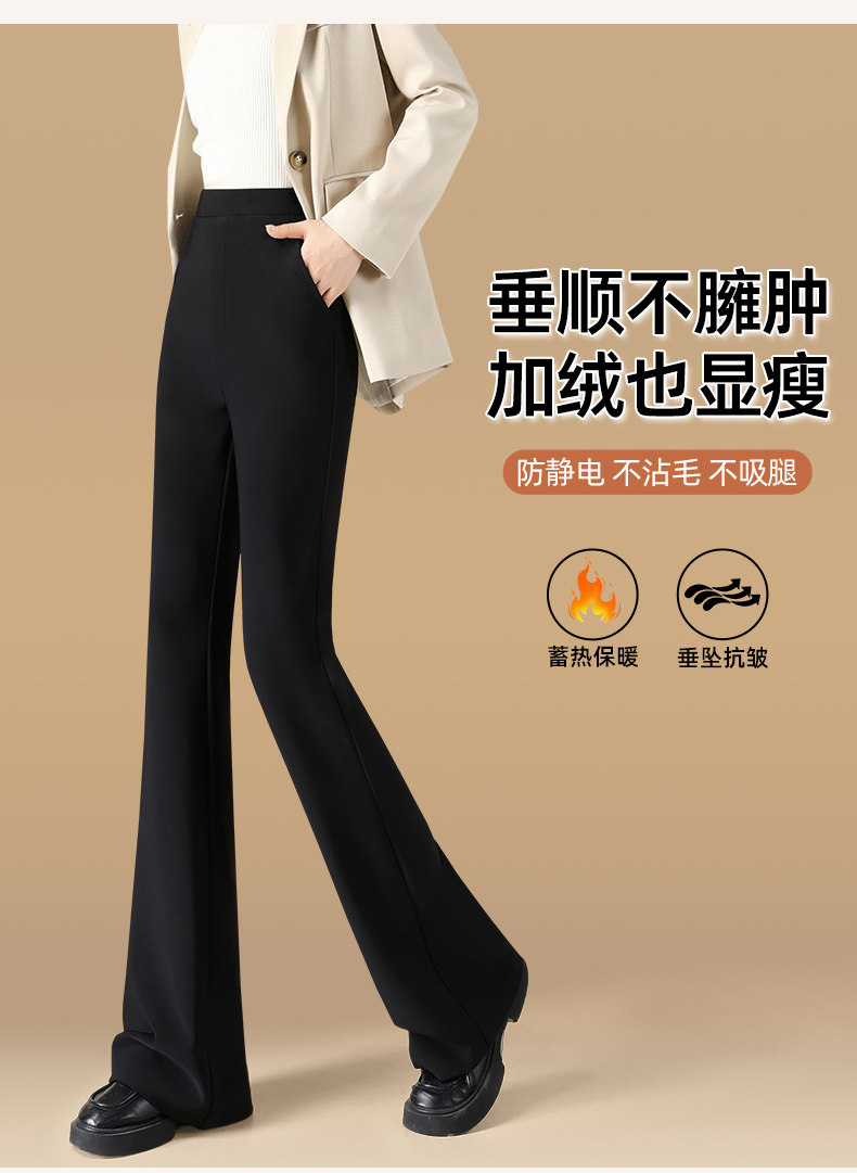 加絨加長微喇褲女高個子超長2026新款冬季黑色褲子加厚西裝微喇褲