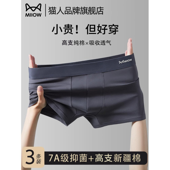 貓人男士內褲男純棉四角褲男款秋季青少年男生平角短褲頭2025新款