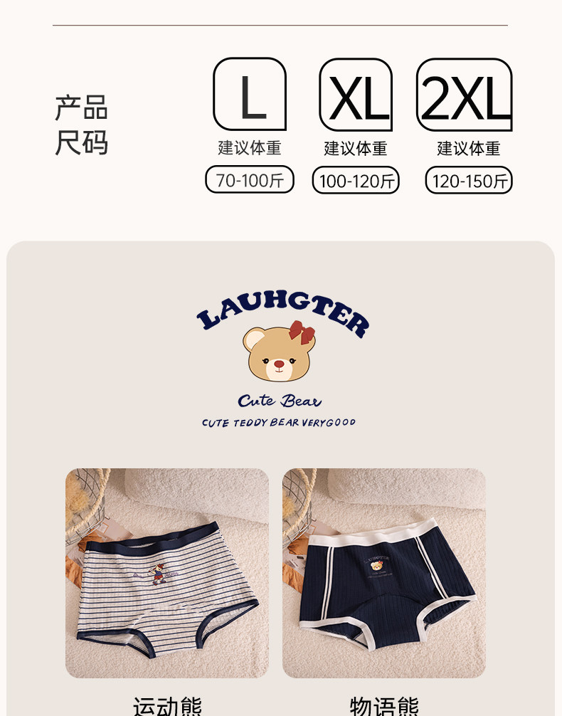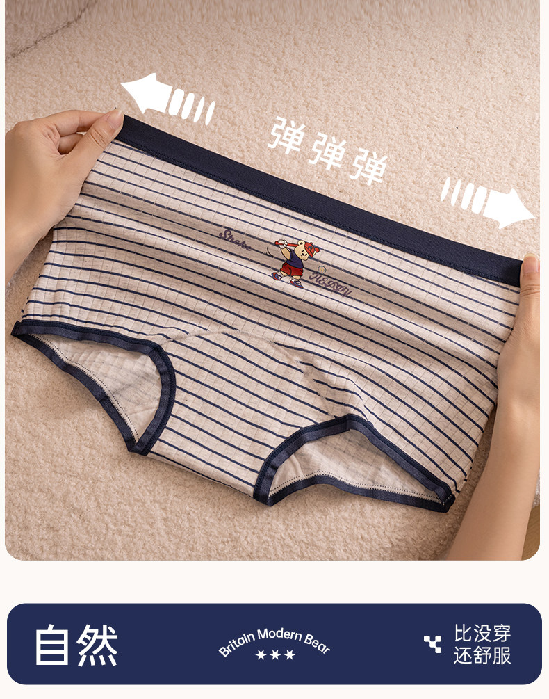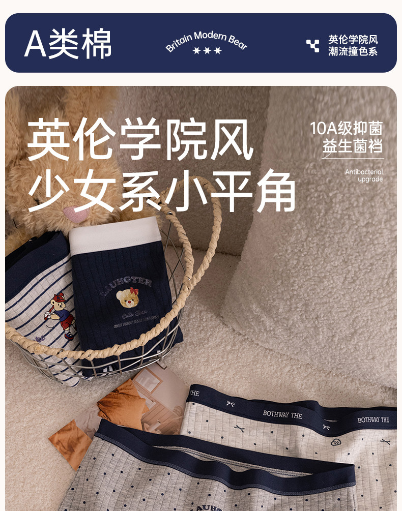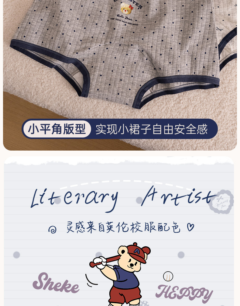 貓人小熊內褲女平角a類抗菌純棉襠初高中學生新款中腰四角短褲頭