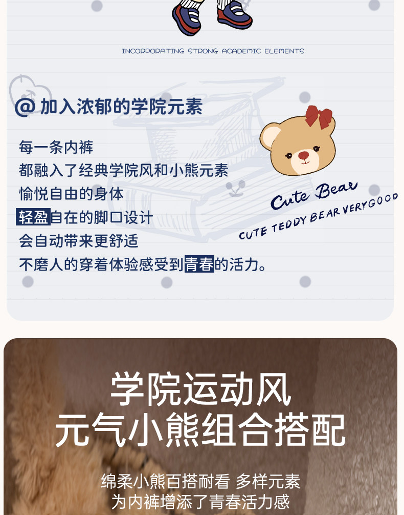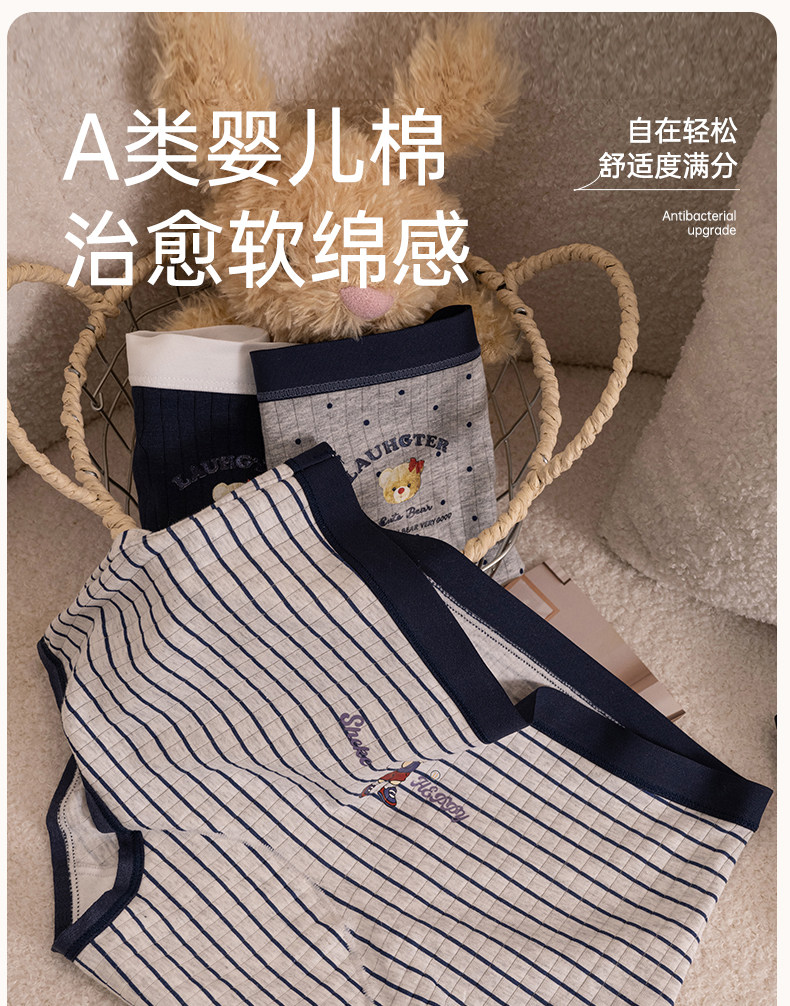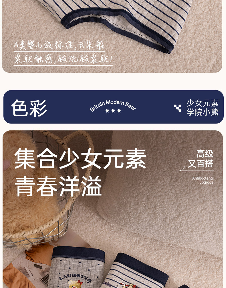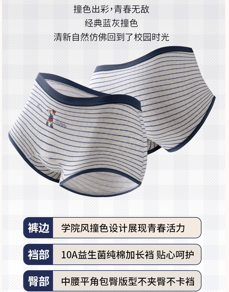 貓人小熊內褲女平角a類抗菌純棉襠初高中學生新款中腰四角短褲頭