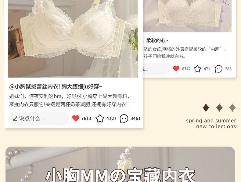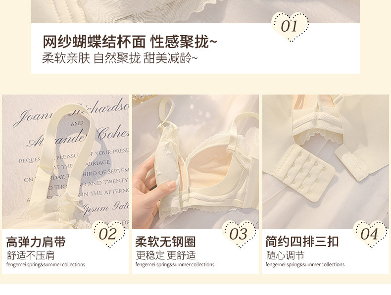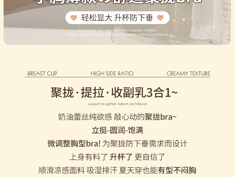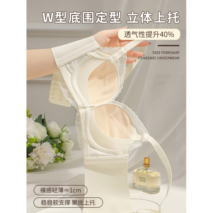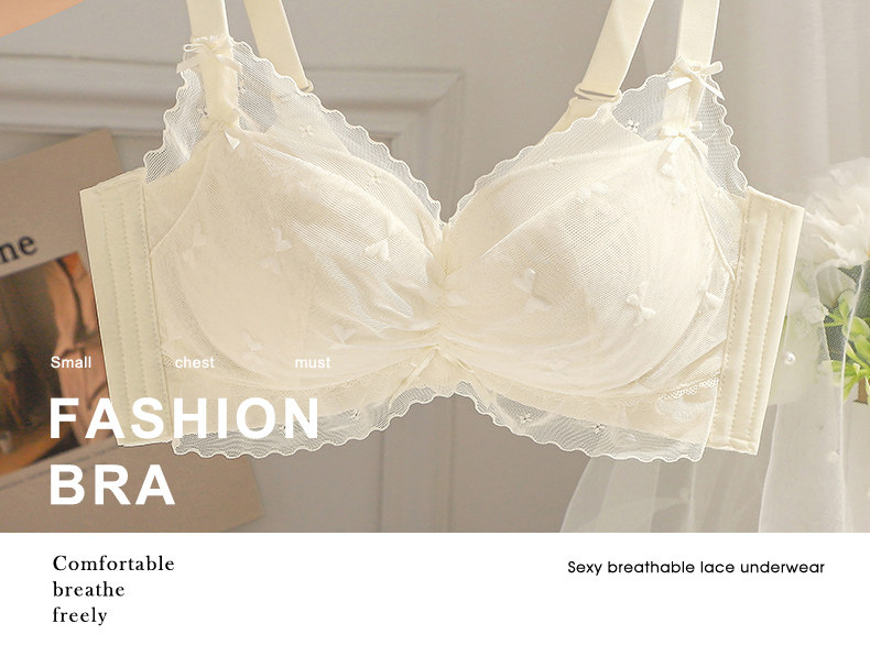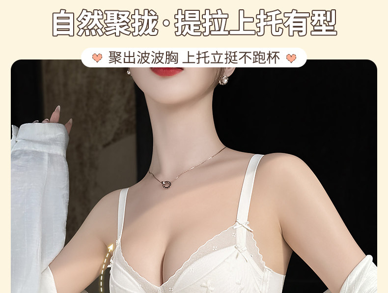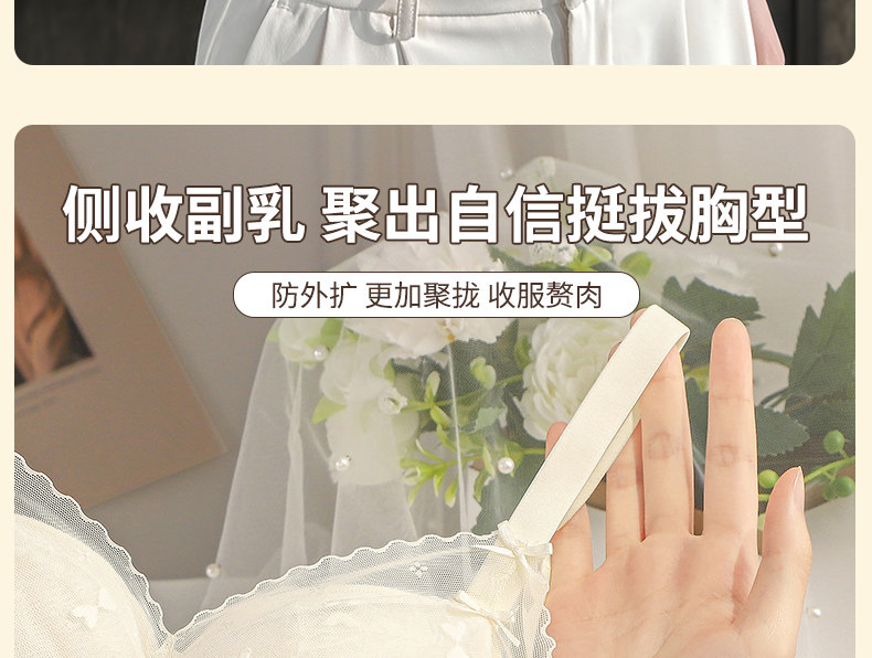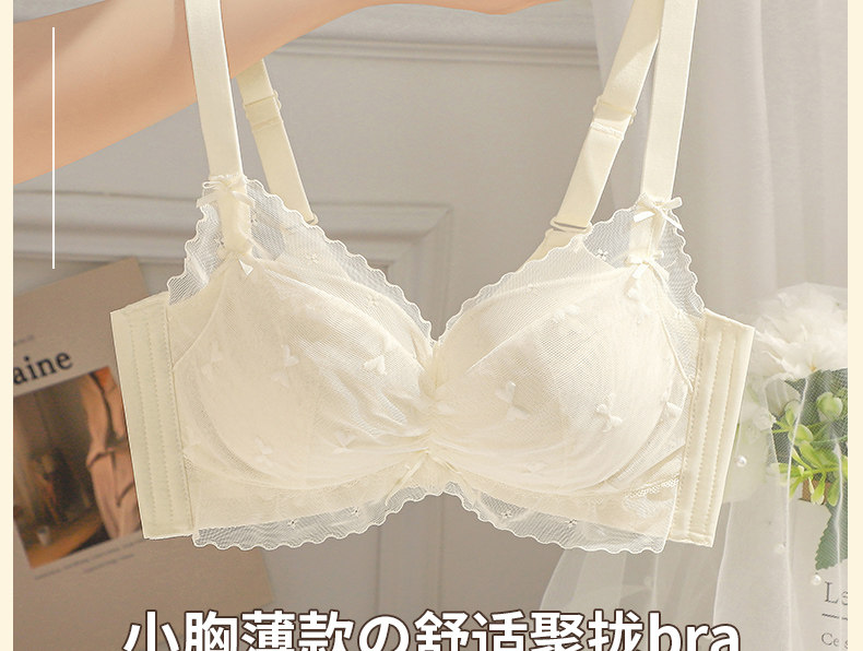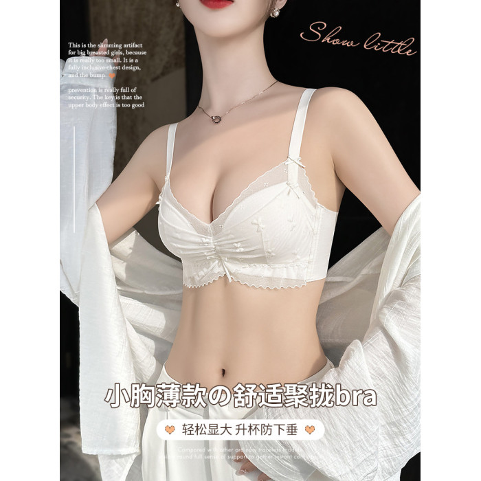 內衣女小胸聚攏顯大調整型無鋼圈收副乳防下垂夏季薄款蕾絲文胸罩