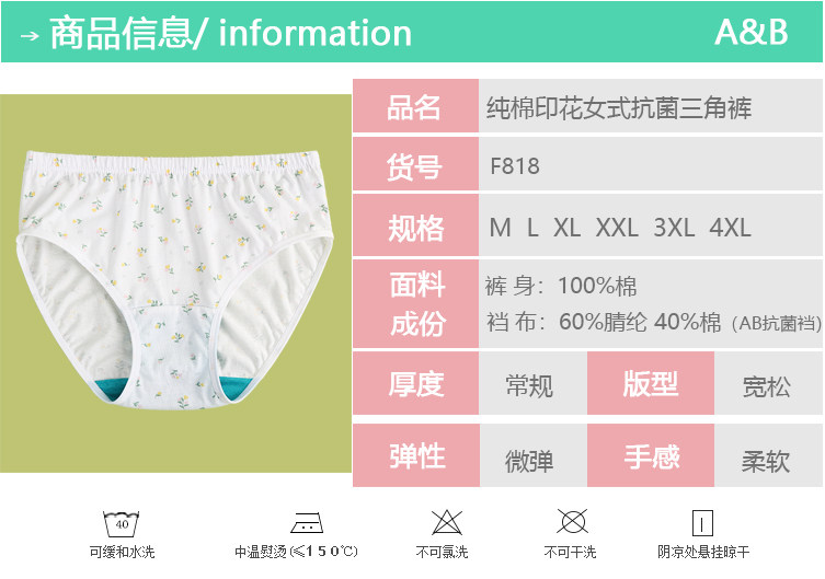 AB內褲純棉中高腰抗菌短褲100%棉夏薄款中高腰媽咪褲三角短褲F818