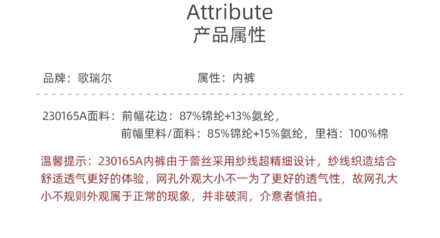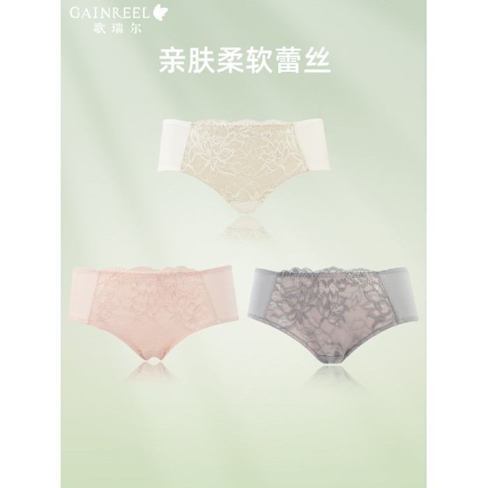 裸感柔軟歌瑞爾新款透氣蕾絲內褲女親膚純棉襠舒適中腰三角褲衩