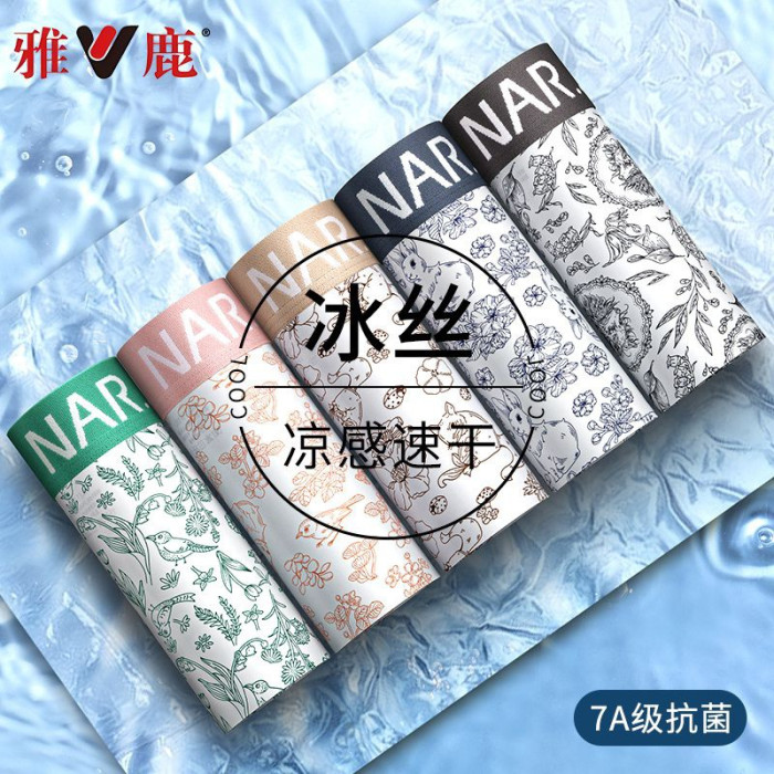 雅鹿運動男士內褲冰絲2026新款透氣大碼平角青少年男生四角短褲頭
