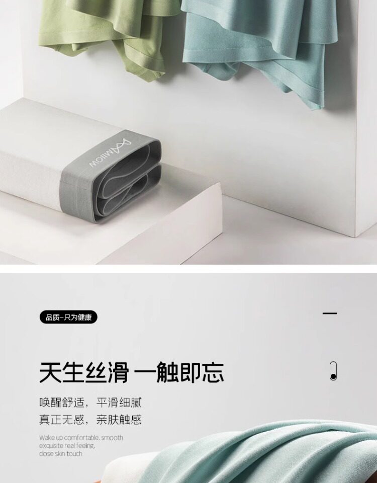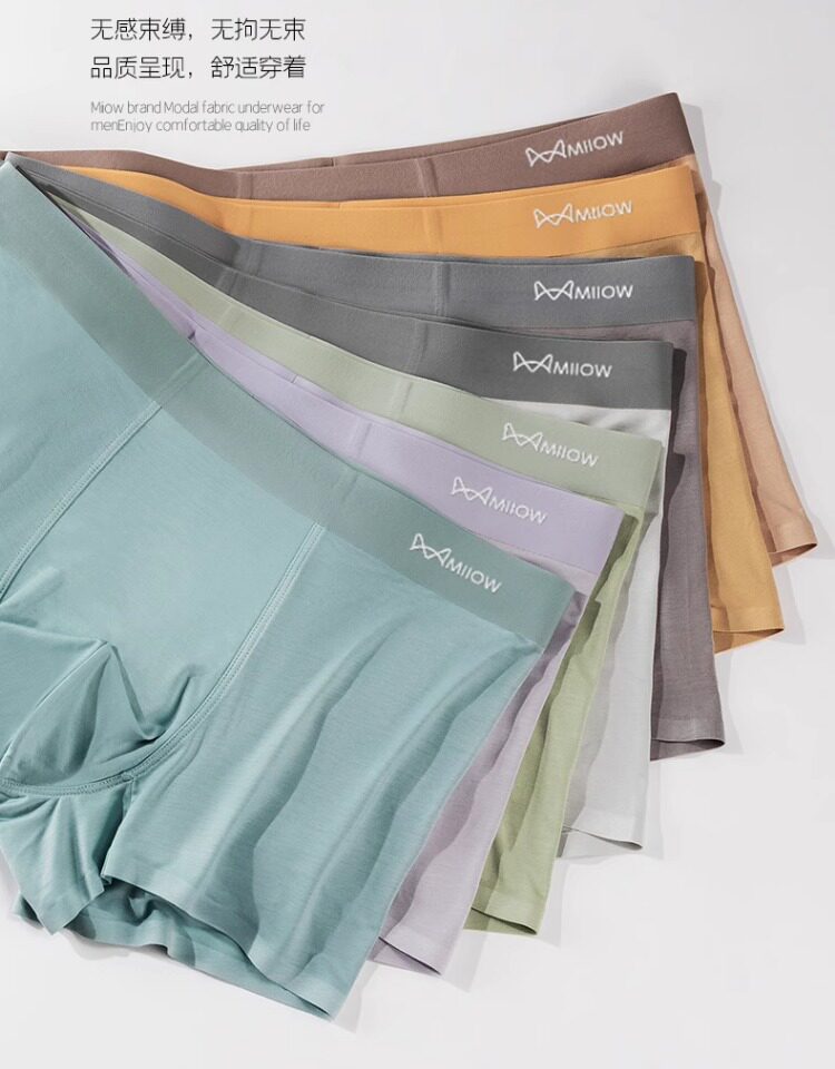 貓人黃色男士內褲男生四角短褲莫代爾無痕抗菌薄款透氣男款平角褲