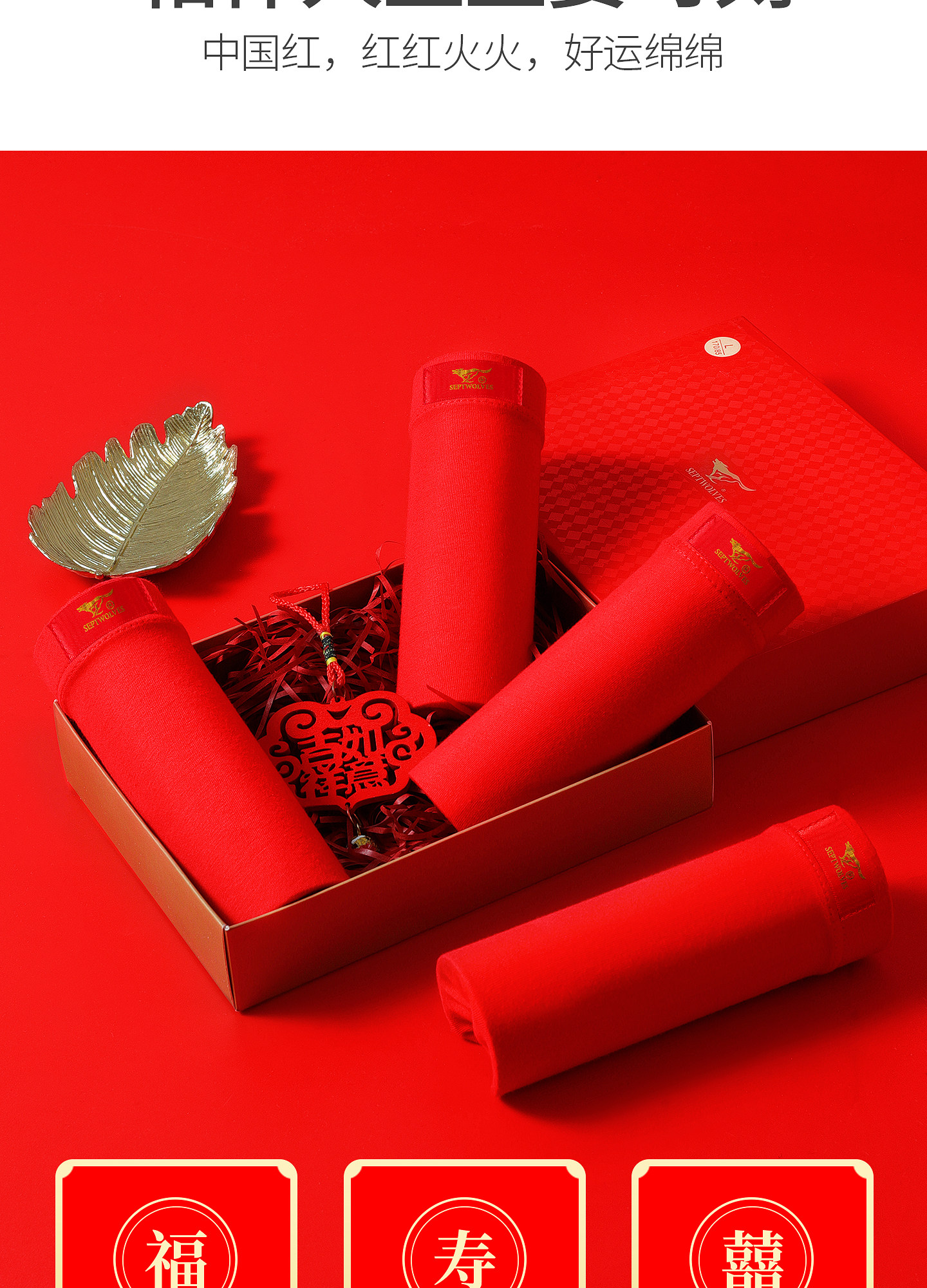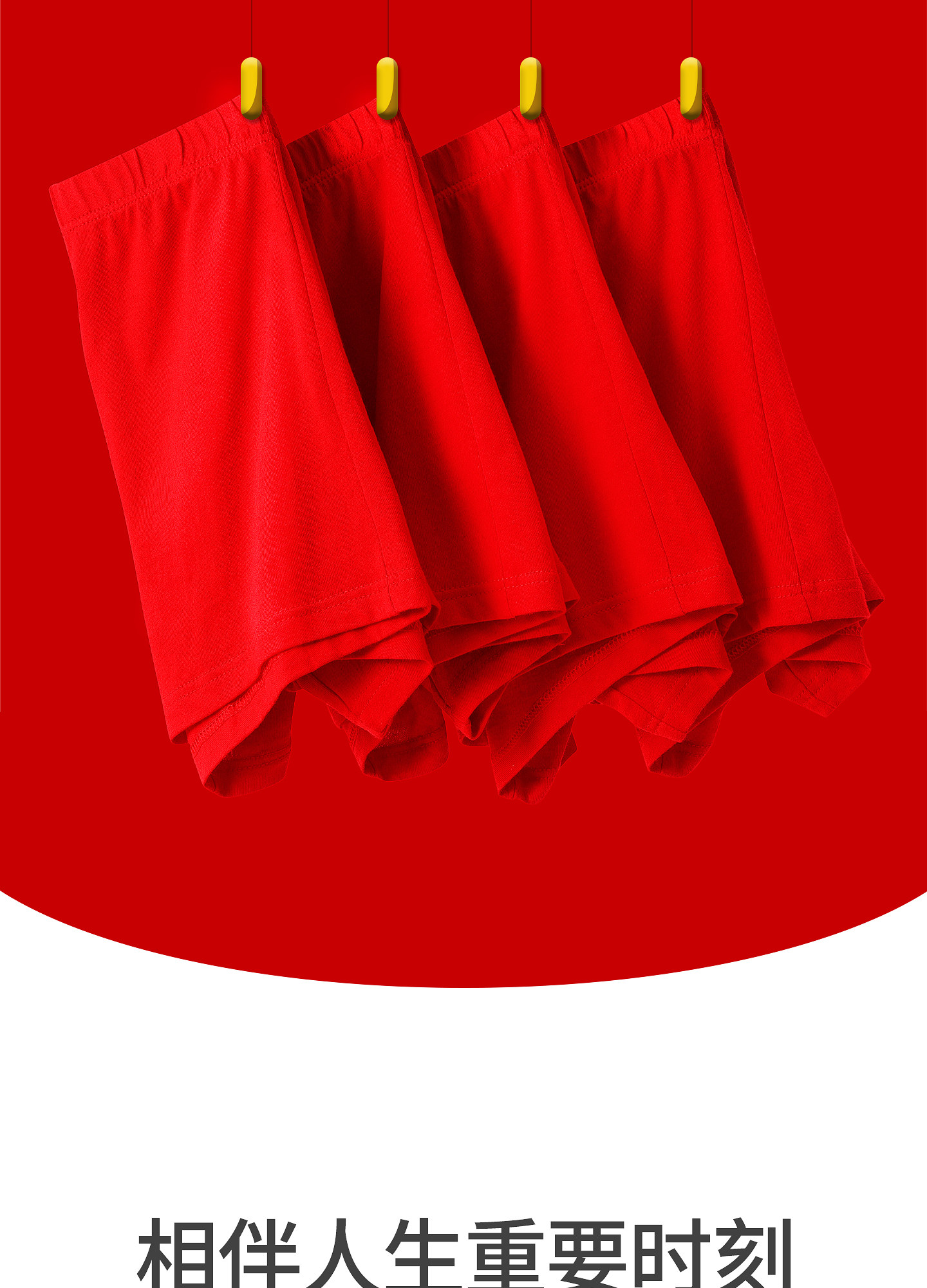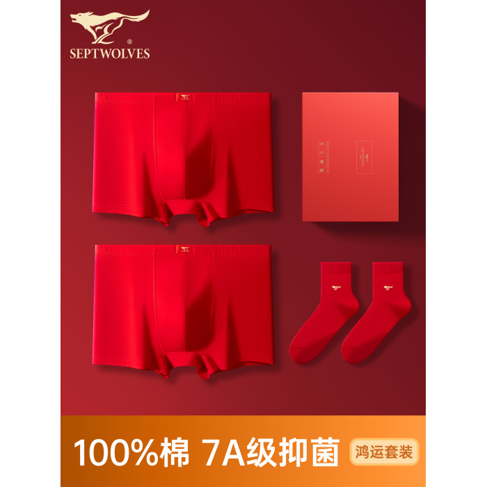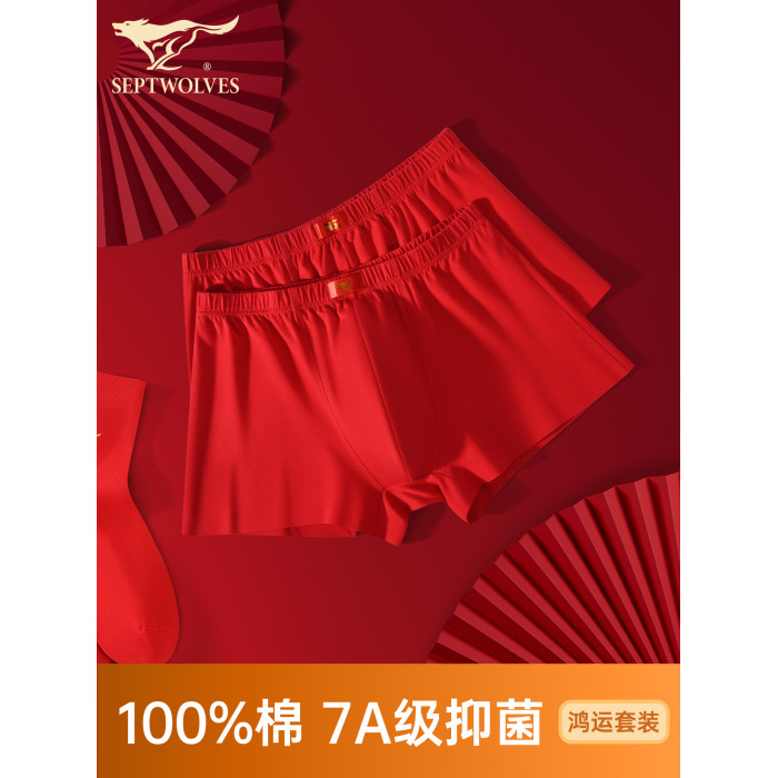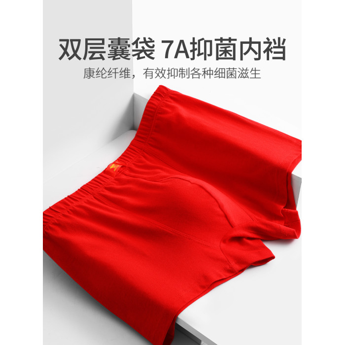 七匹狼本命年內衣男士內褲純棉大紅色結婚馬年禮物全棉男生短褲衩