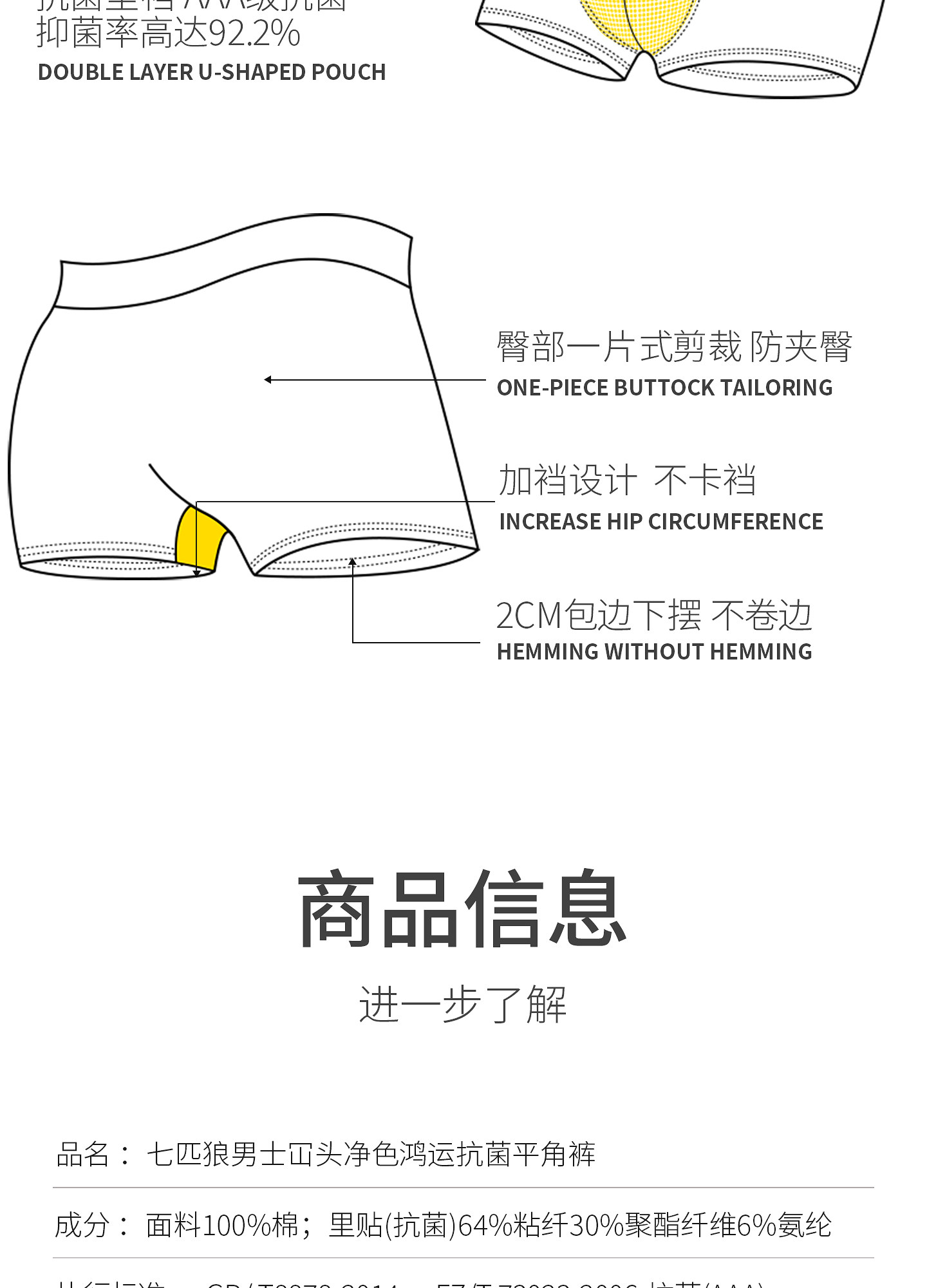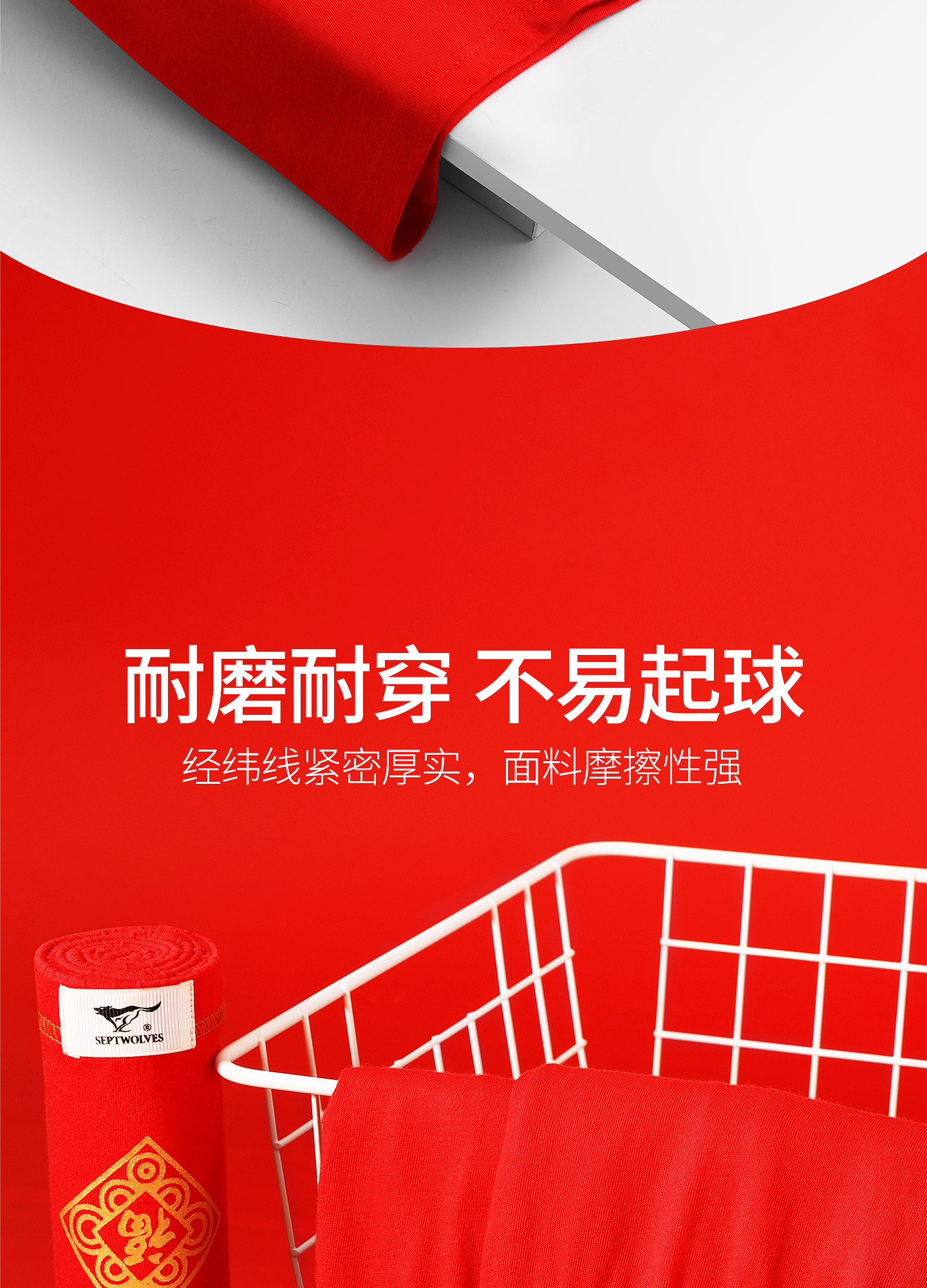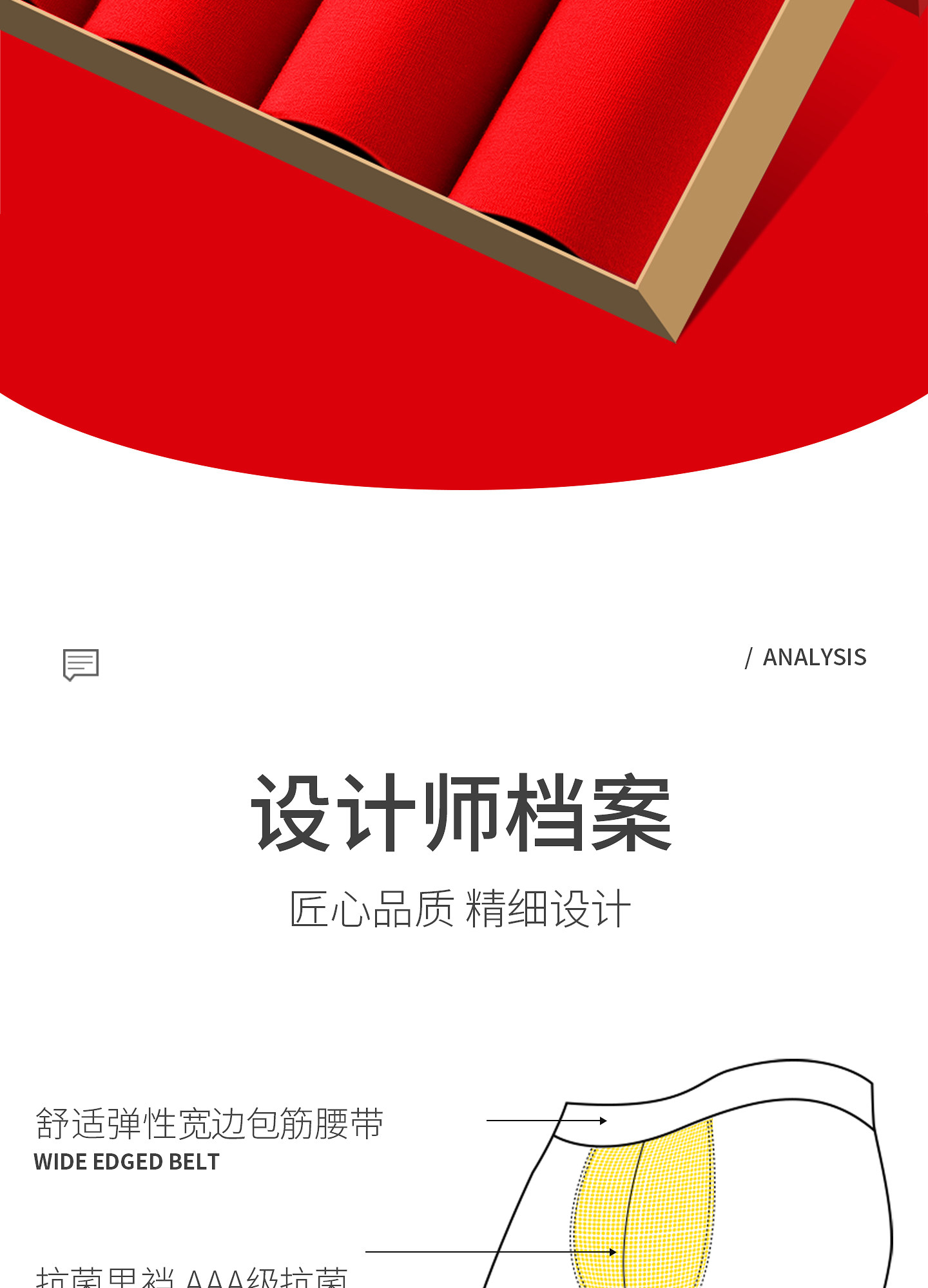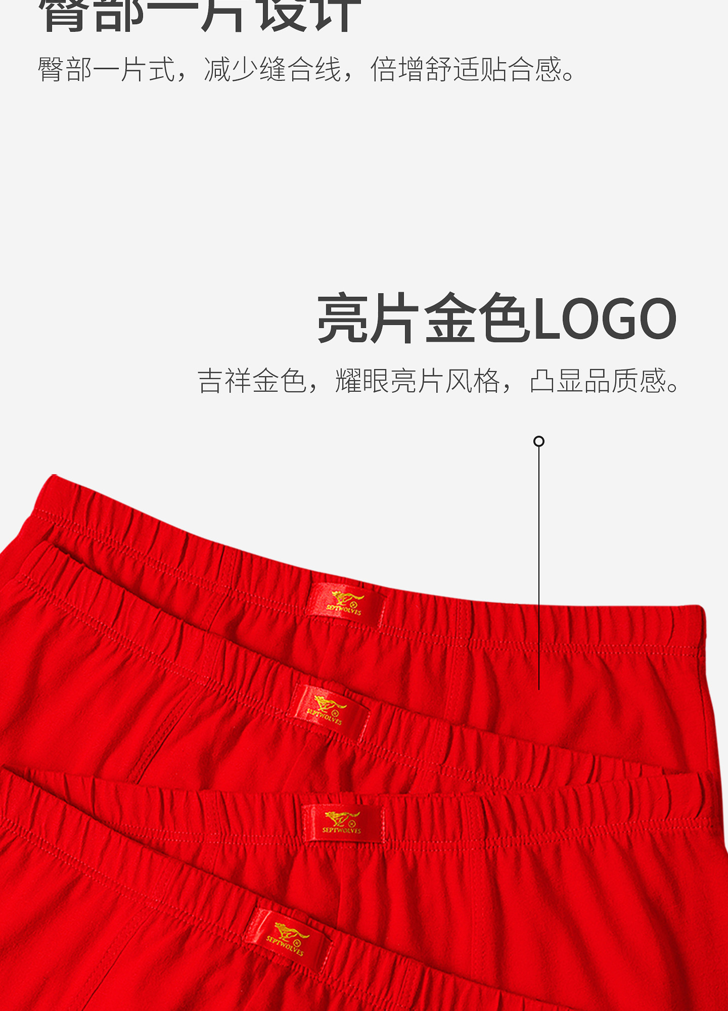 七匹狼本命年內衣男士內褲純棉大紅色結婚馬年禮物全棉男生短褲衩