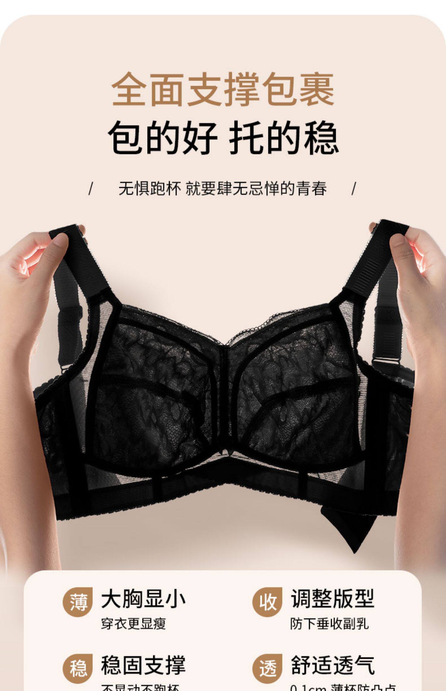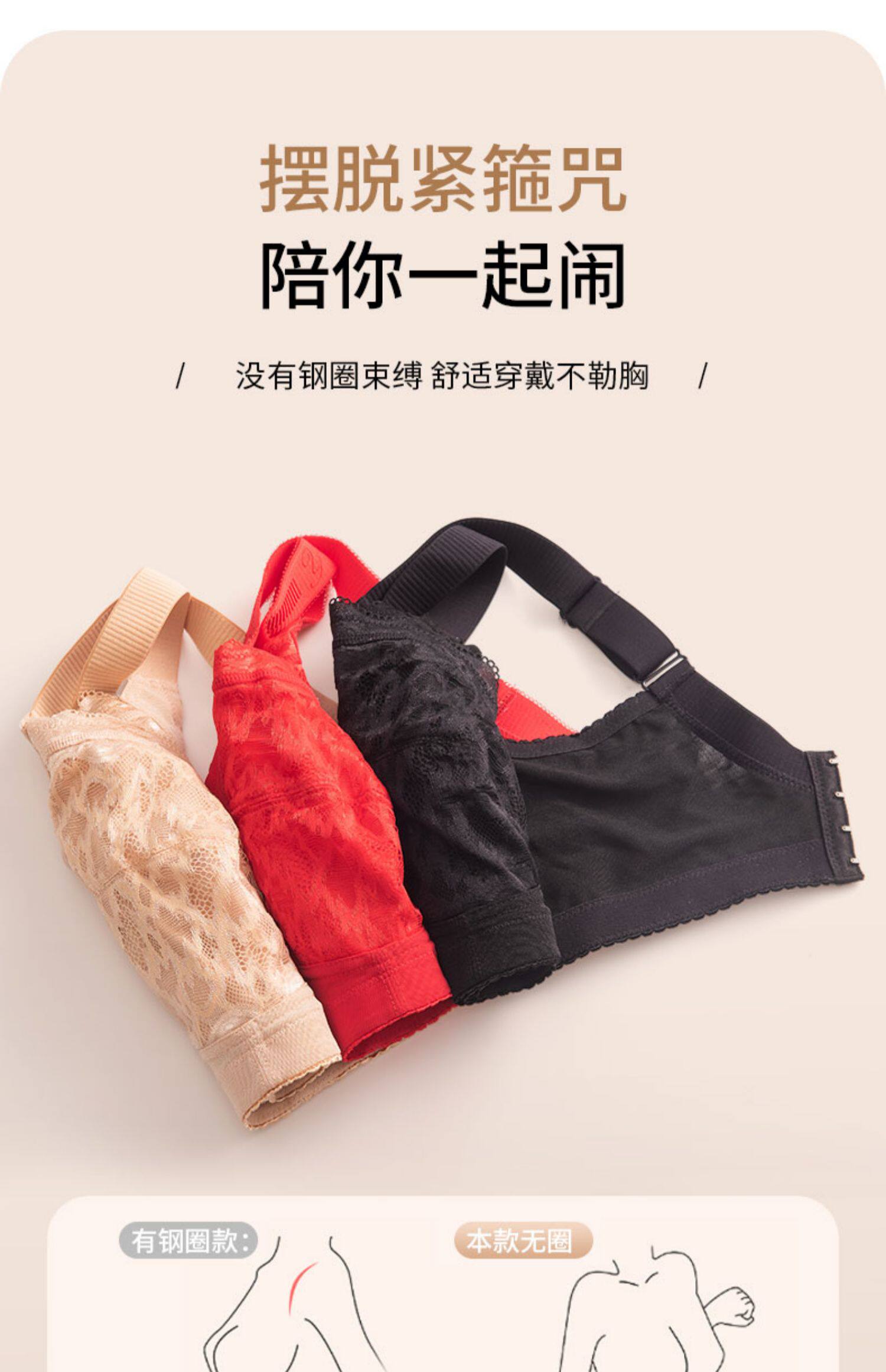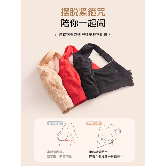 大碼紅色內衣女胖mm收副乳縮胸防下垂大胸顯小本命年文胸薄款全杯