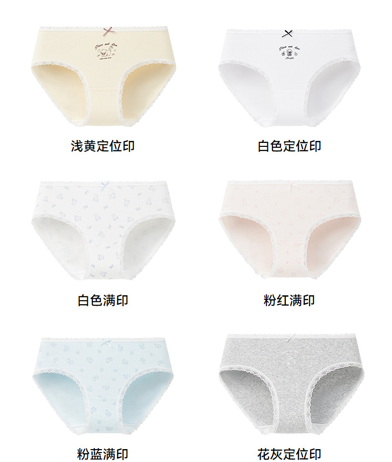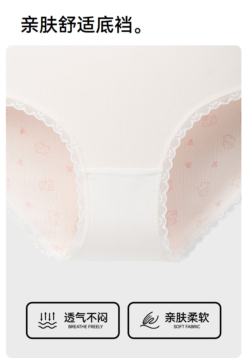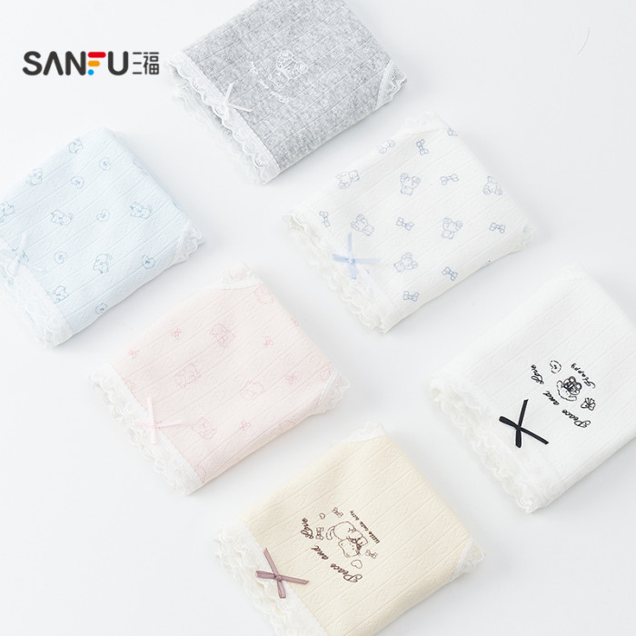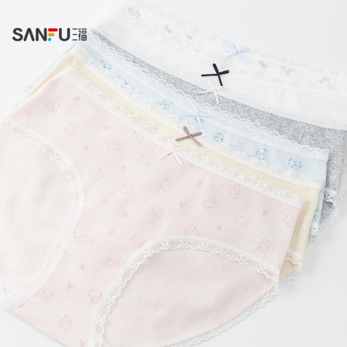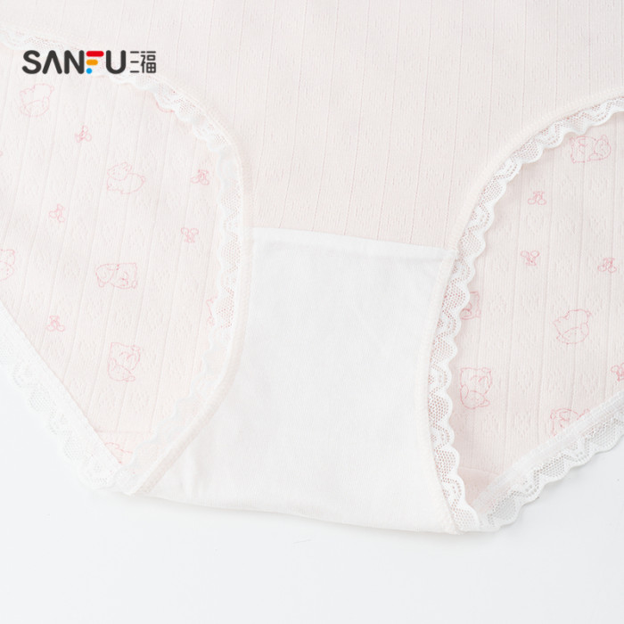 三福女低腰包臀內褲 少女花邊印花柔軟透氣半平角褲女495837
