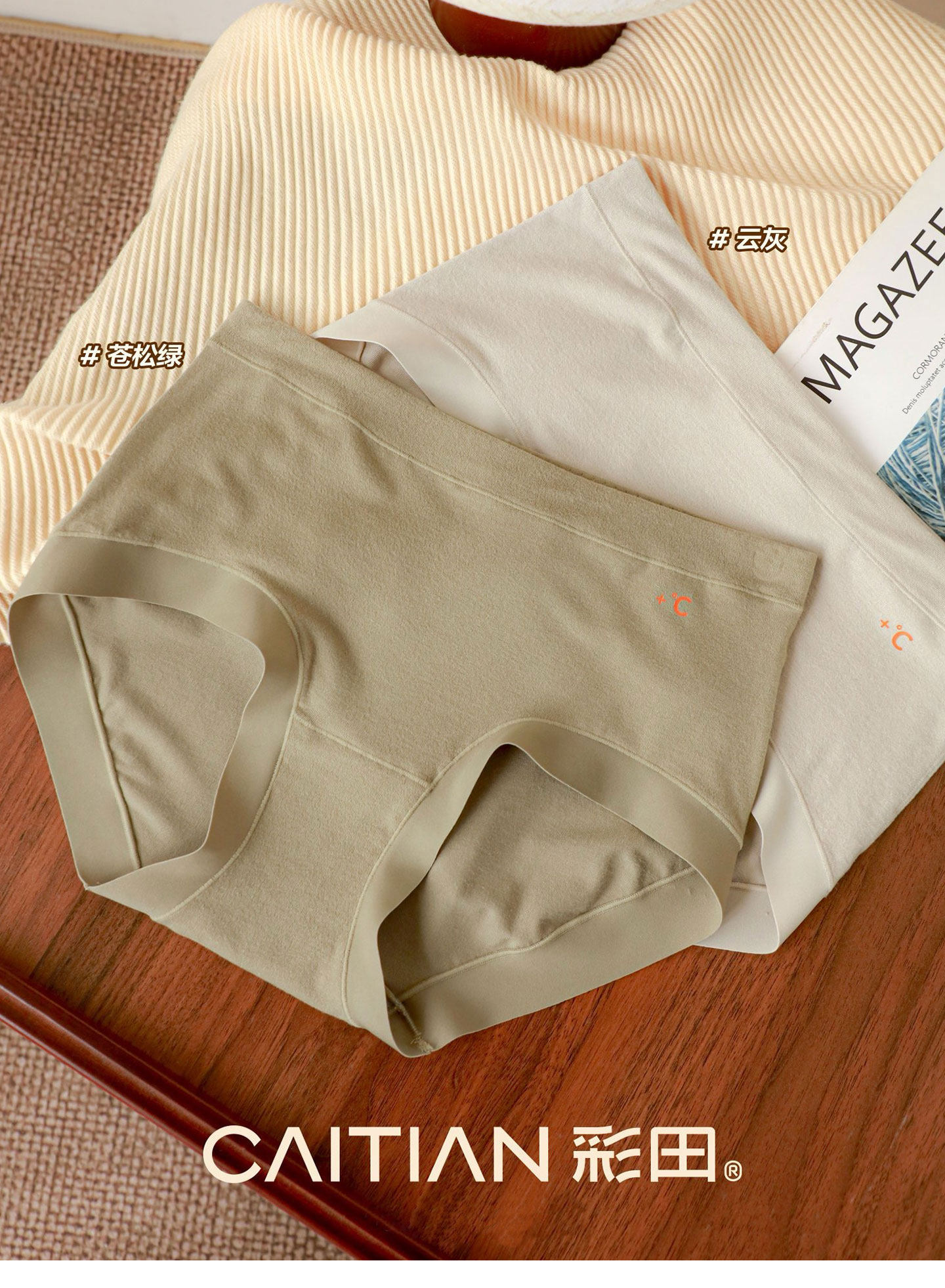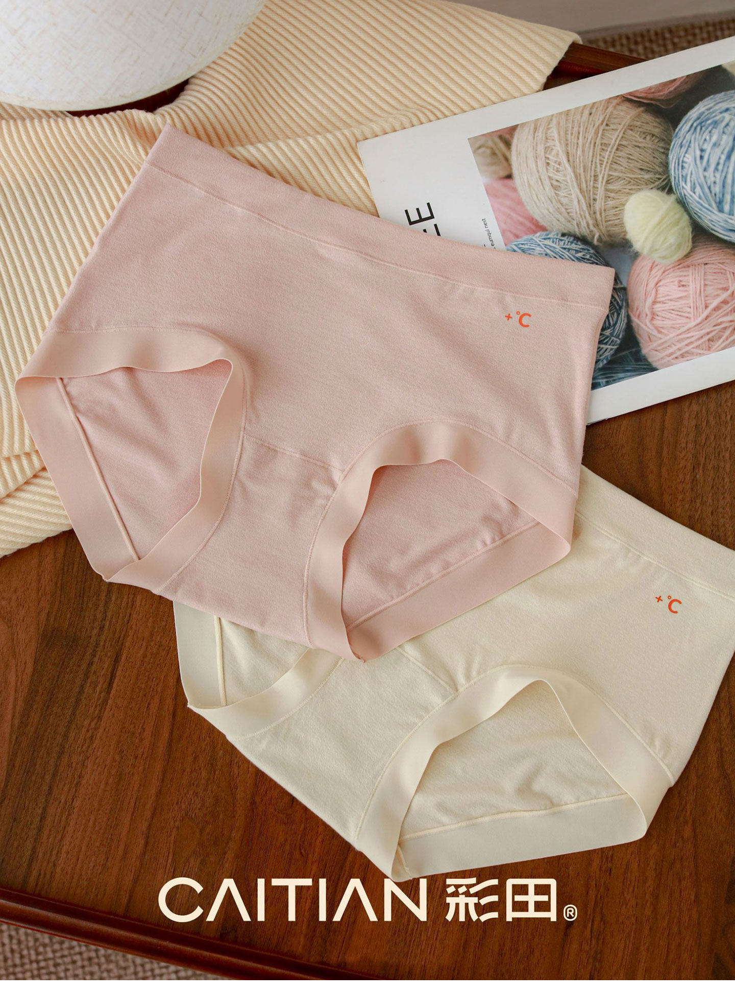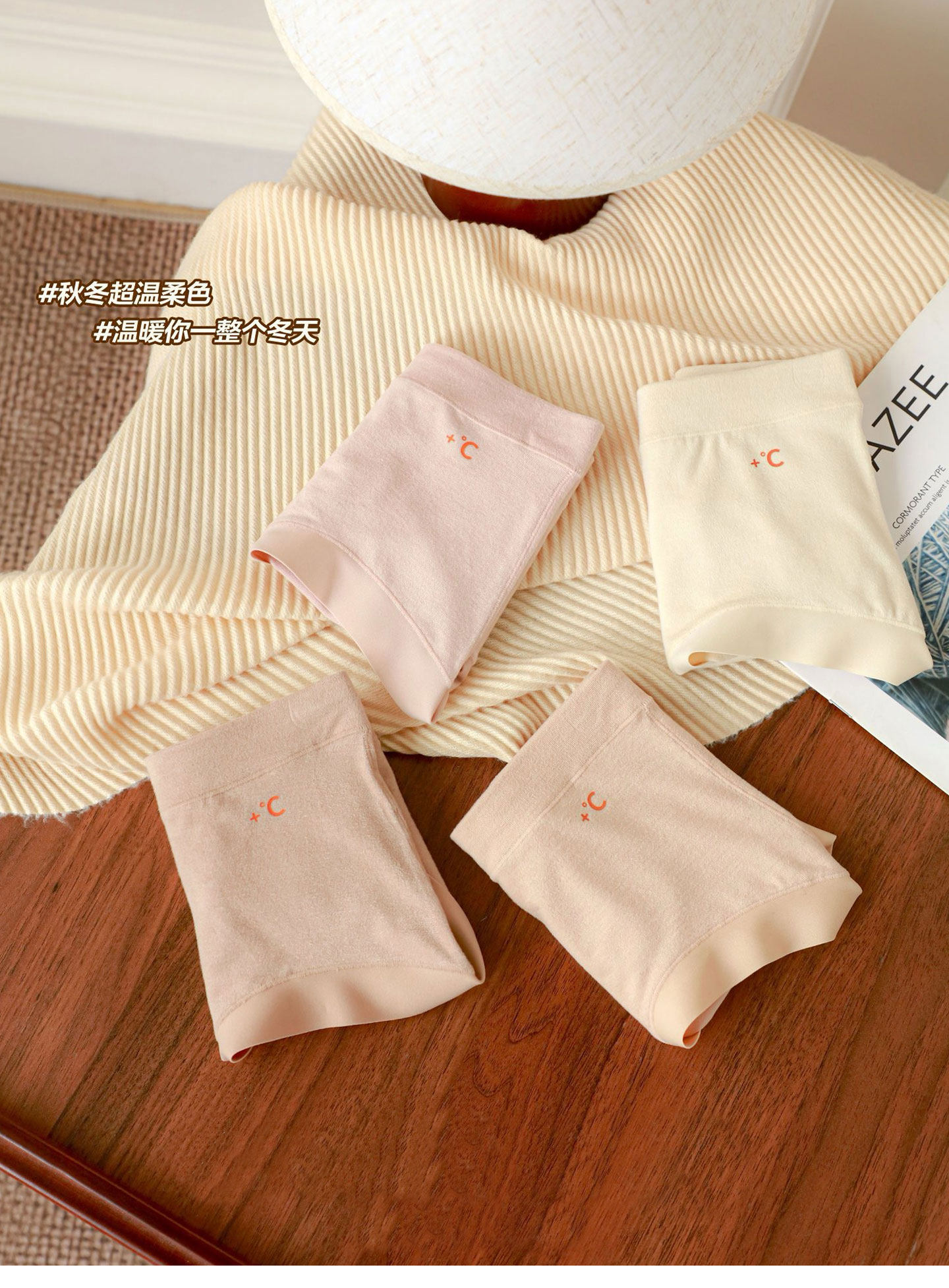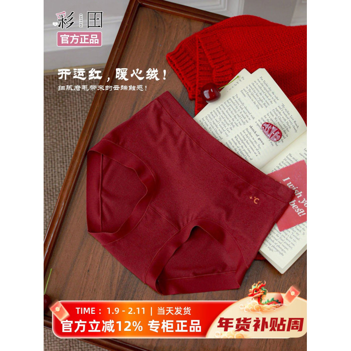 彩田溫暖磨毛內褲女無痕不夾臀10A抗菌棉襠2025秋冬新款包臀短褲