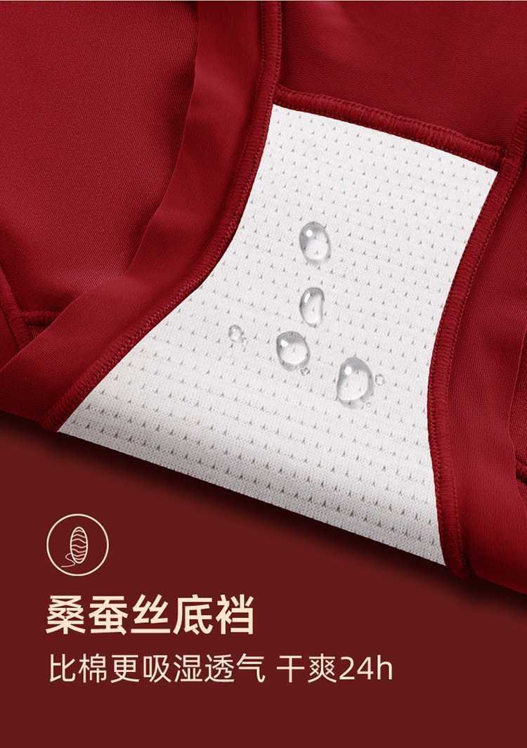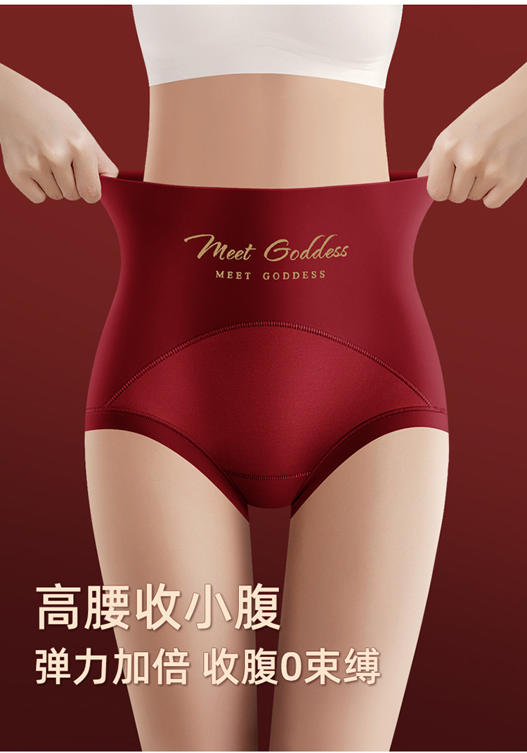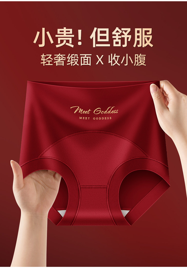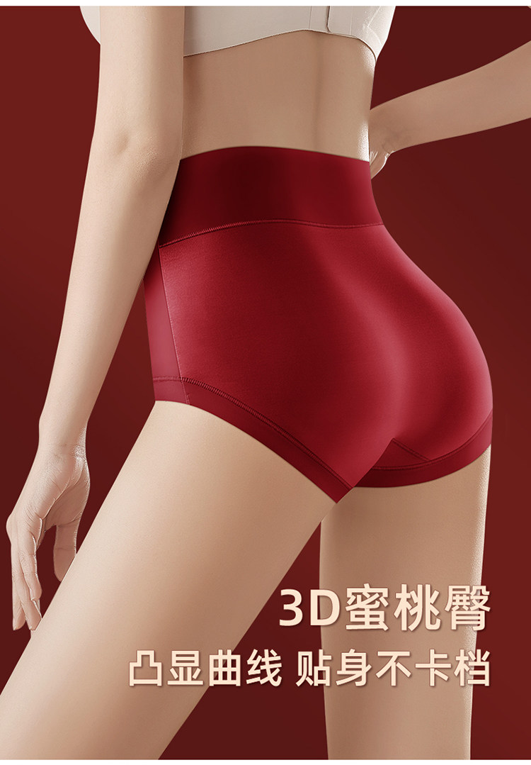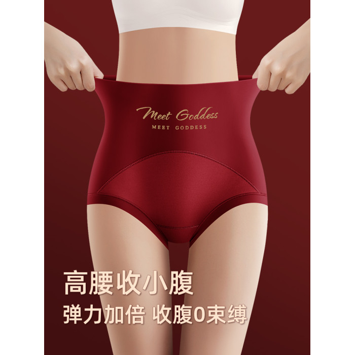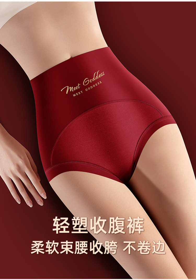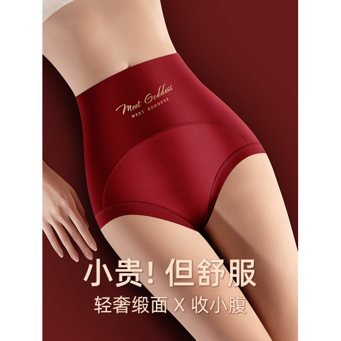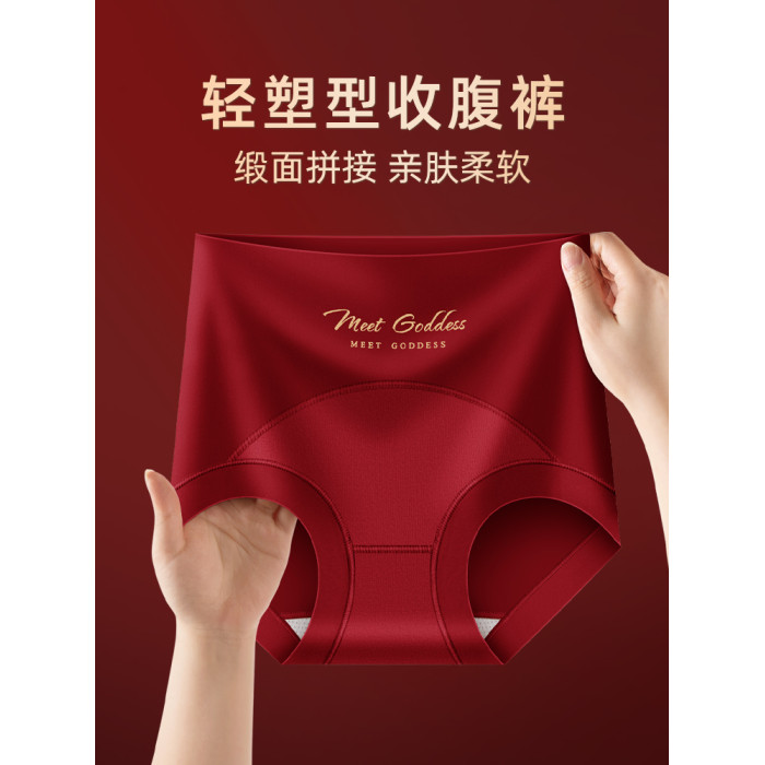 高腰收腹內褲女無痕提臀桑蠶絲襠本命年大紅色三角褲屬馬年結婚