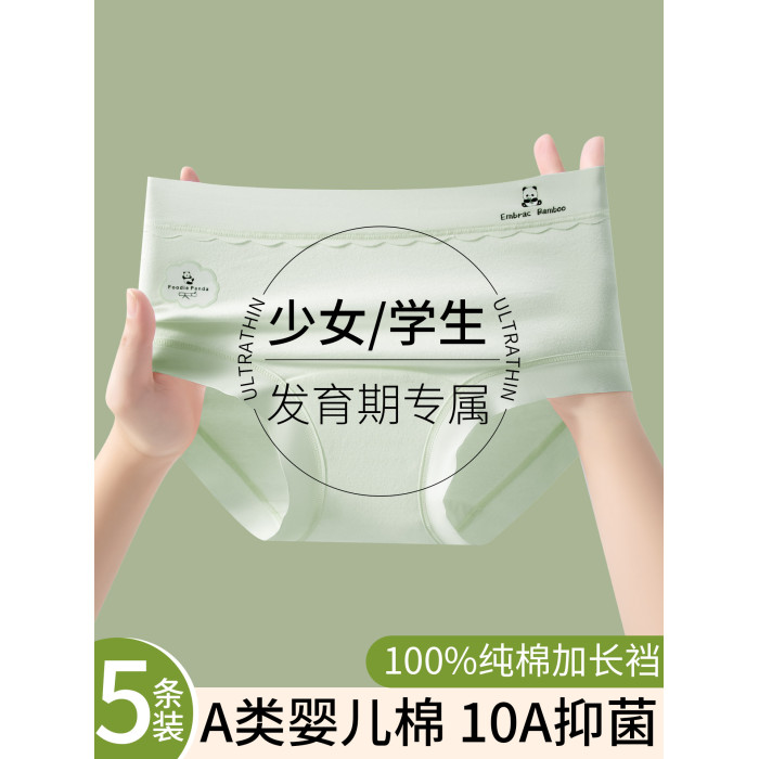 青少年發育期少女孩內褲女士純棉抗菌加長襠初高中學生大童三角褲