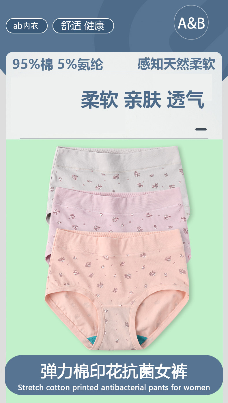 AB內褲女士平角褲純棉抗菌透氣彈力棉貼身中高腰媽咪褲夏季薄1128