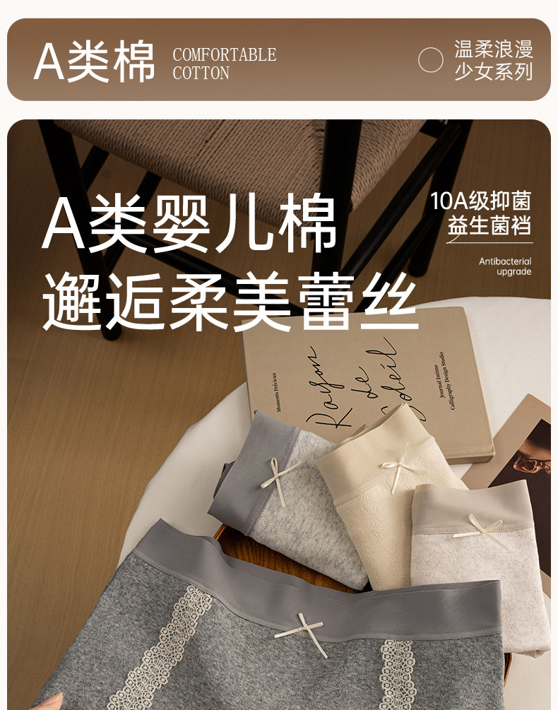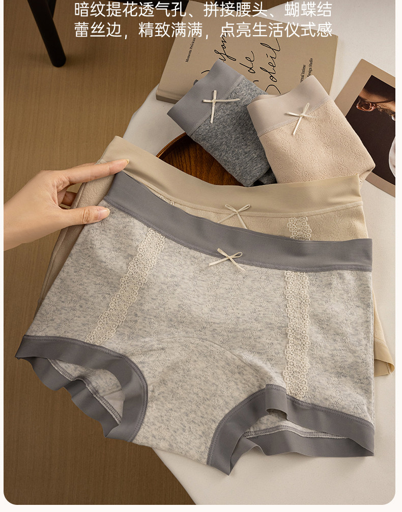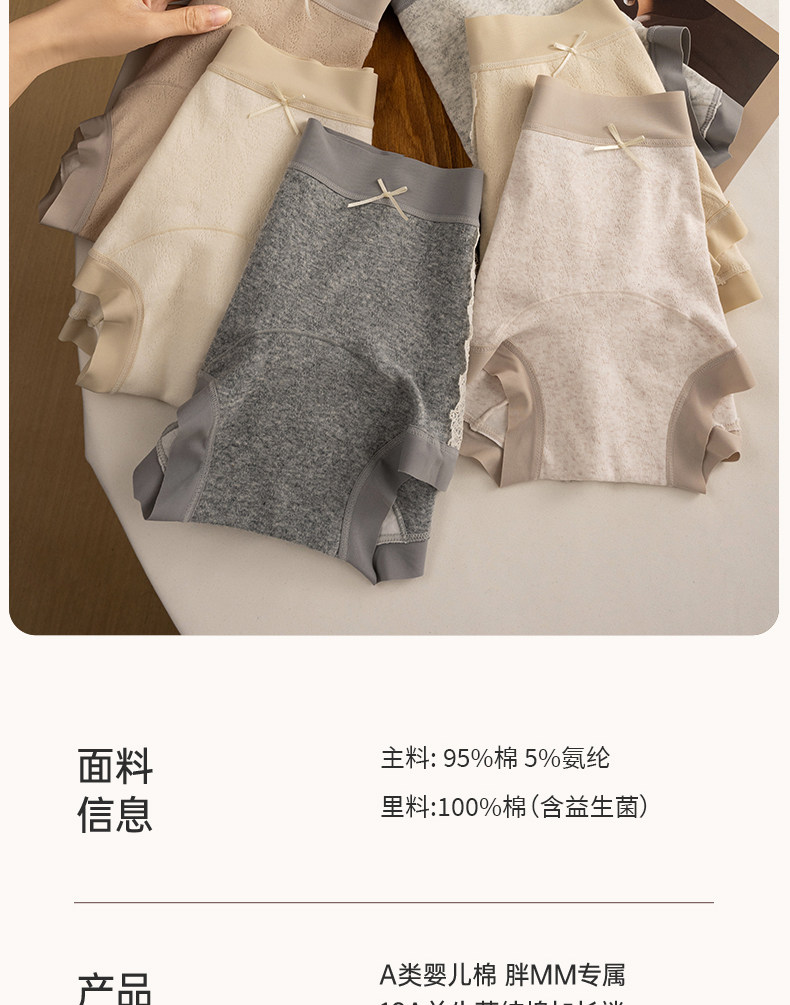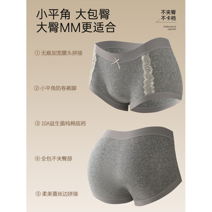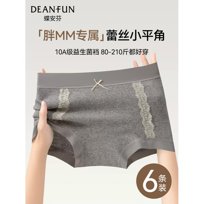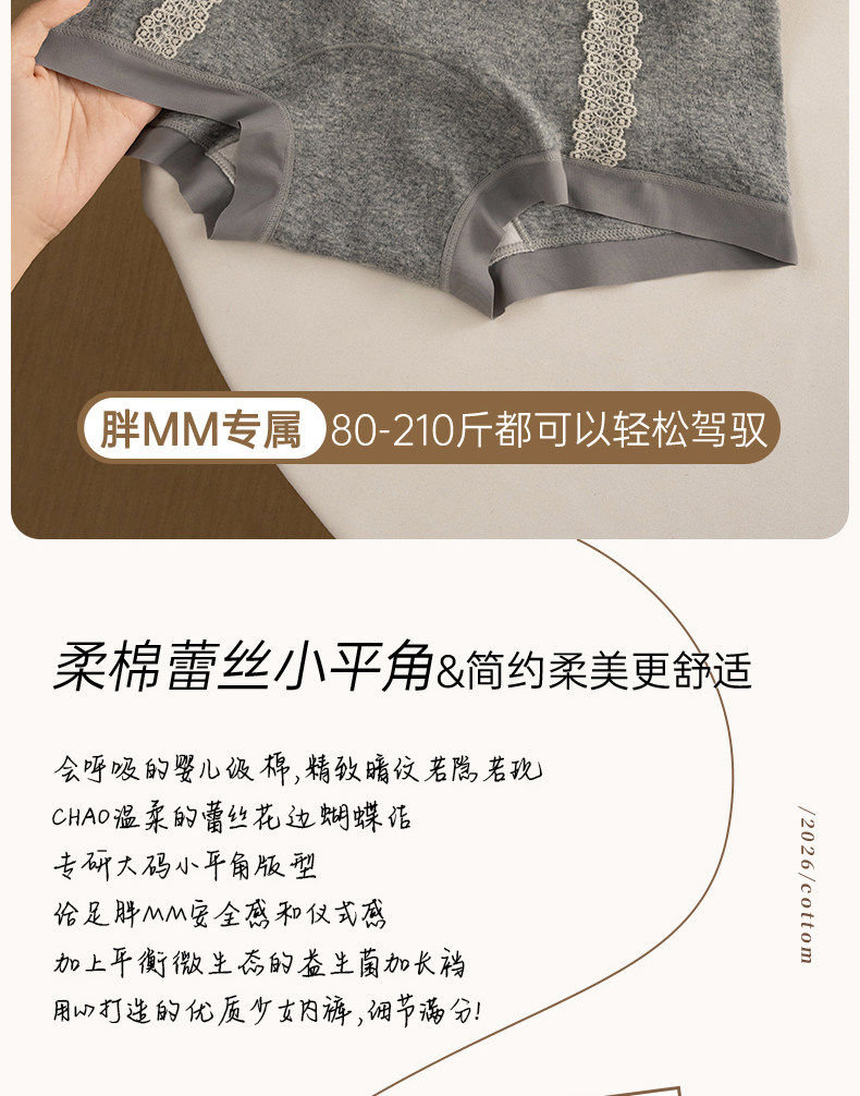 蝶安芬純棉內褲女2026新款全棉抗菌加長襠中腰胖mm大碼女平角褲
