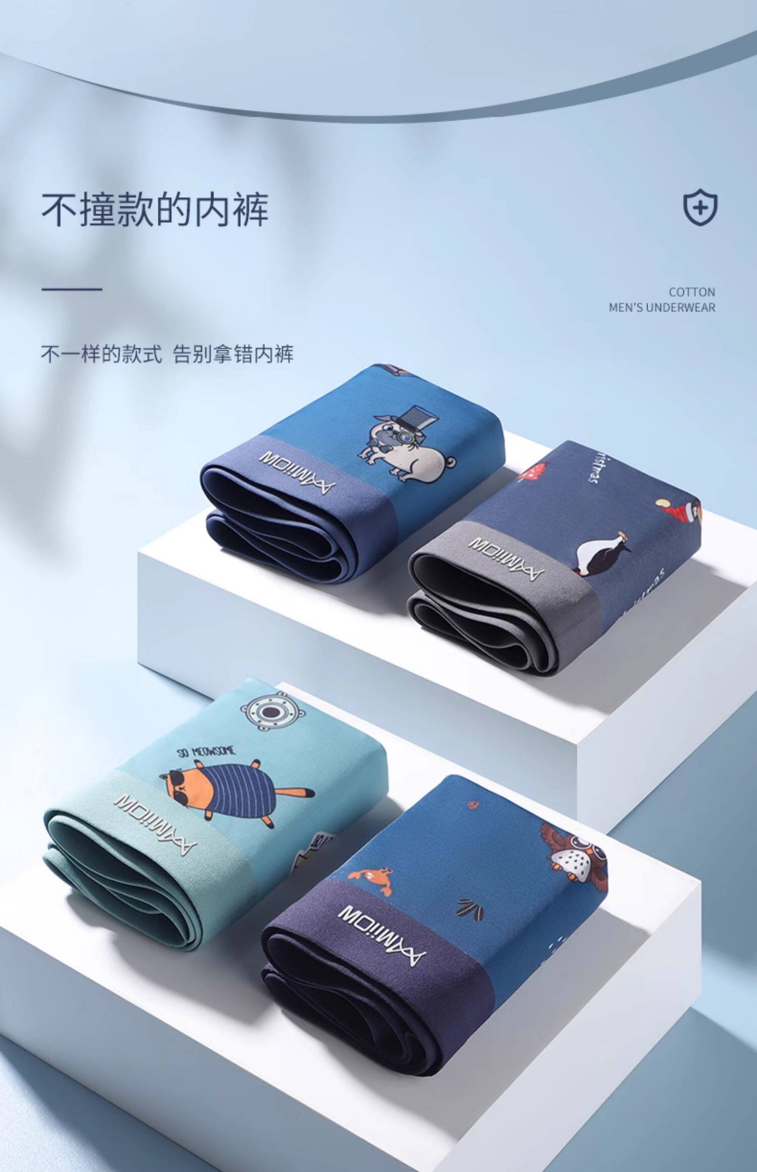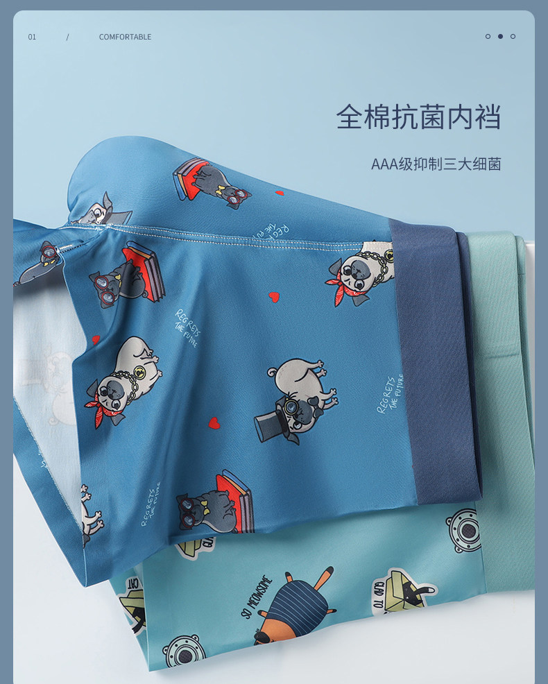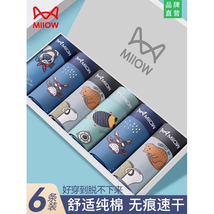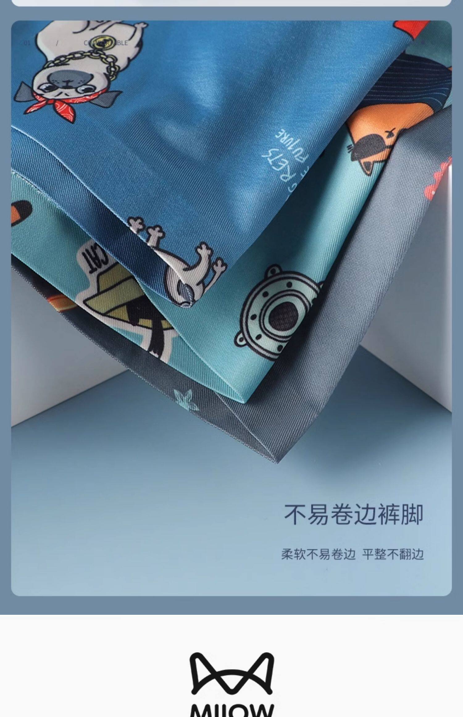 貓人男士內褲男生純棉平角無痕青少年卡通抗菌透氣全棉冰絲四角褲