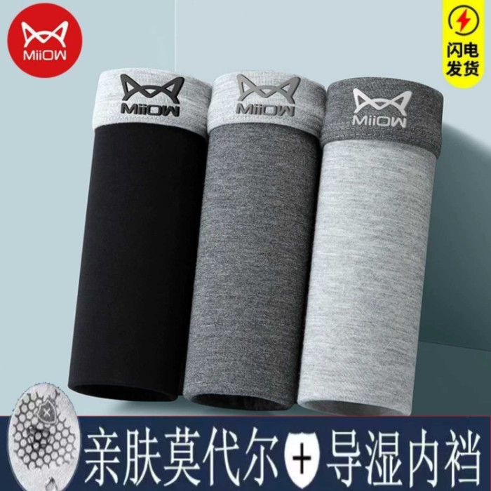 貓人黑色男士內褲純棉莫代爾棉透氣男生平角褲中腰純色四季四角褲
