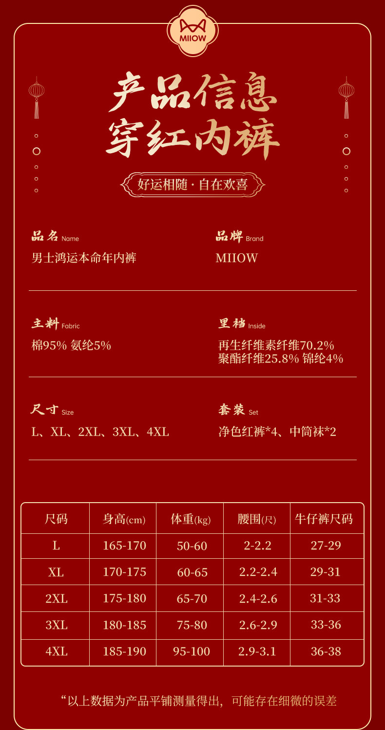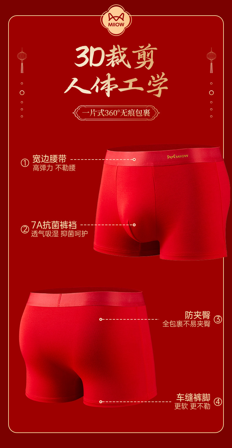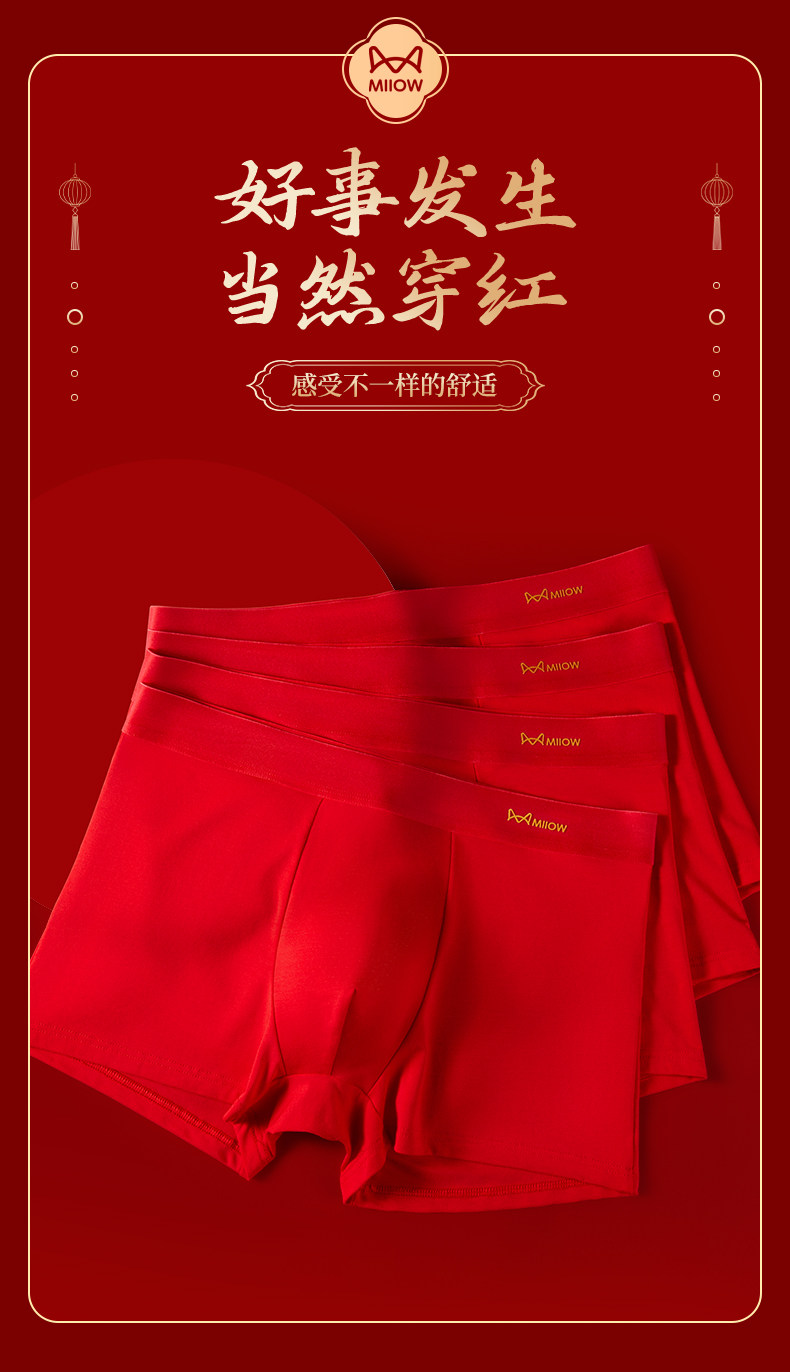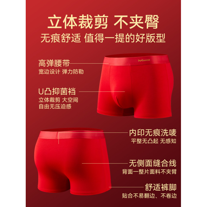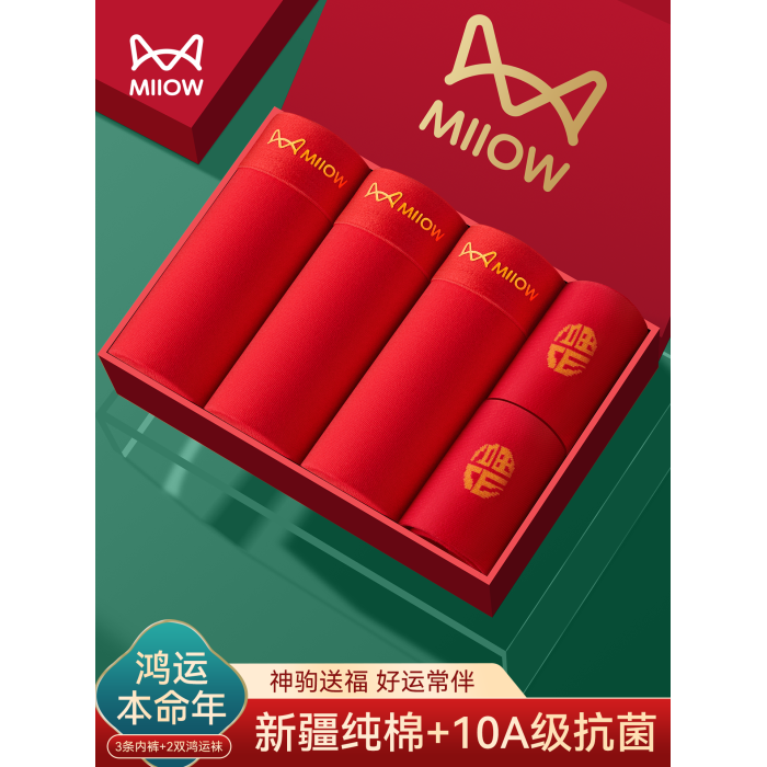 貓人本命年男士內褲紅色純棉四角褲2026新款屬馬年結婚男生短褲衩