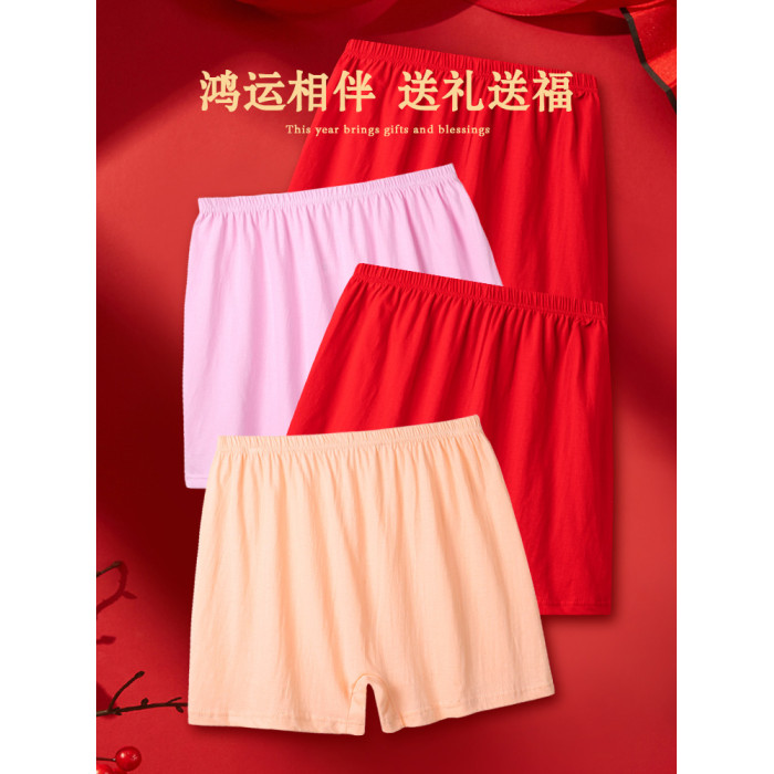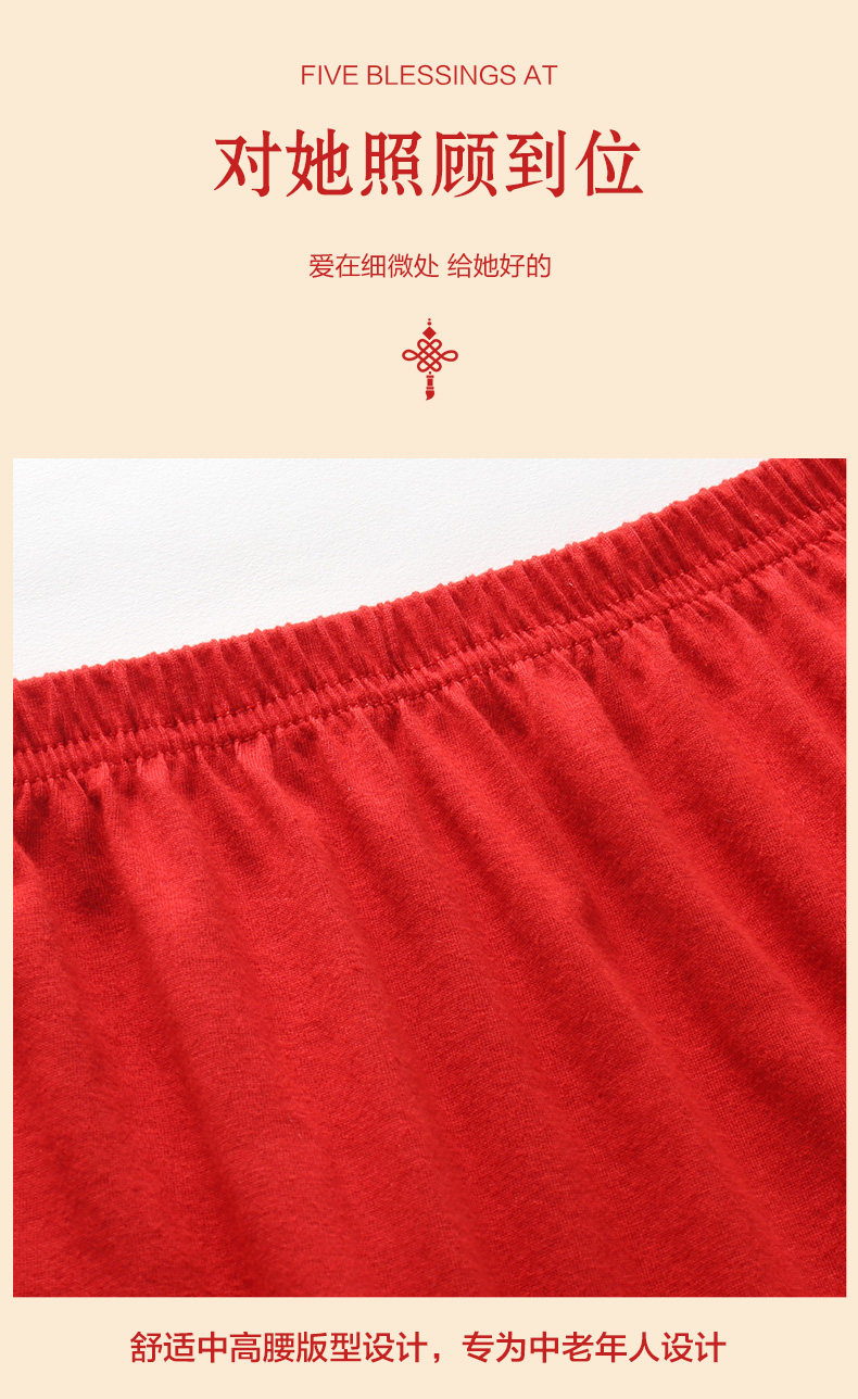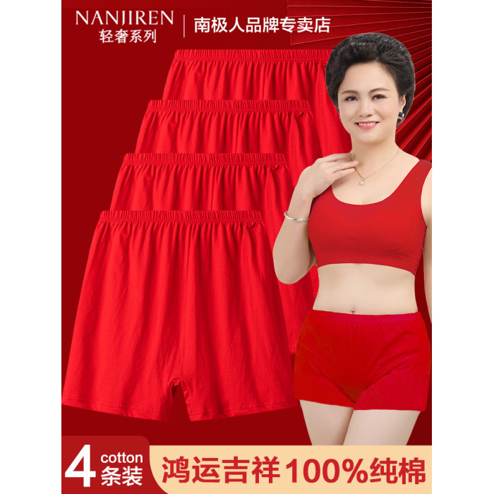 南極人本命年媽媽內褲高腰阿羅褲大紅色平角短褲中老年純棉四角褲