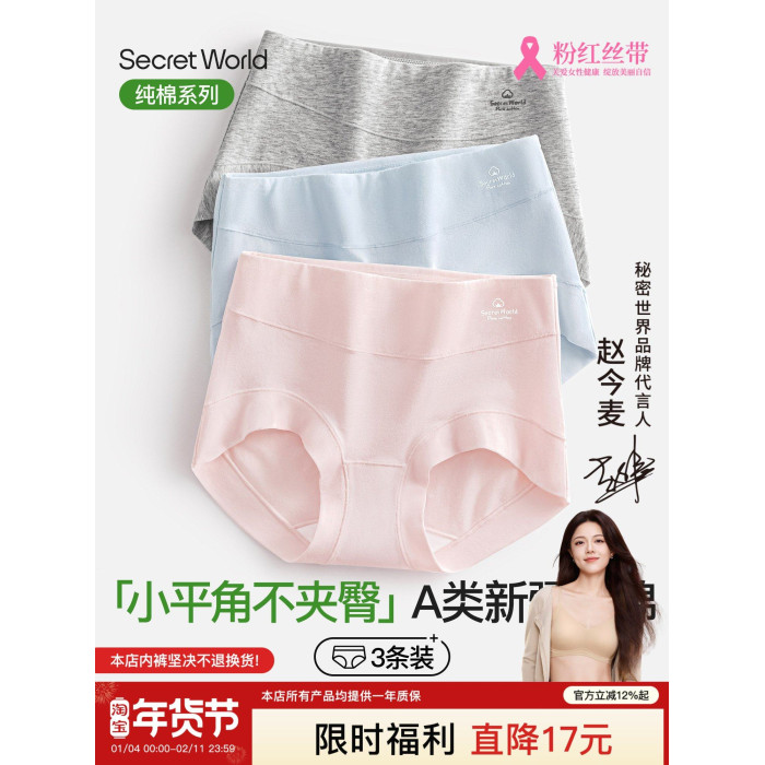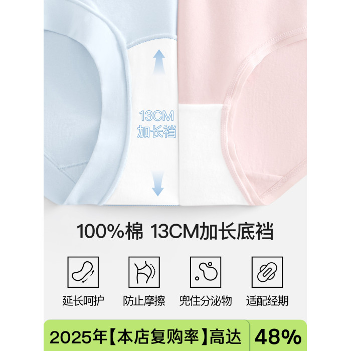 小平角內褲女純棉2025新款10A抗菌全棉加長襠高腰女士四角短褲