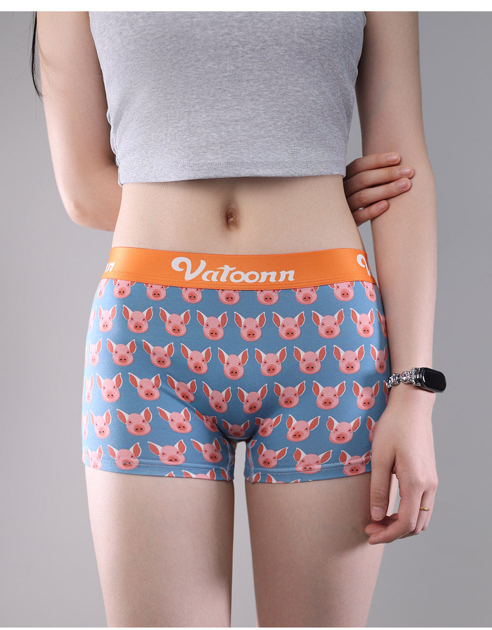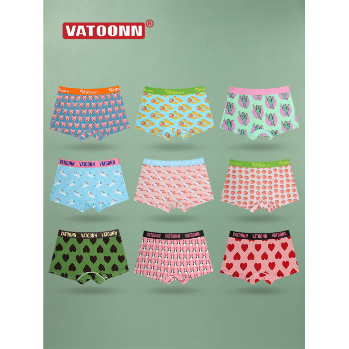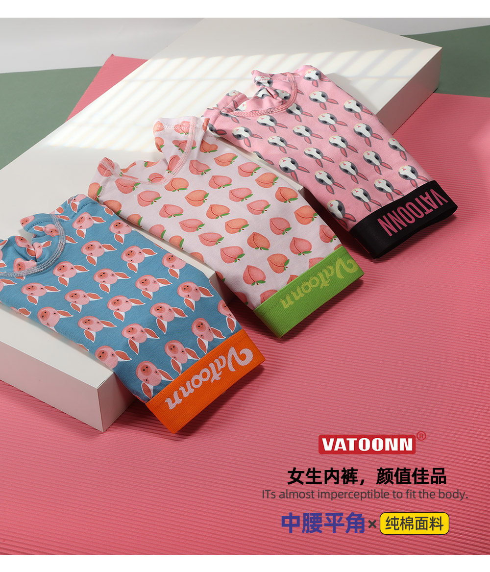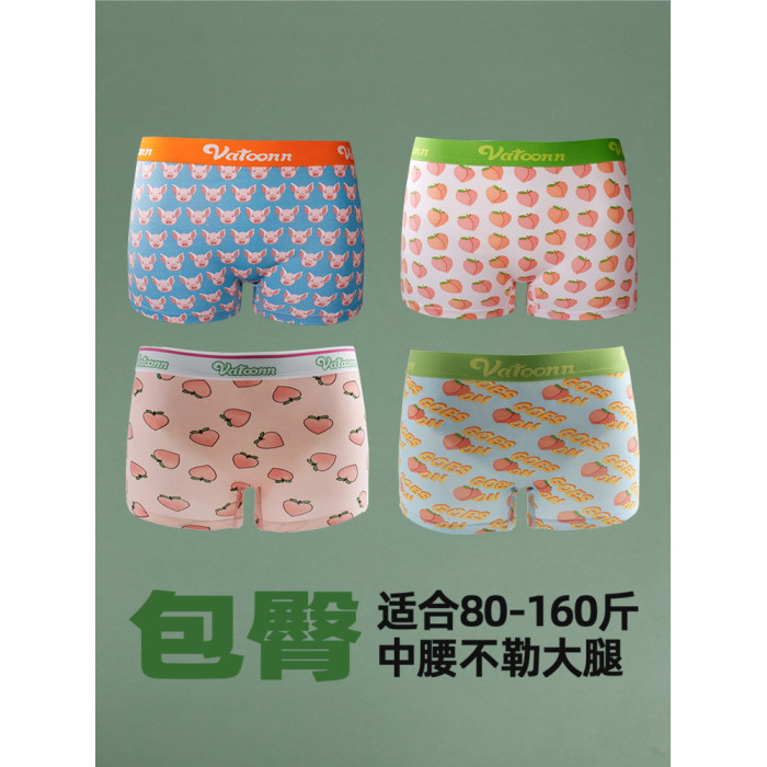 女生純棉平角中腰收腹寬腰帶內褲防摩擦抗菌襠大碼卡通印花多色