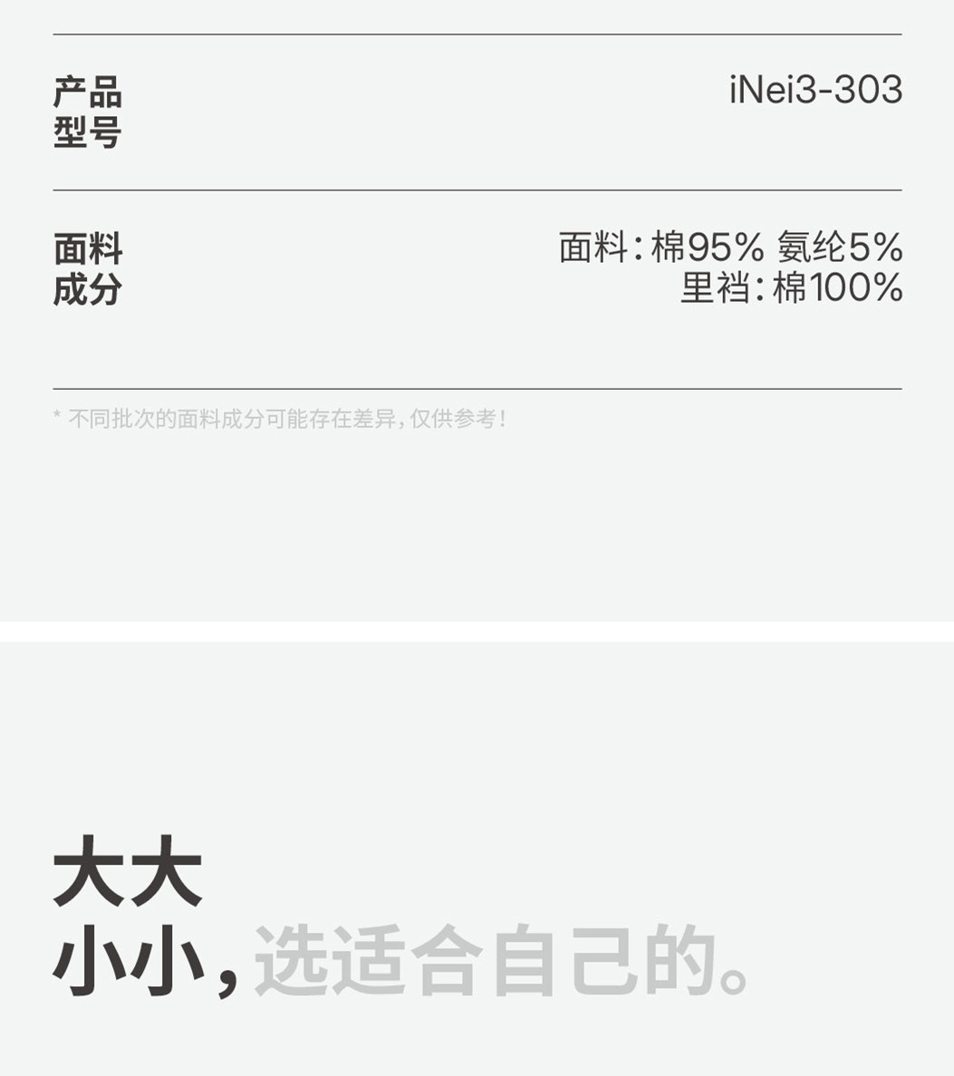 | 大身材質成分 | 棉95% 聚氨酯彈性纖維(氨綸)5% |
