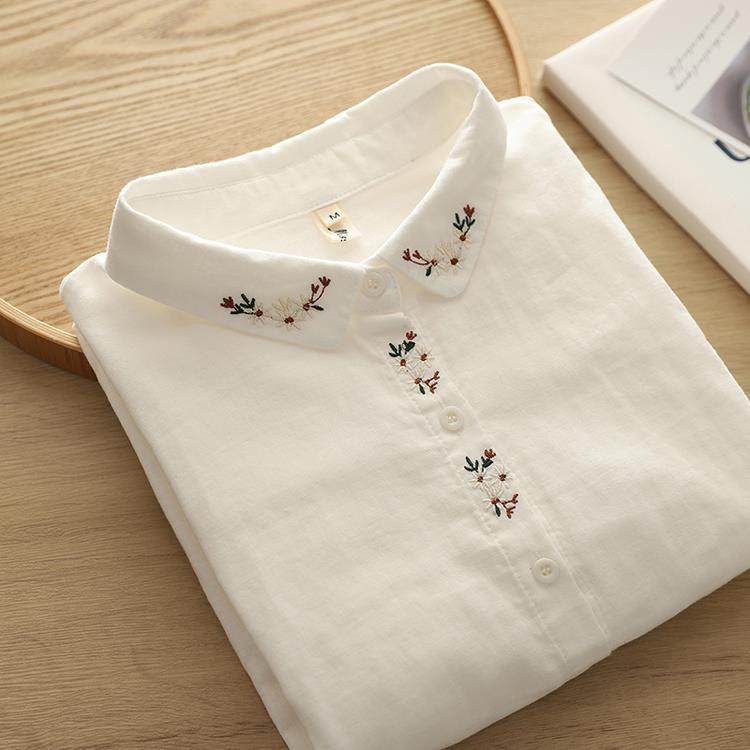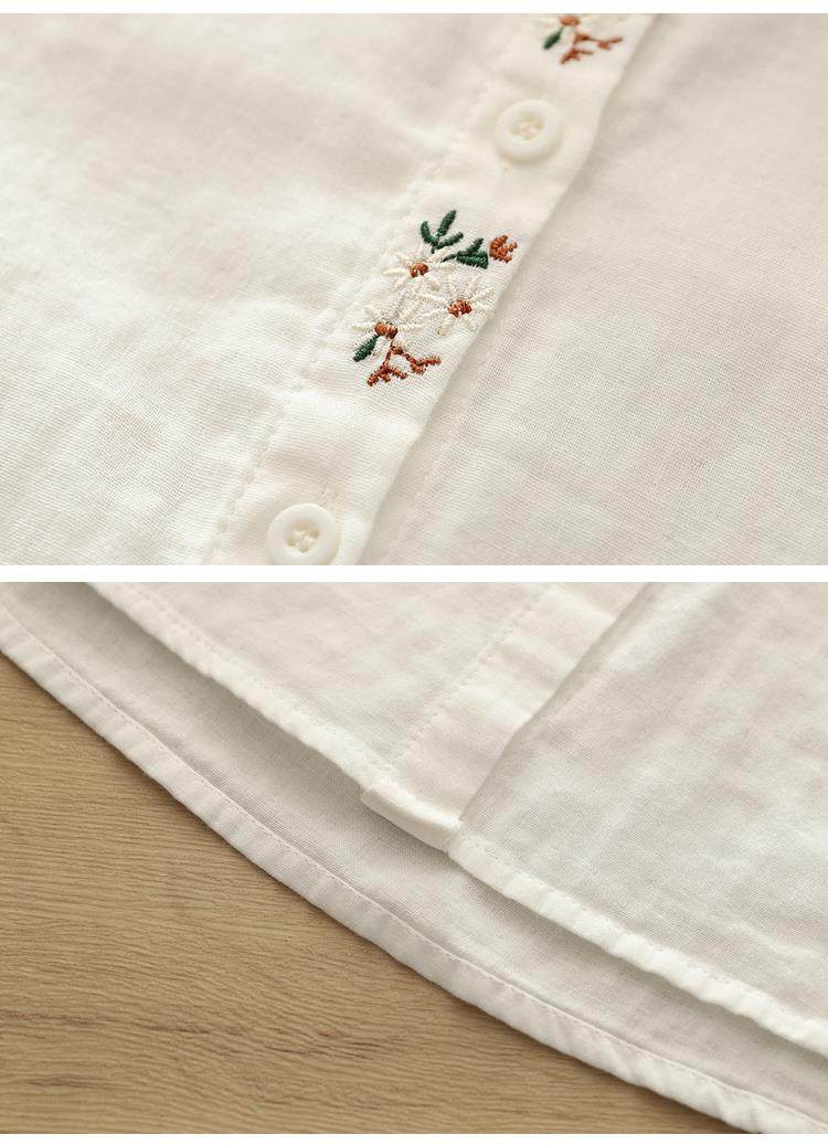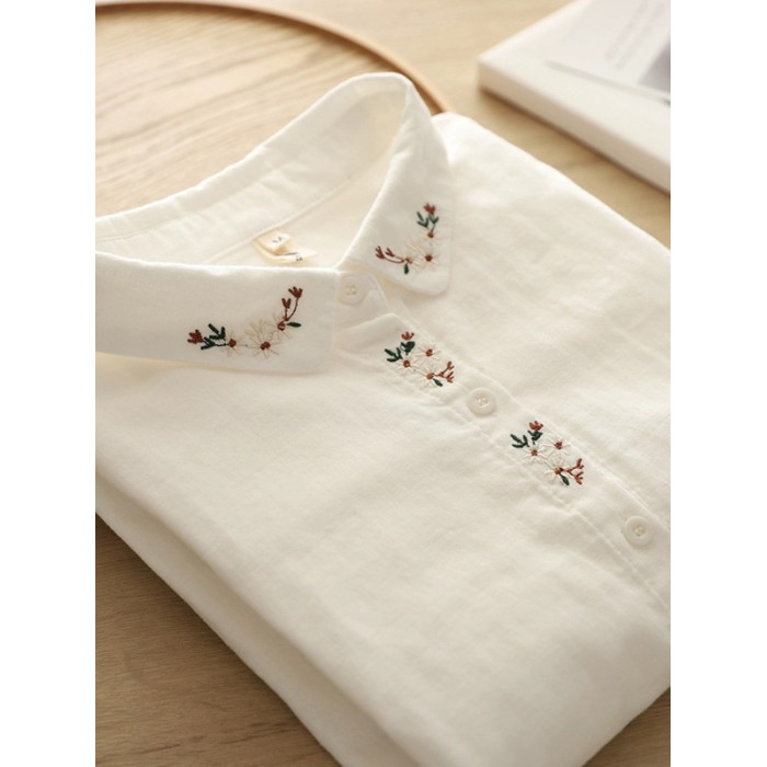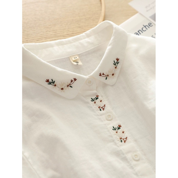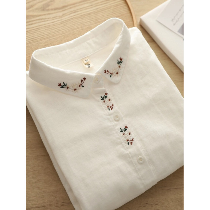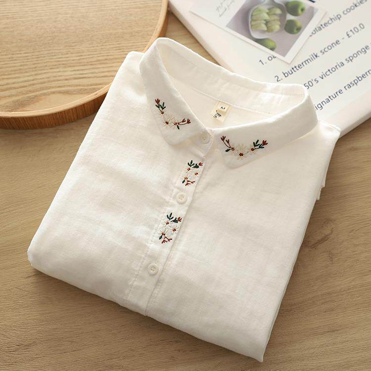 剪標日單出口日系刺綉棉紗襯衫女春季休閒百搭長袖襯衣潮
