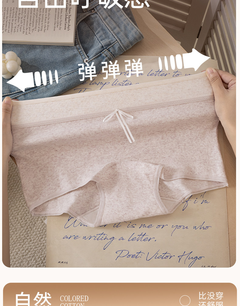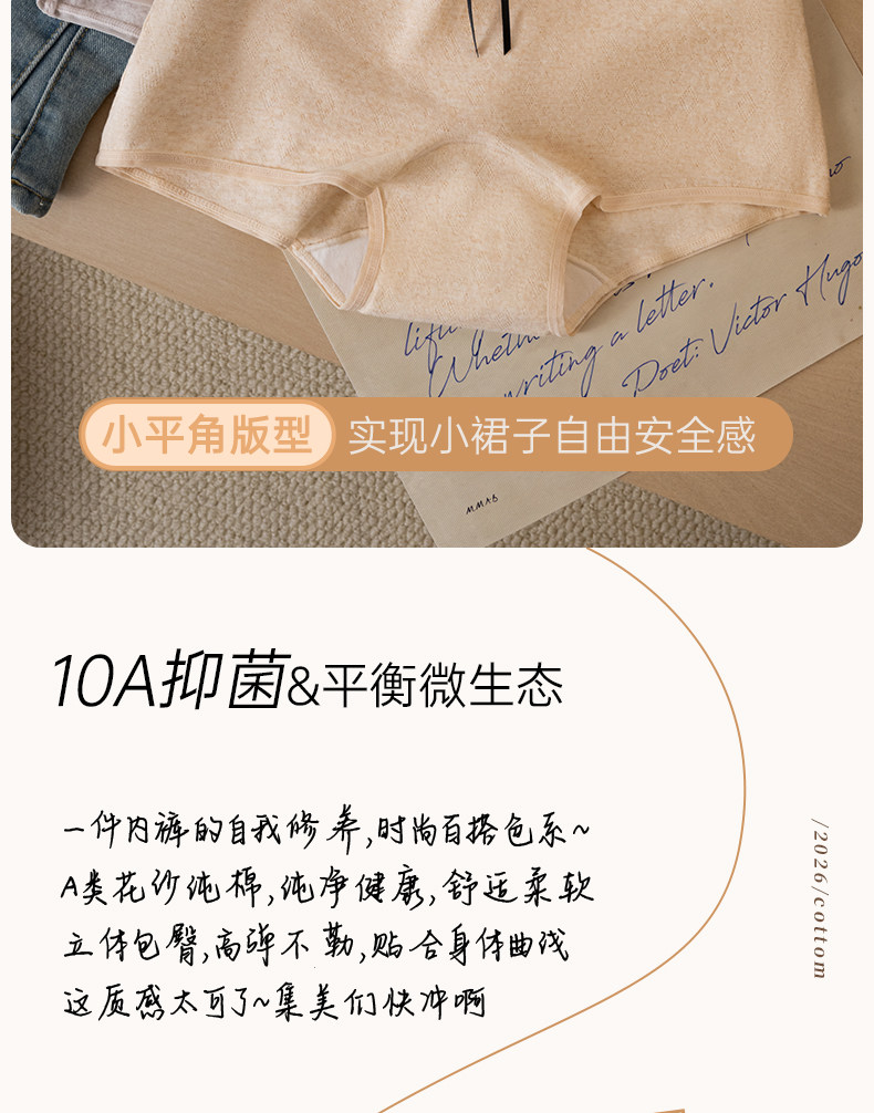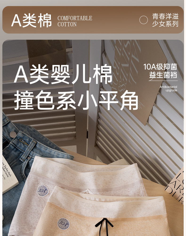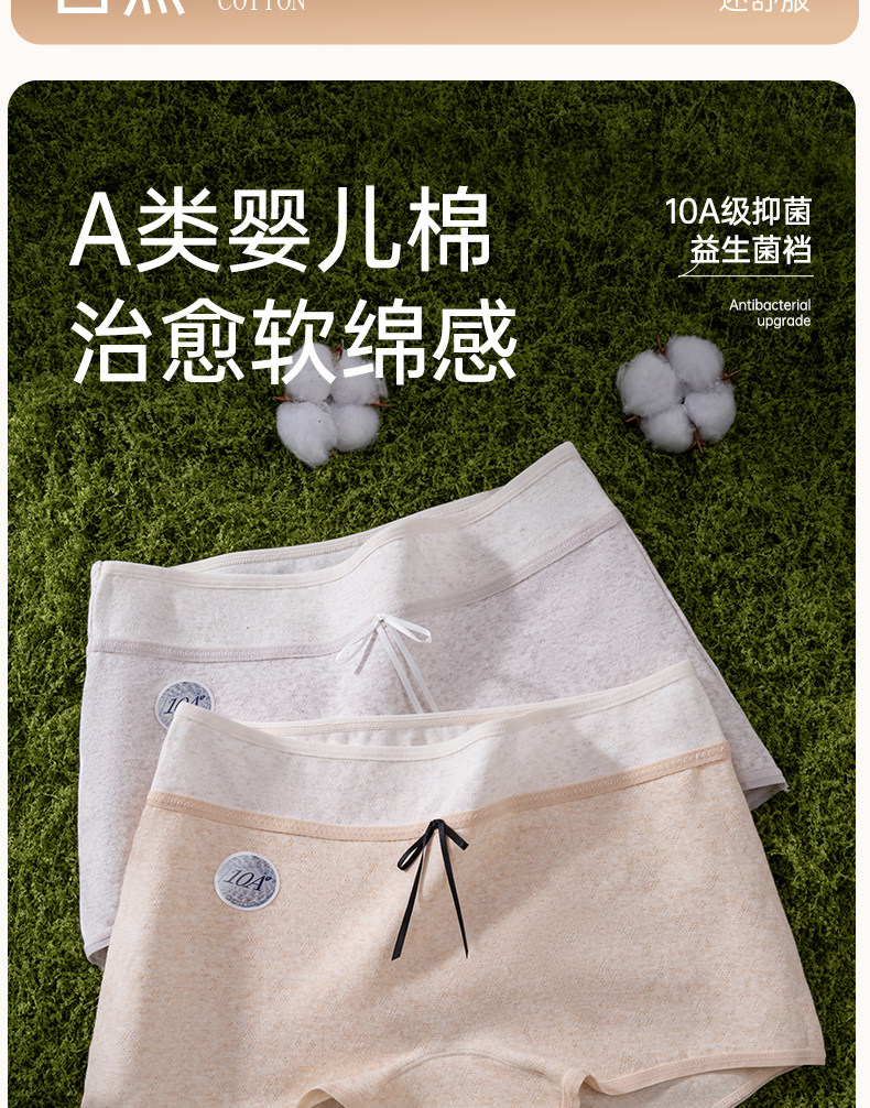 朵彩女彩棉平角褲純棉內褲抑菌全棉加長內襠小高腰無痕A類嬰兒棉