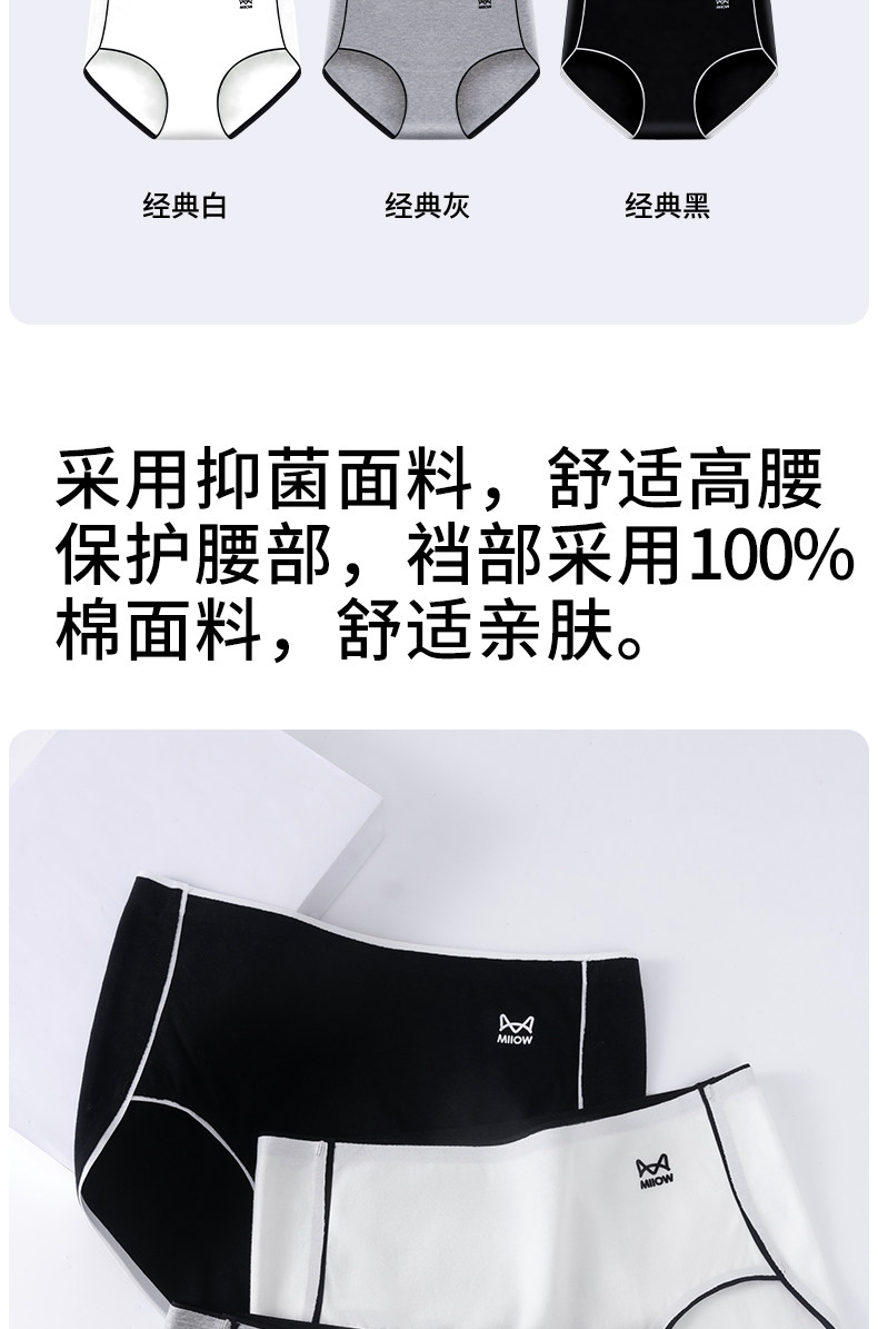 貓人內褲女士純棉抗菌襠高腰無痕2025夏季新款運動風少女生三角褲