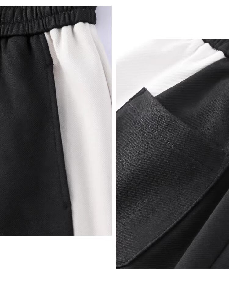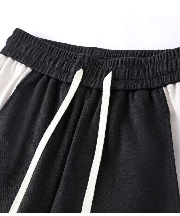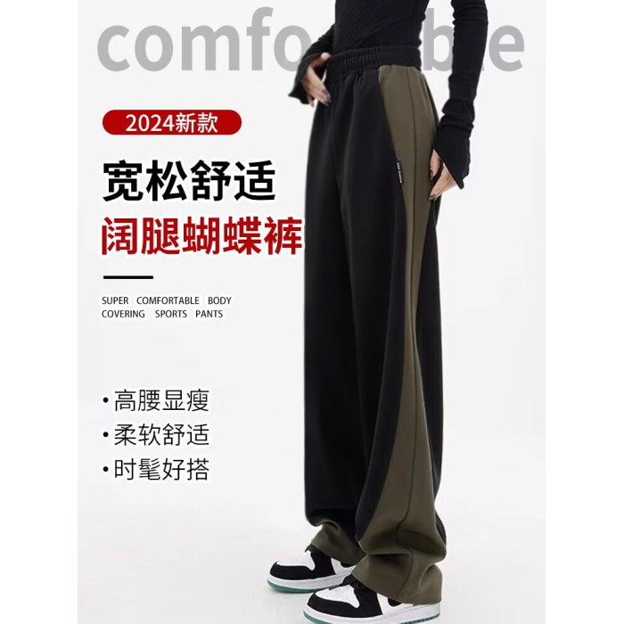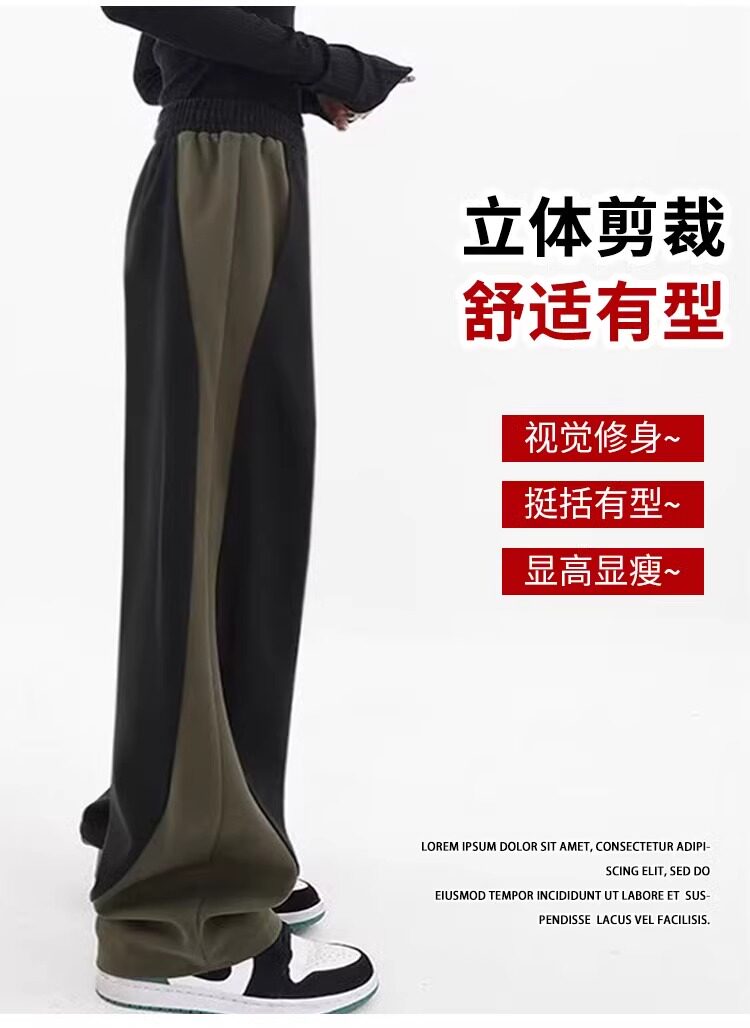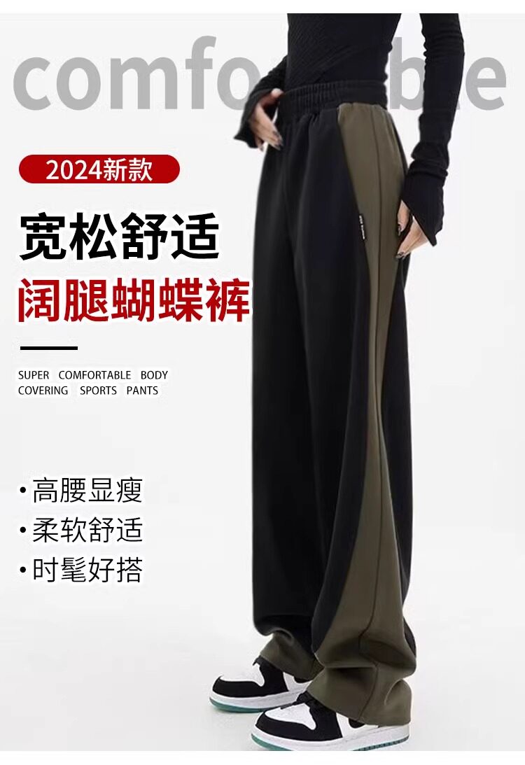 拉夏貝爾撞色香蕉運動褲女春秋2025新款冬季濶腿美式加絨直筒衛褲