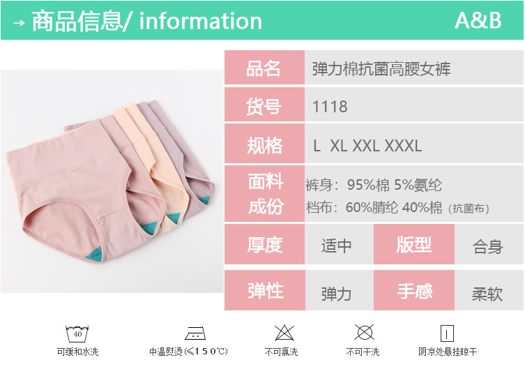 AB內褲女士高腰純棉抗菌短褲彈力棉質貼身素色透氣小平角褲頭1118