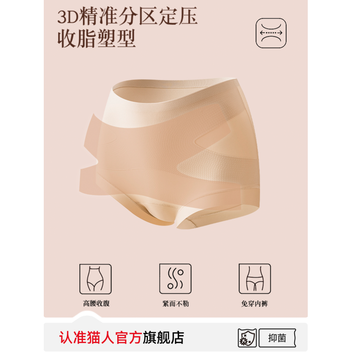 貓人收腹內褲女強力收小肚子醫用級抗菌襠産後塑形高腰提臀三角褲