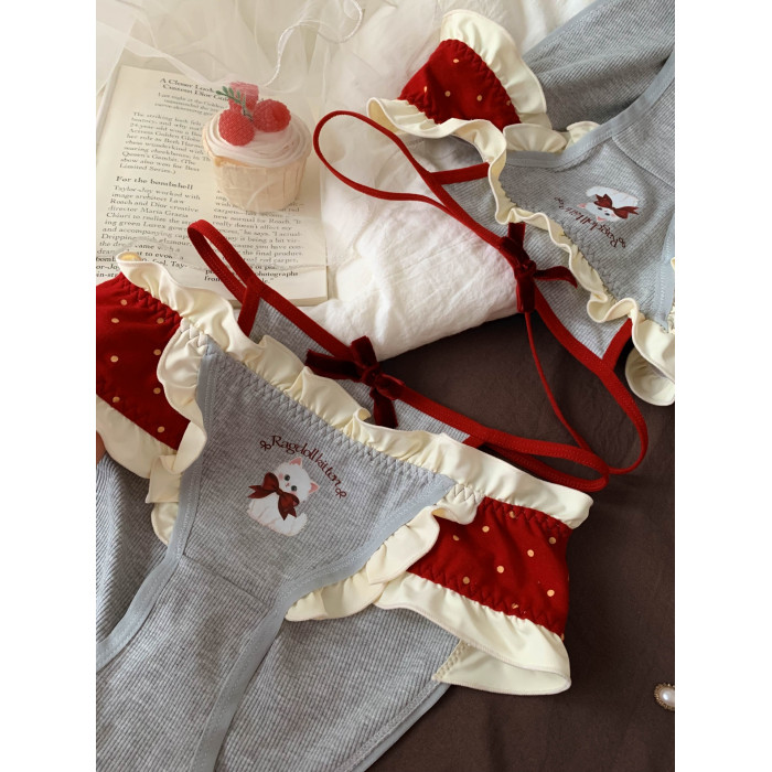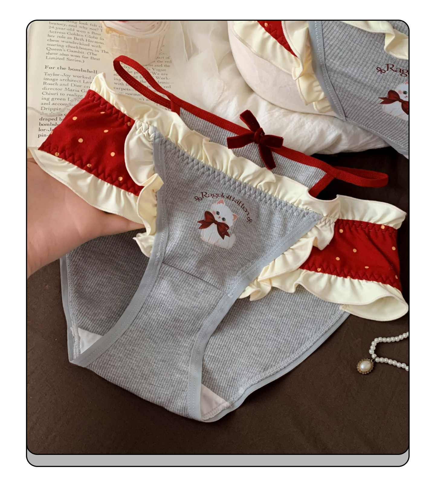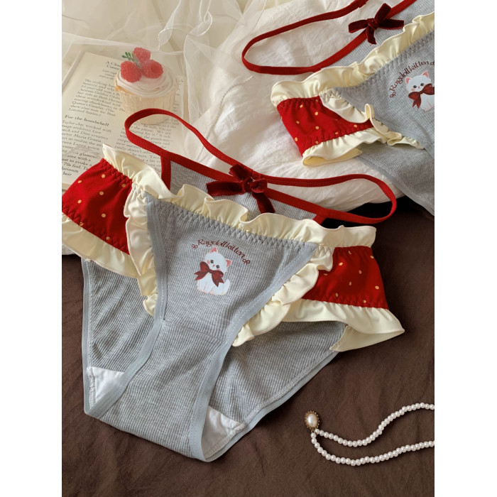 波點甜喵~女生甜美可愛鏤空內褲女2026新款舒適親膚款中腰三角褲