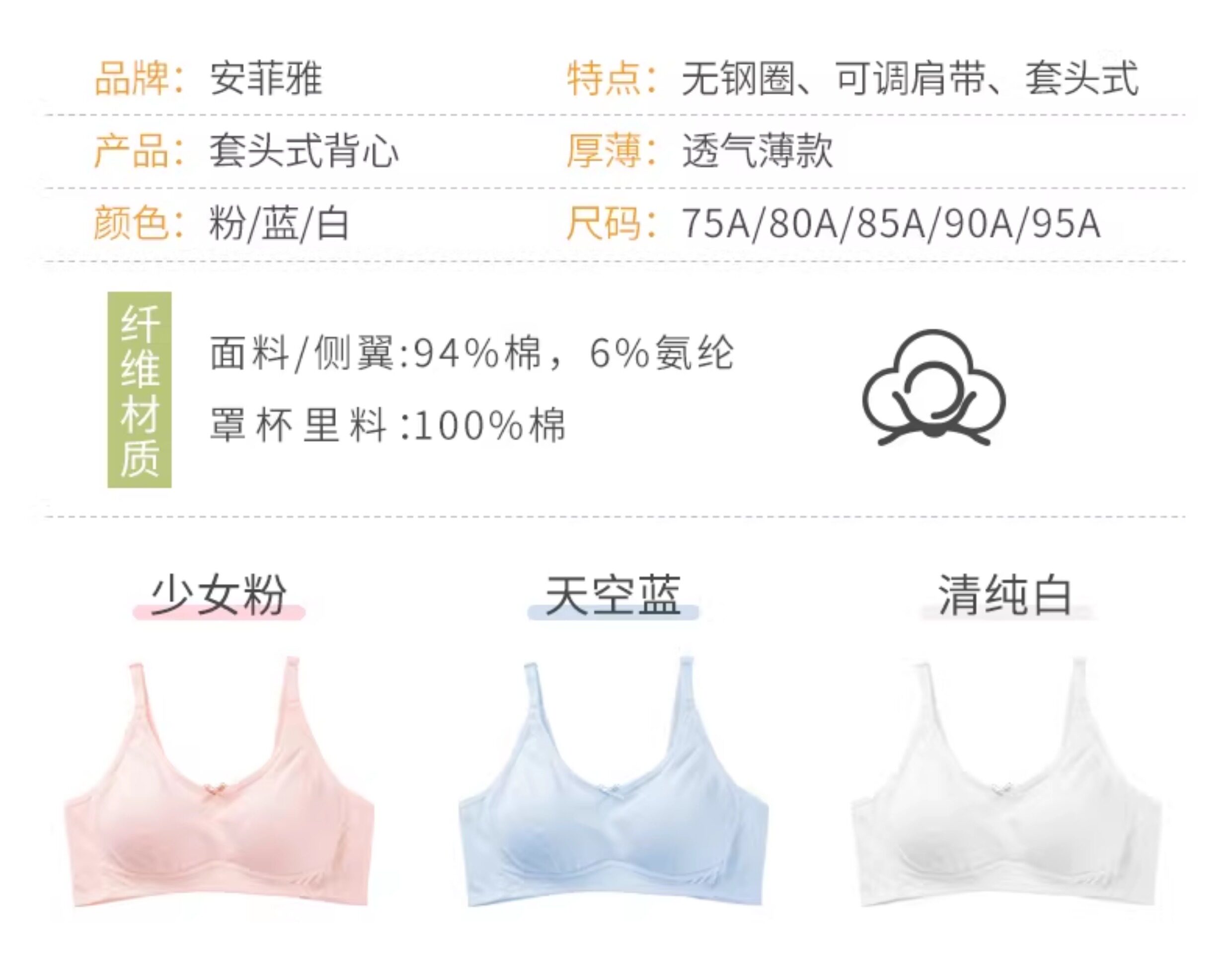 | 罩杯面料 | 棉 |