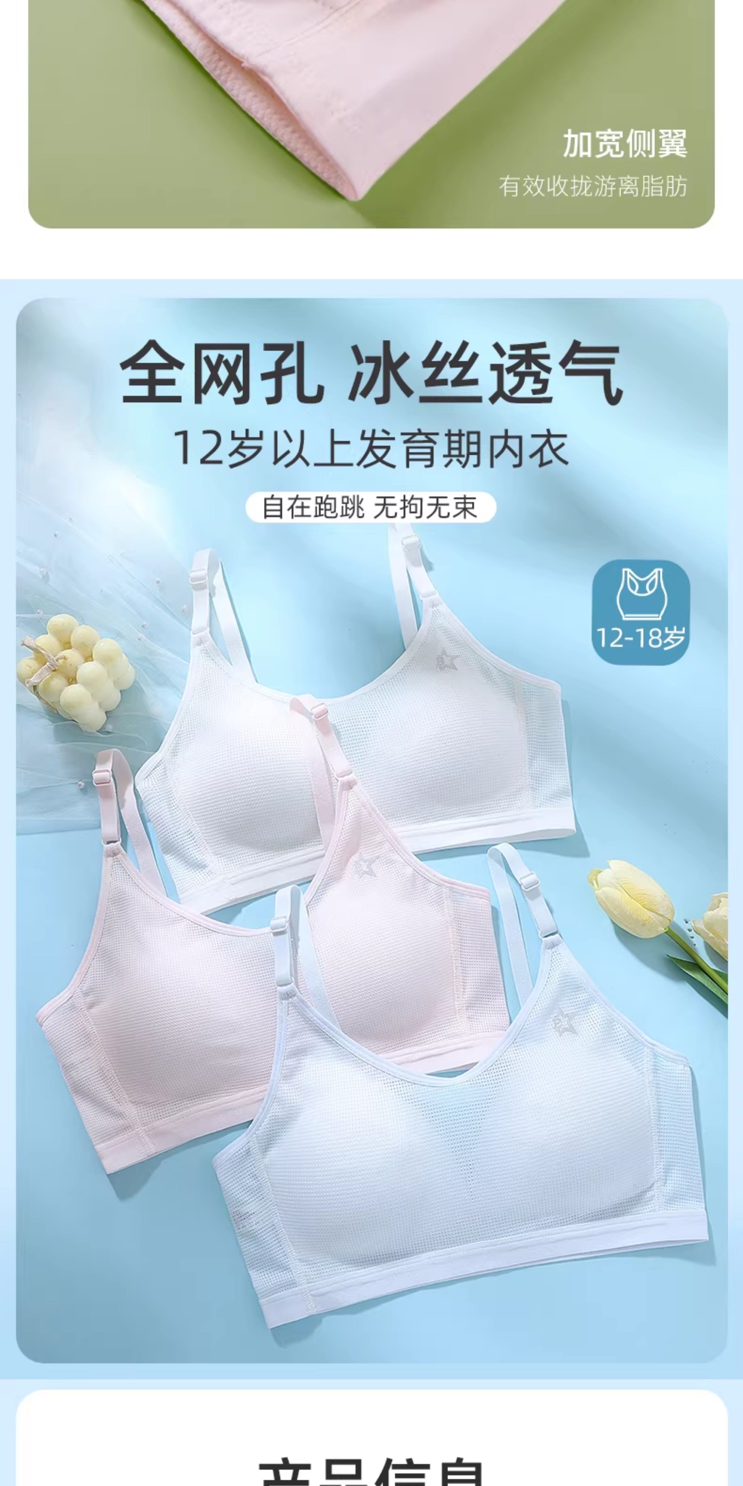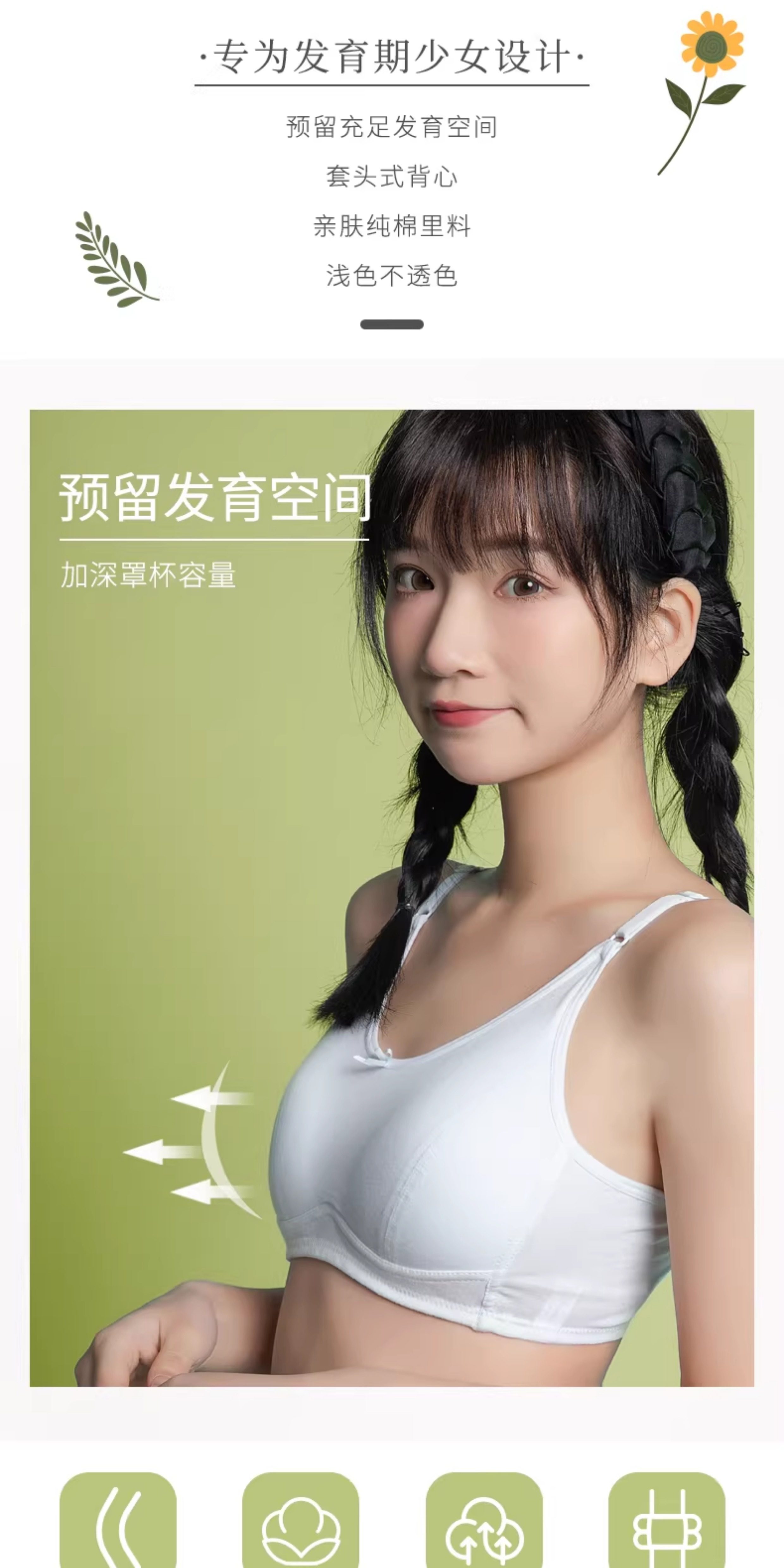 安菲雅高中生內衣女初中學生女大童三階段純棉青春發育期少女文胸