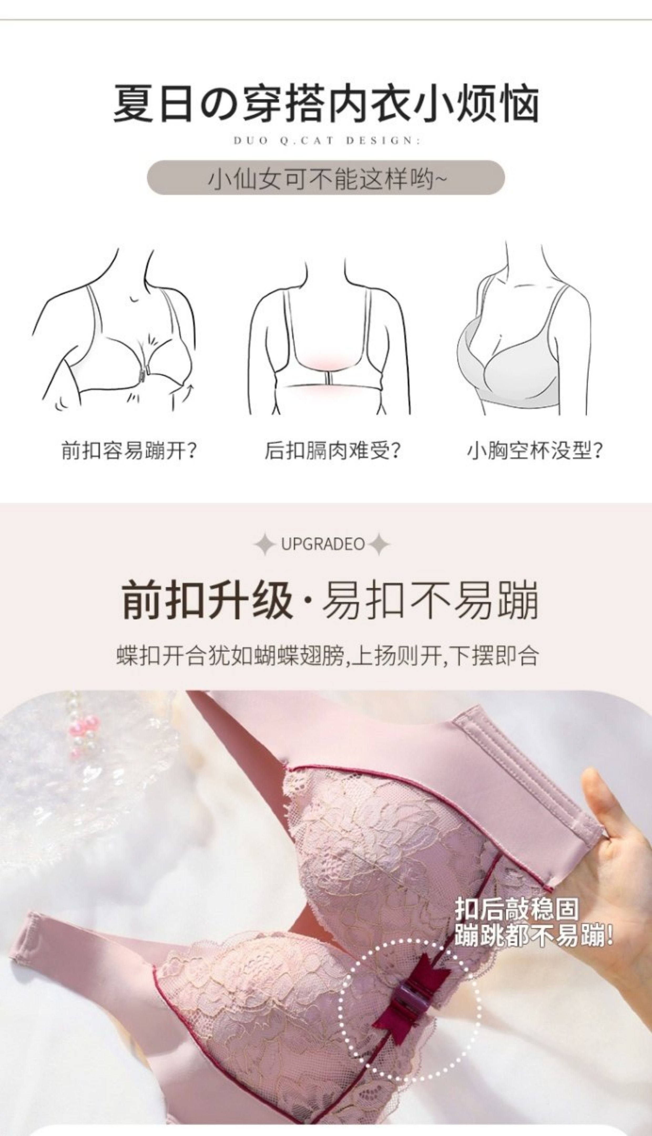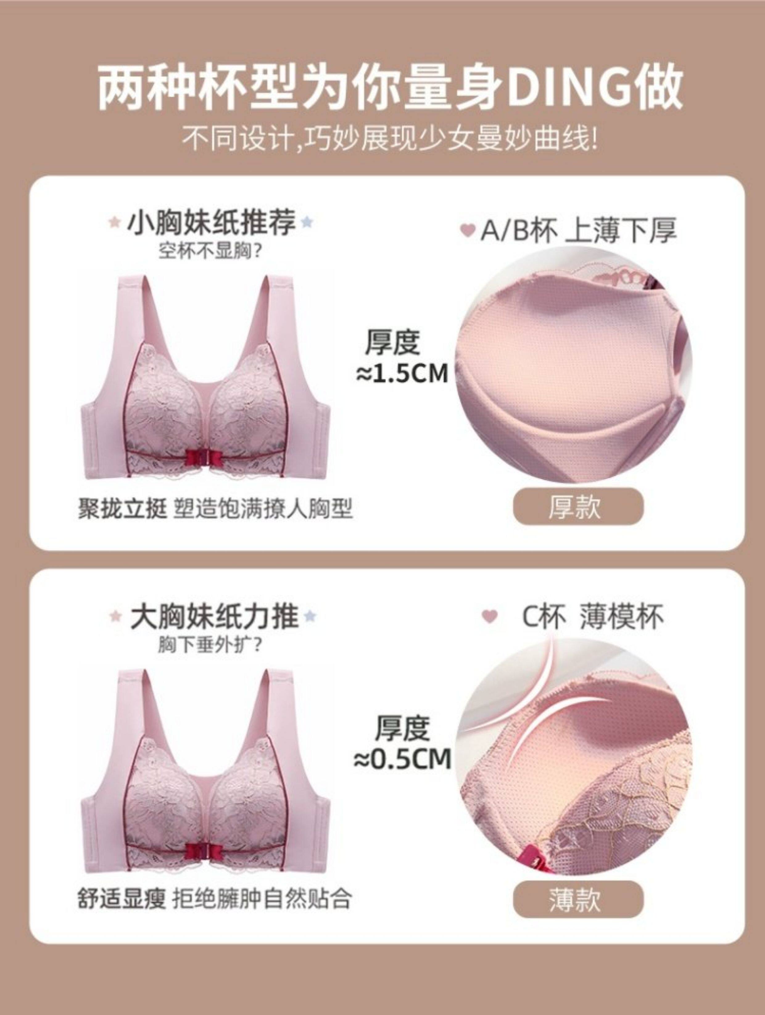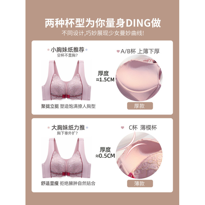 無痕前釦內衣女小胸聚攏無鋼圈大胸顯小收副乳防下垂背心式文胸罩