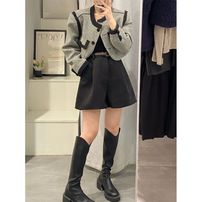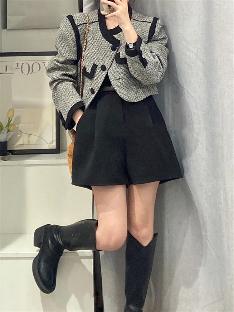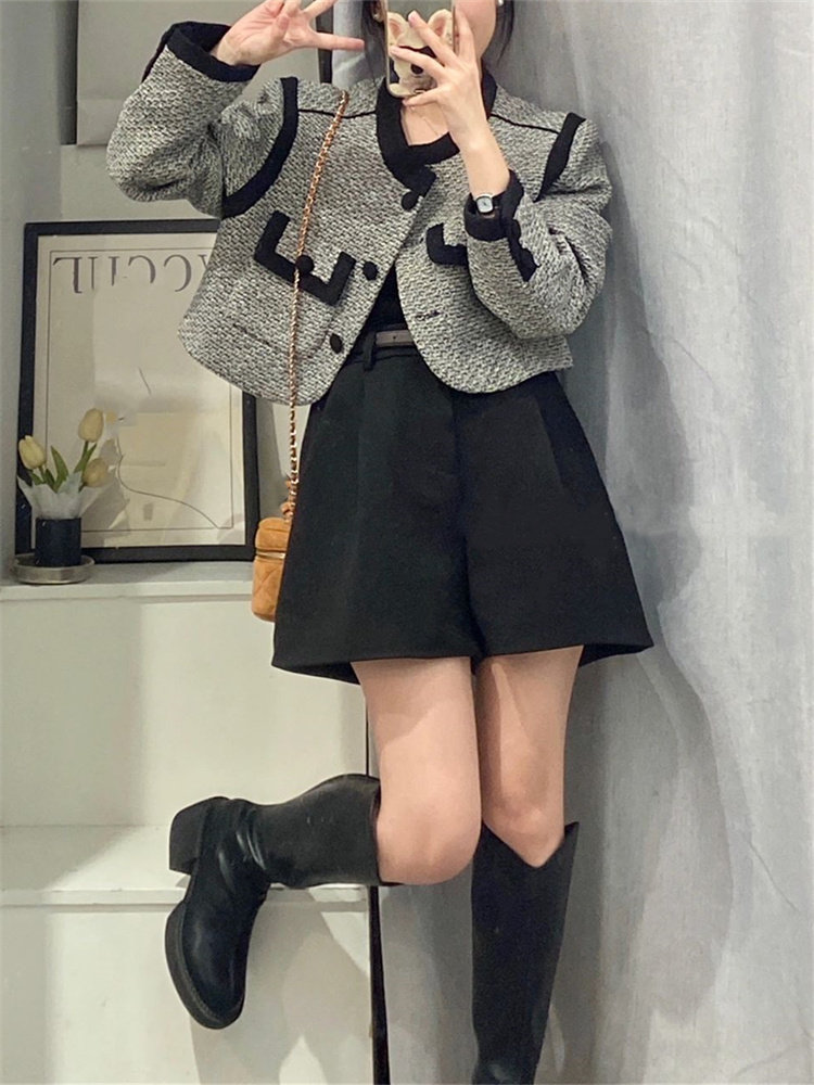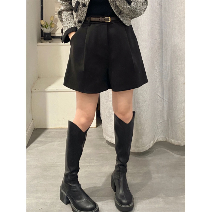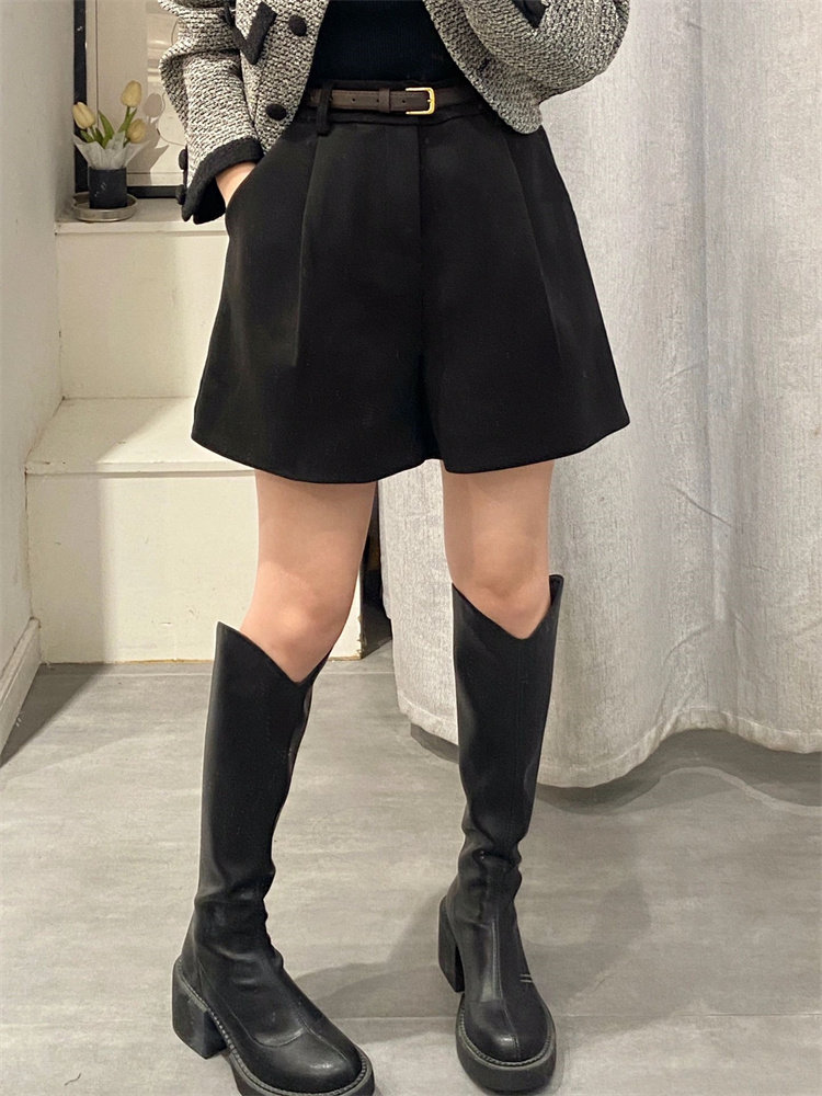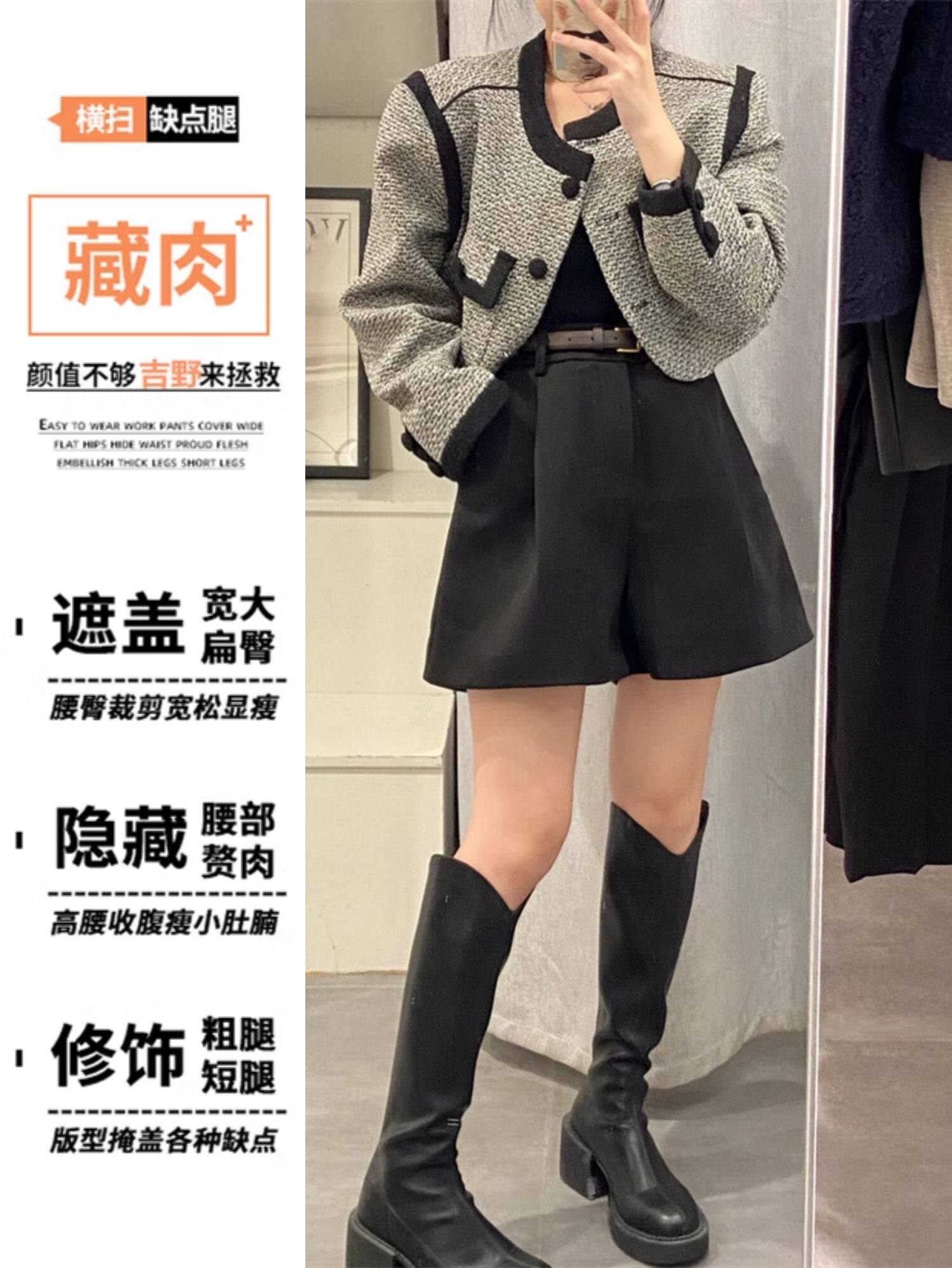大碼胖mm濶腿短褲女春秋配毛衣毛呢褲子直筒打底褲遮胯顯瘦靴褲潮