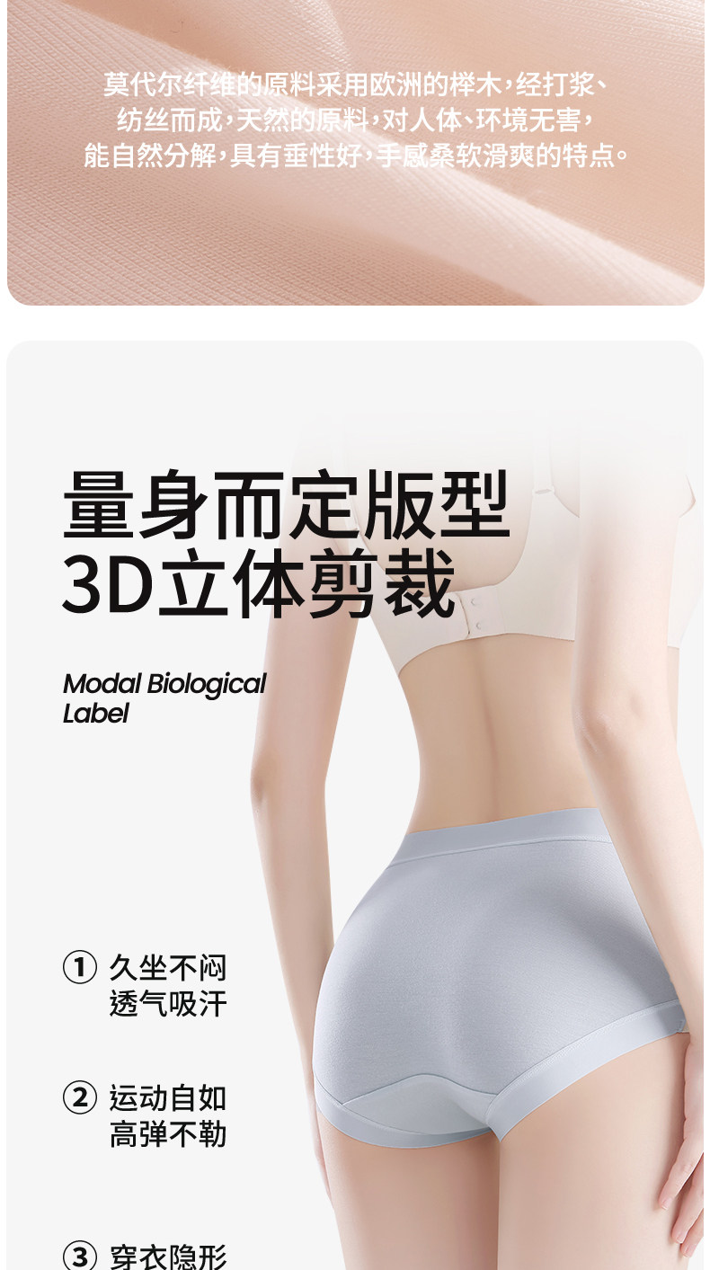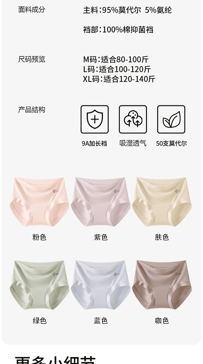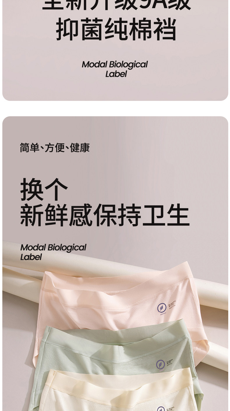 南極人莫代爾女士內褲中腰無痕抑菌純棉襠2025新款少女生三角短褲