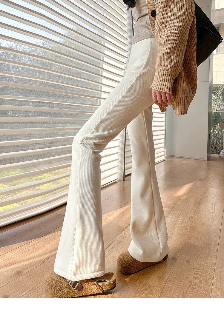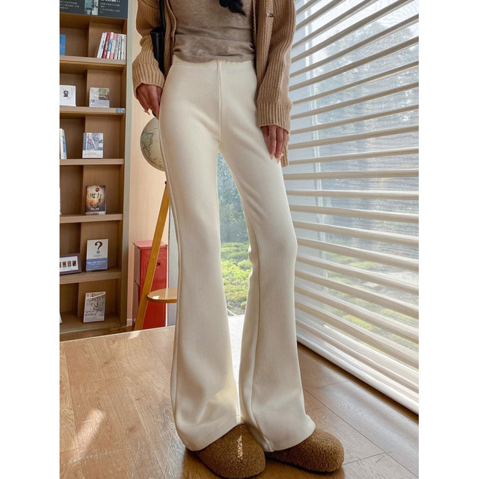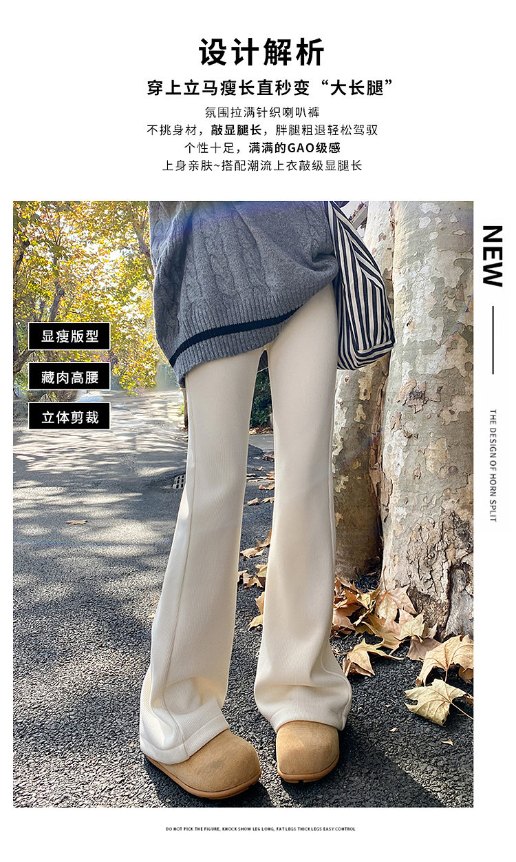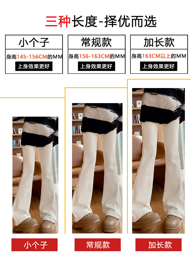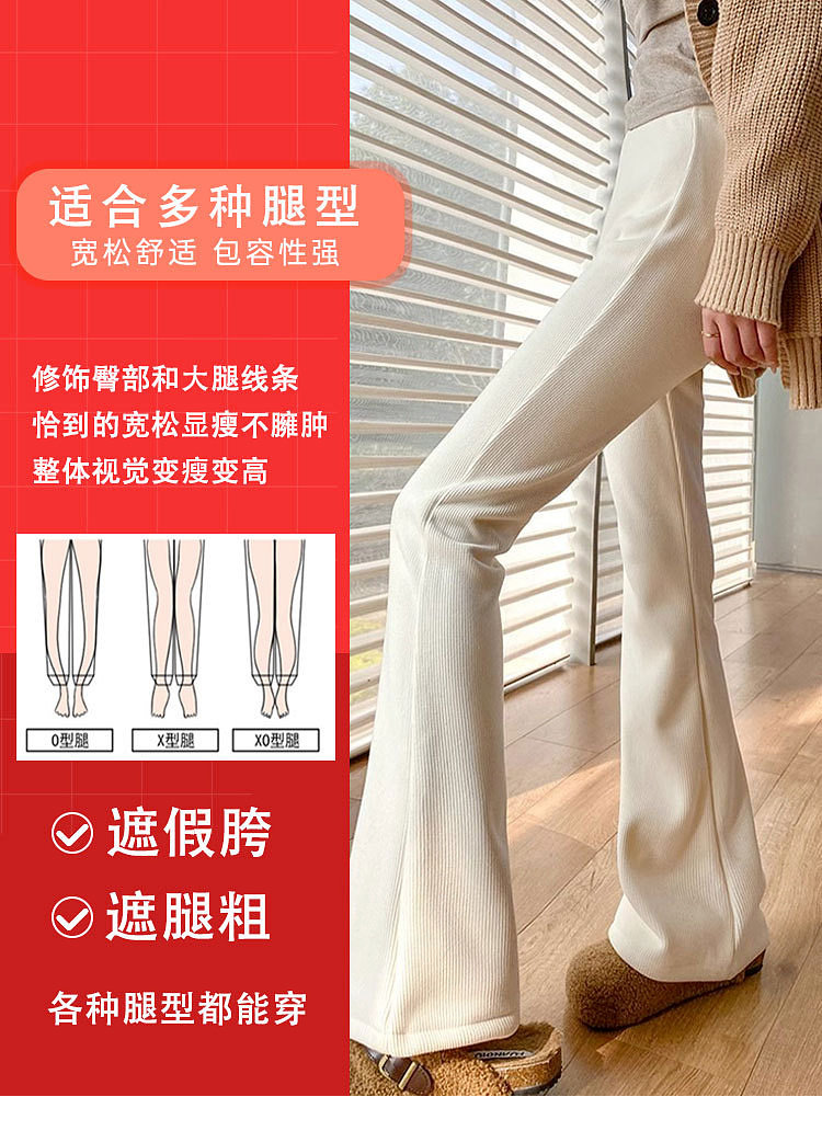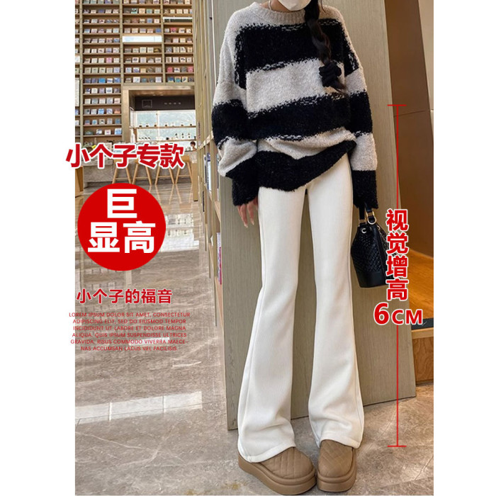 小個子米白色微喇褲女秋冬季高腰加絨休閒褲150cm顯高喇叭褲子xs