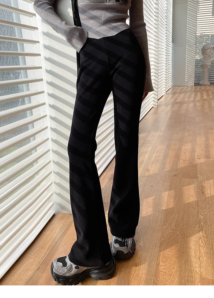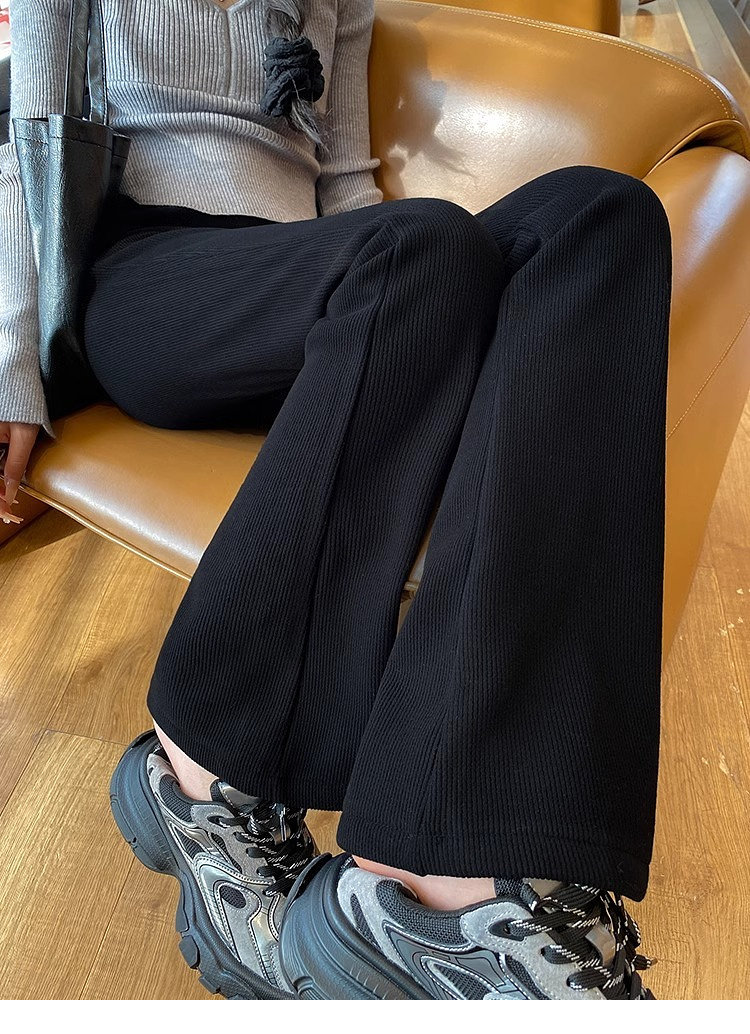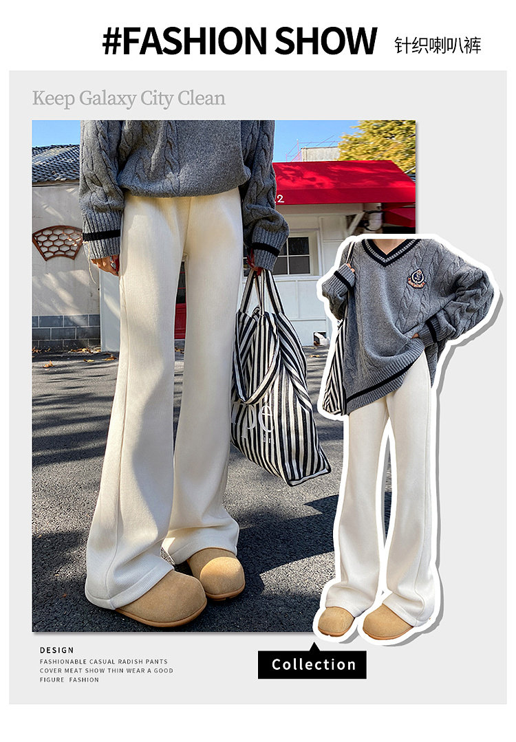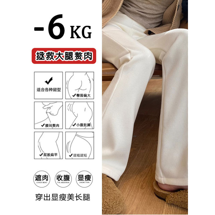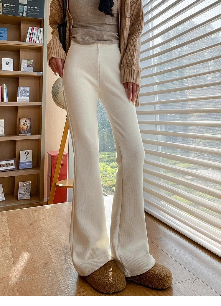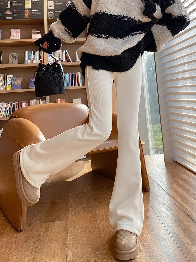 小個子米白色微喇褲女秋冬季高腰加絨休閒褲150cm顯高喇叭褲子xs