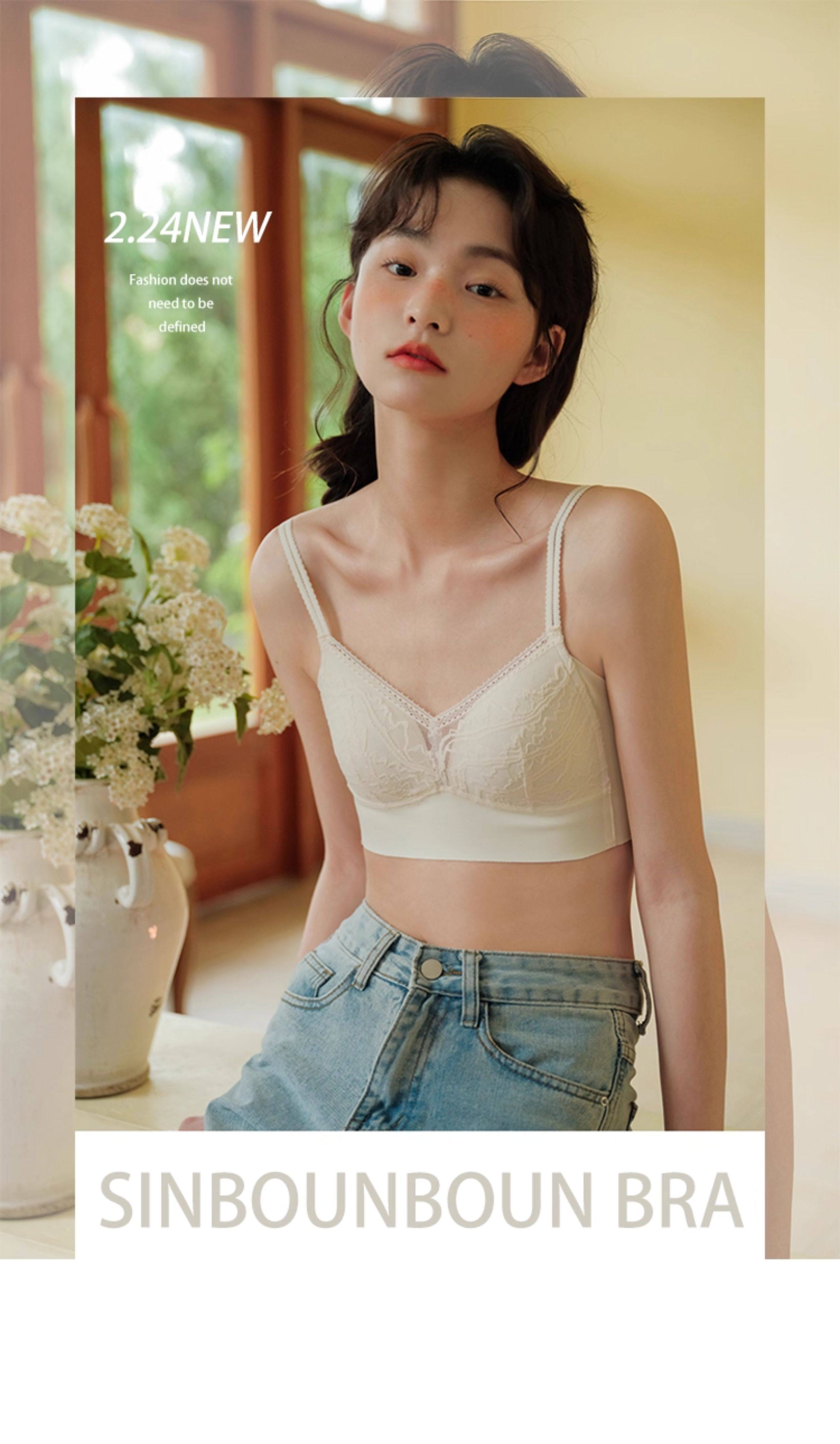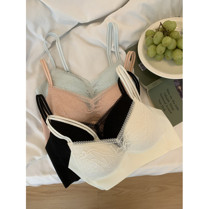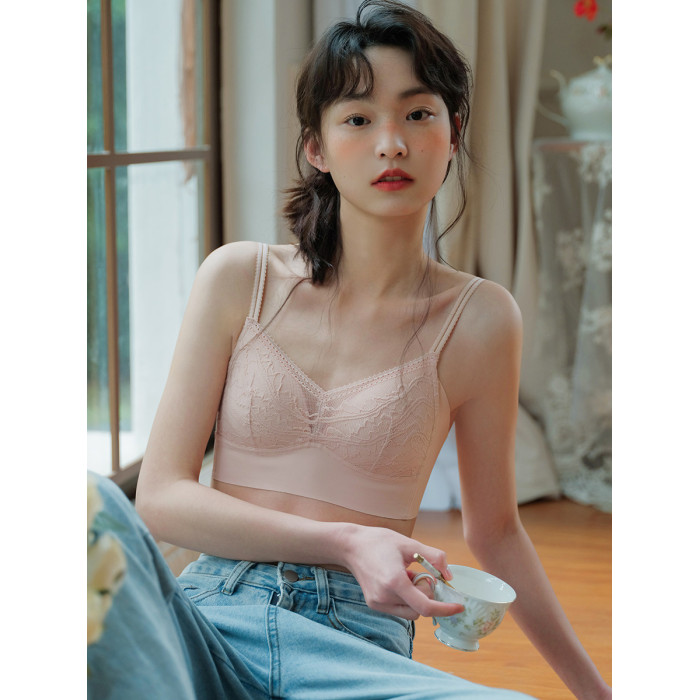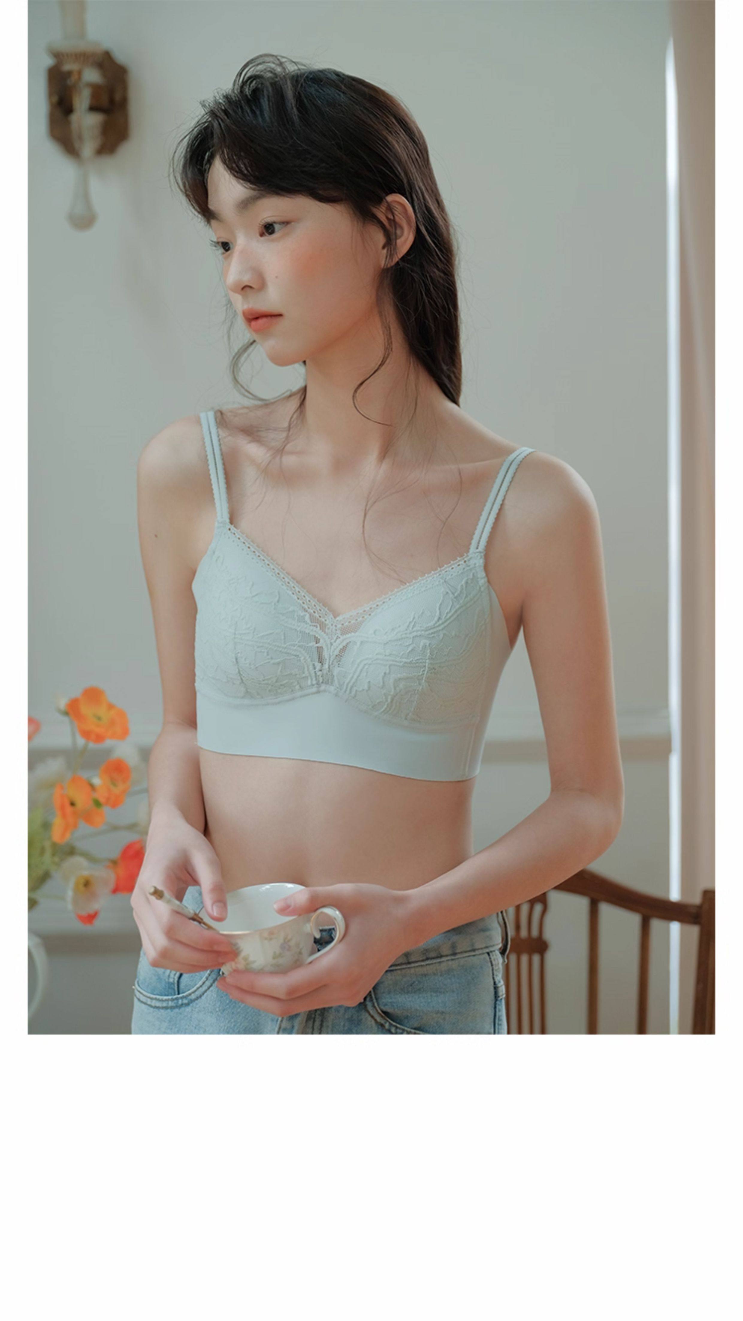 馨幫幫Bra 小清新蕾絲面小胸胸罩無鋼圈調整型文胸聚攏上托內衣女