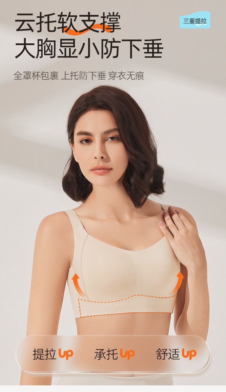無痕粉底液內衣女大胸顯小薄款收副乳防下垂全罩杯調整型大碼文胸